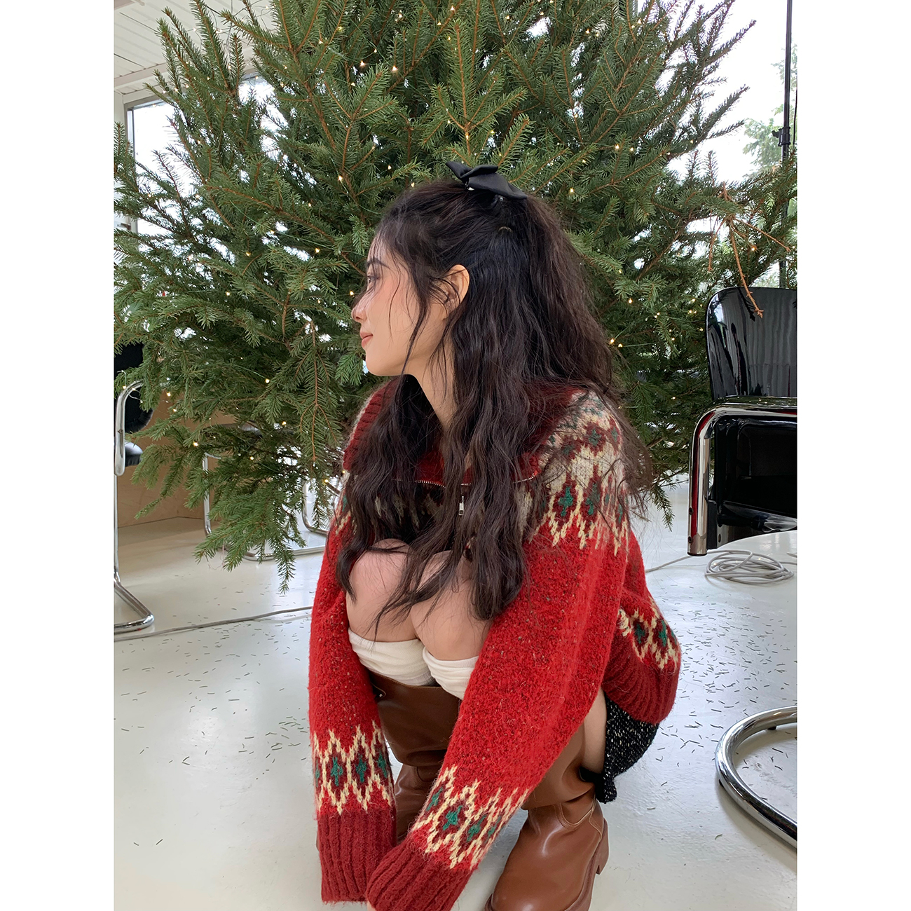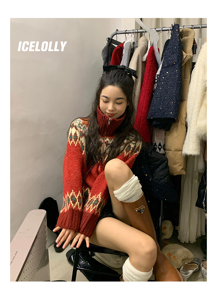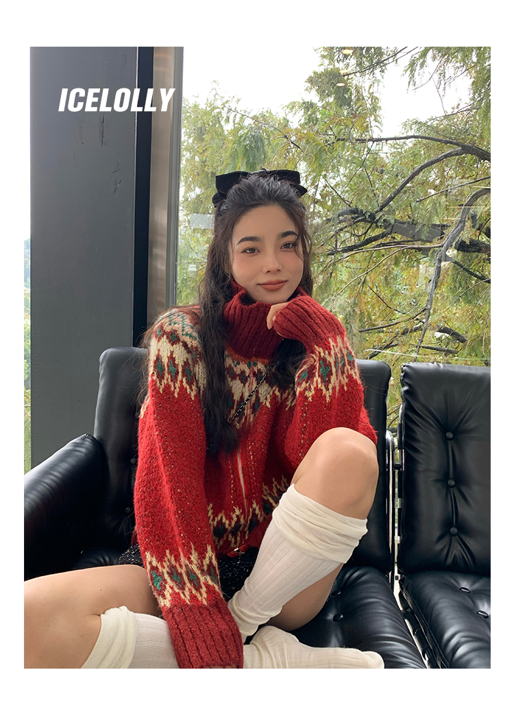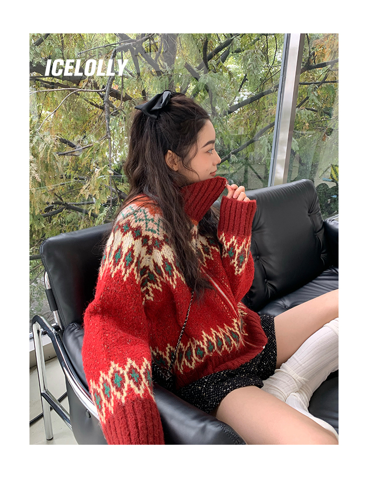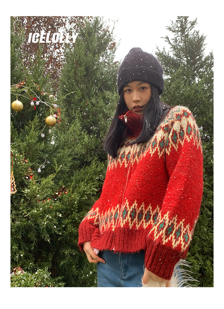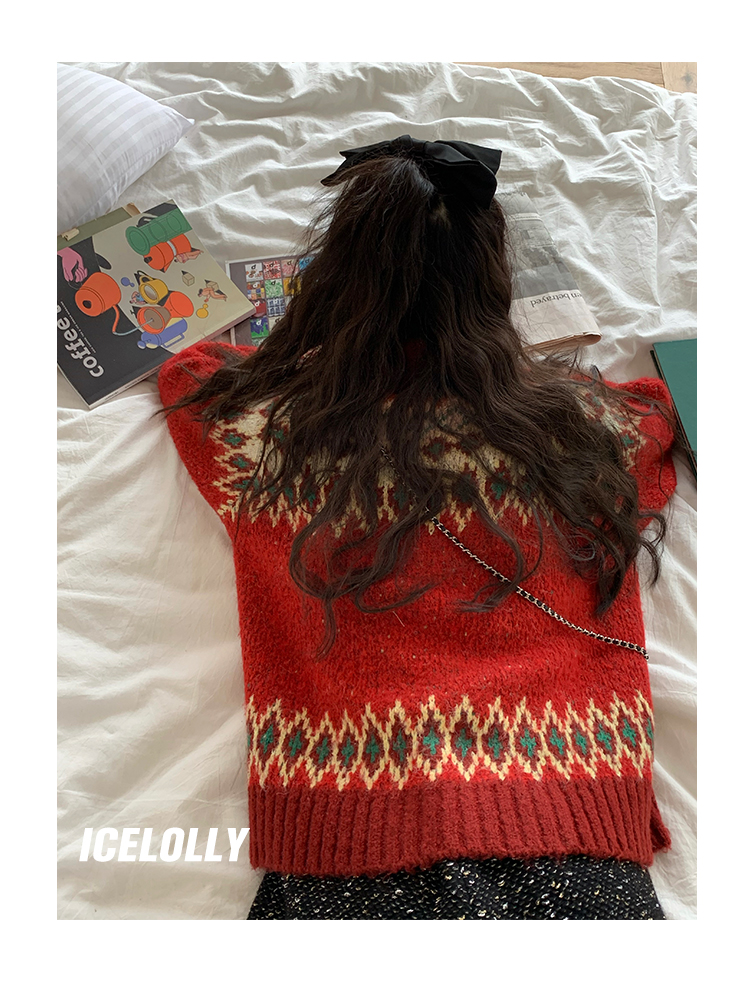 【139元福利款】ICELOLLY紅色本命年針織毛衣女秋冬法式針織外套