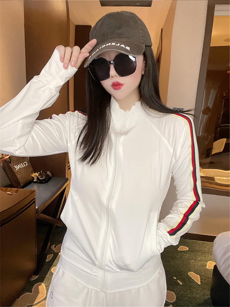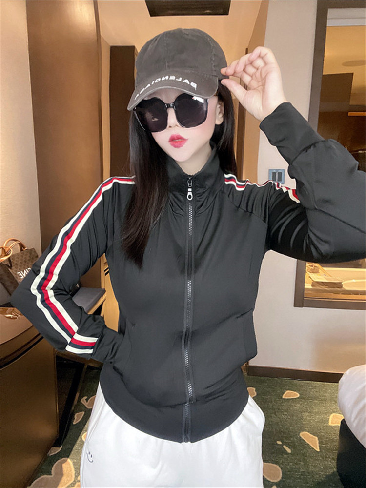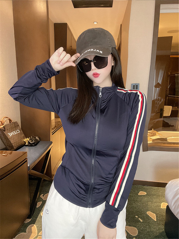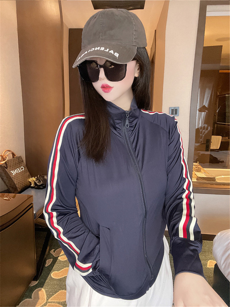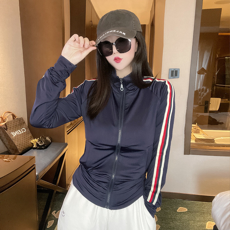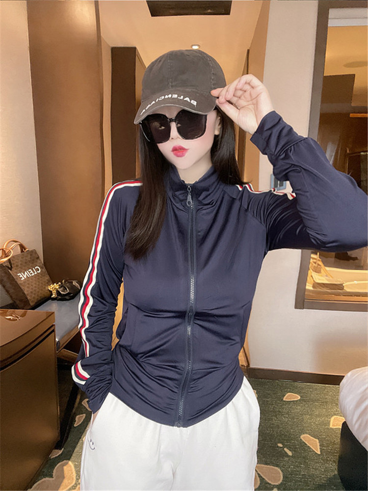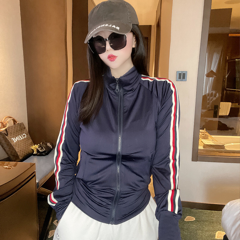 歐貨2023夏新款純色立領拉鍊長袖短款運動防曬衣牛奶絲面膜外套女