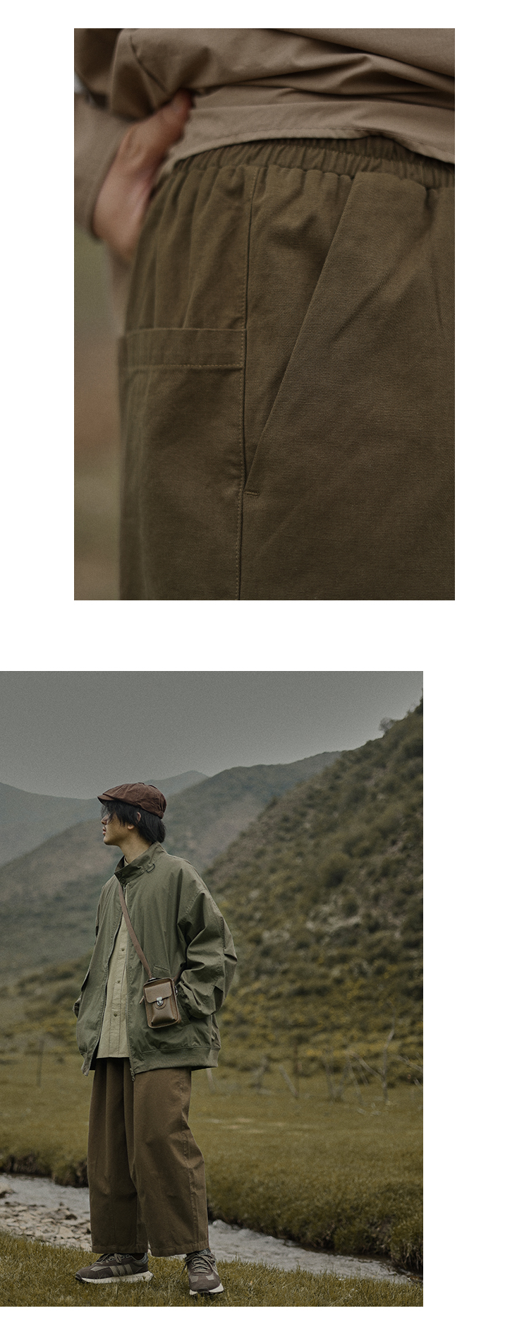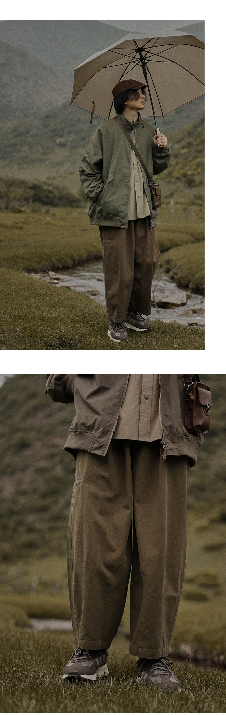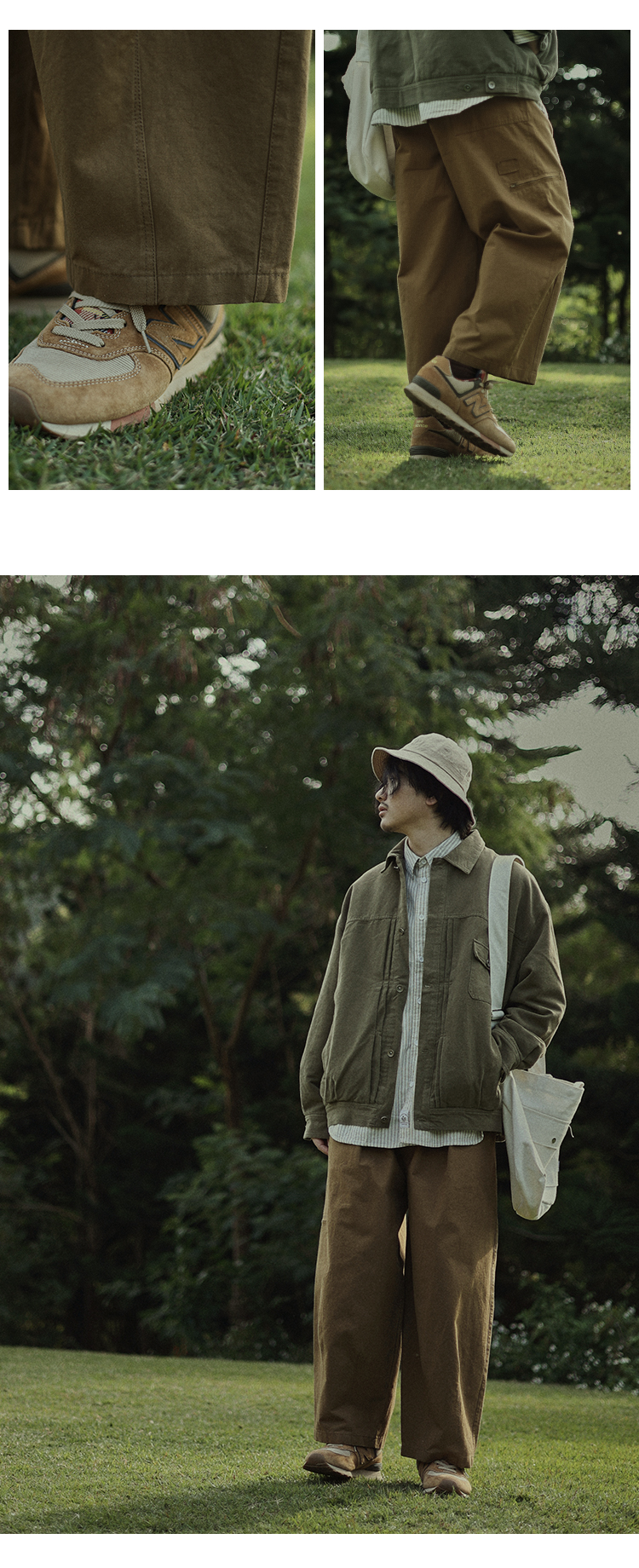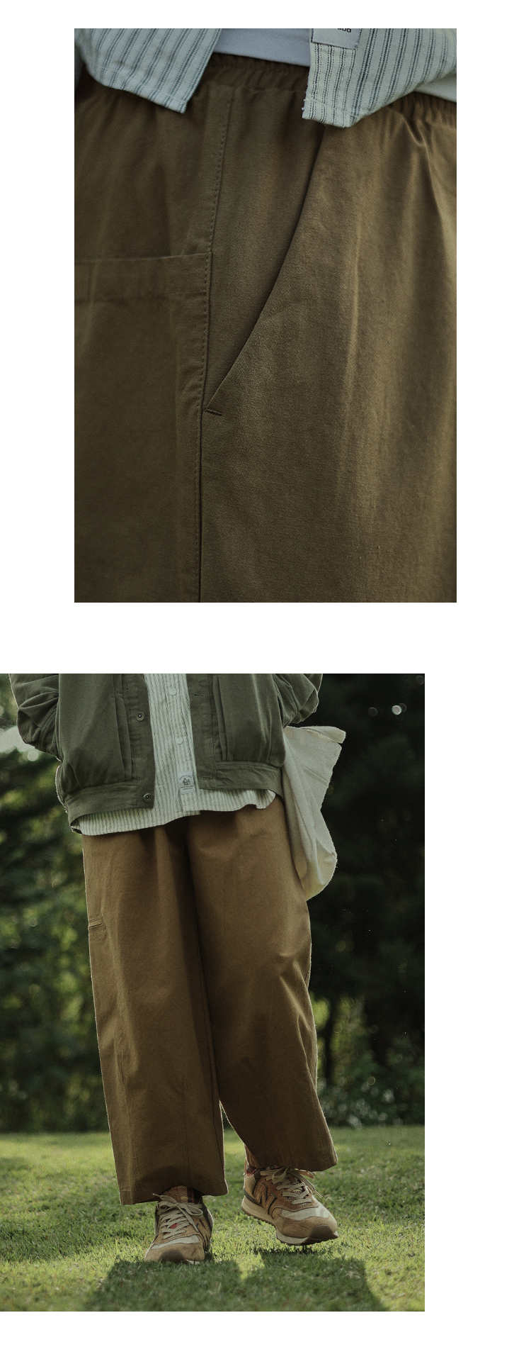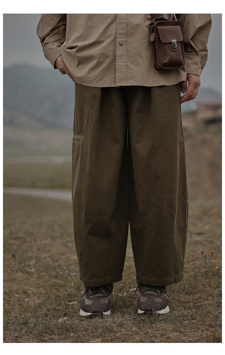 危機青年復古闊腿工裝褲男水洗橄欖色春秋日系寬鬆直筒休閒長褲子