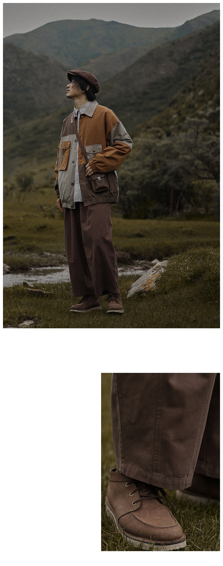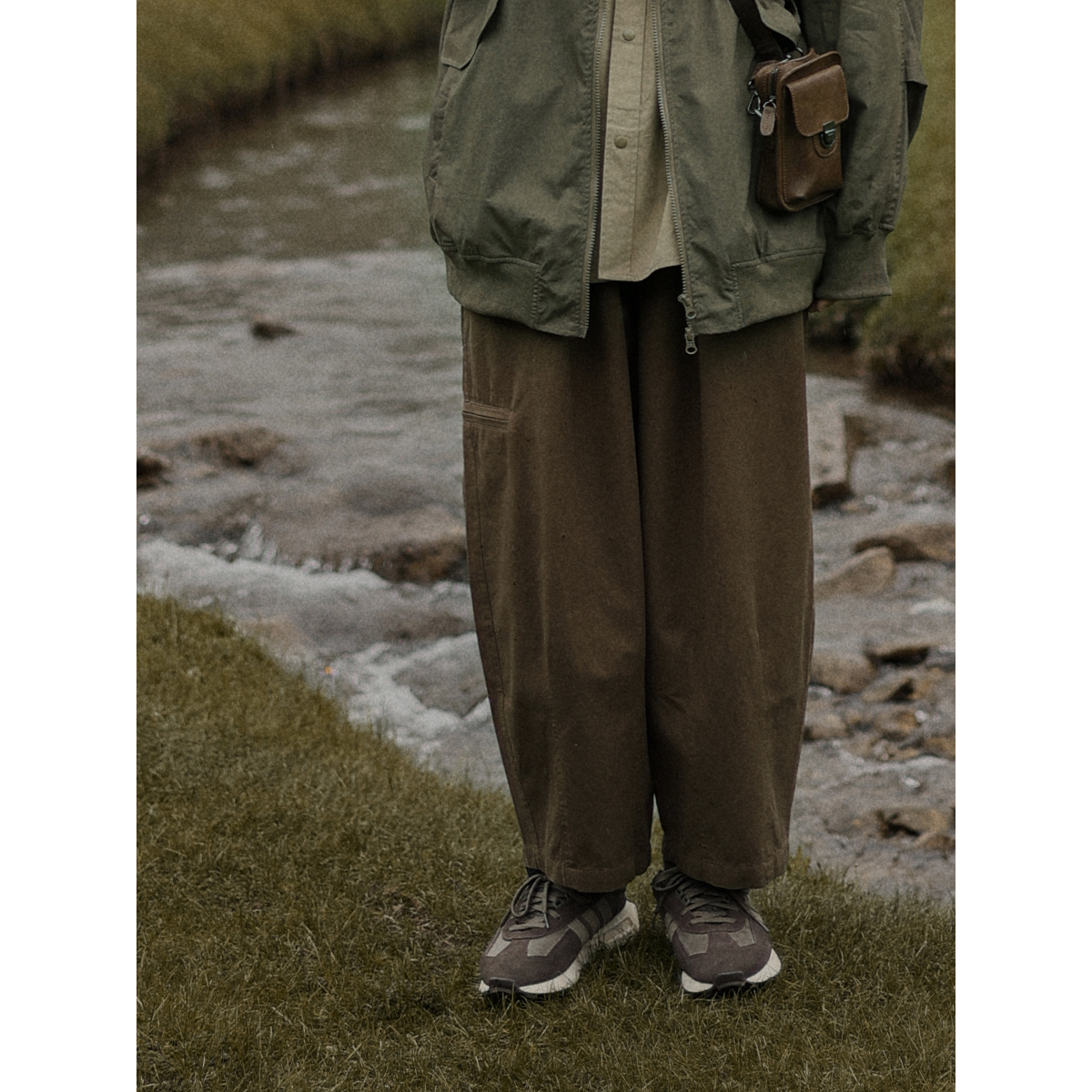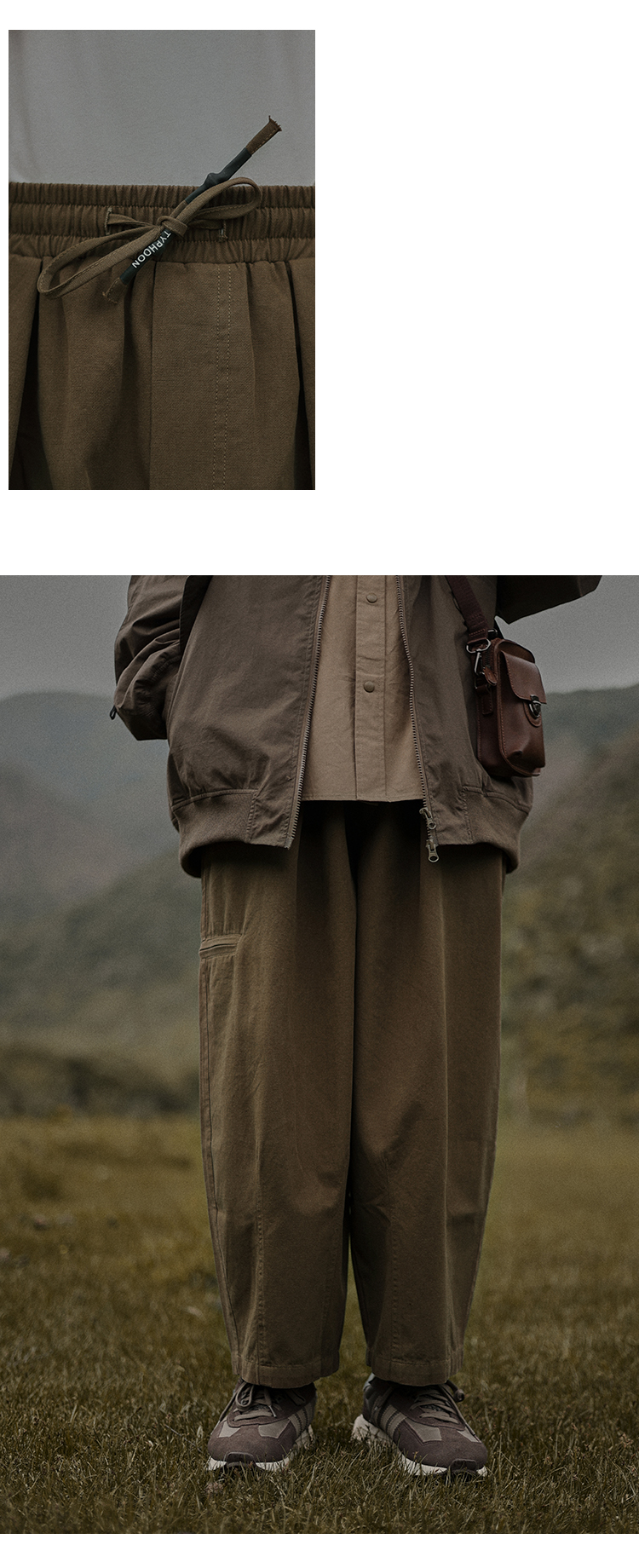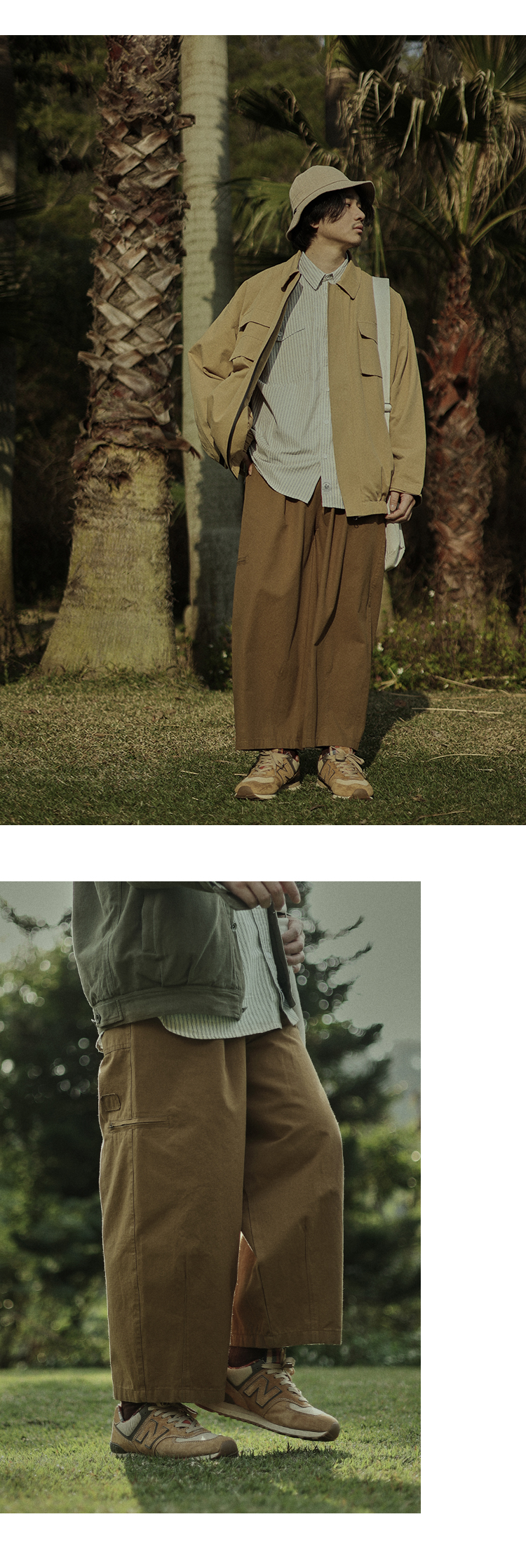 危機青年復古闊腿工裝褲男水洗橄欖色春秋日系寬鬆直筒休閒長褲子