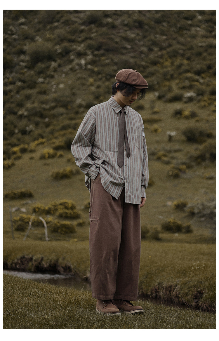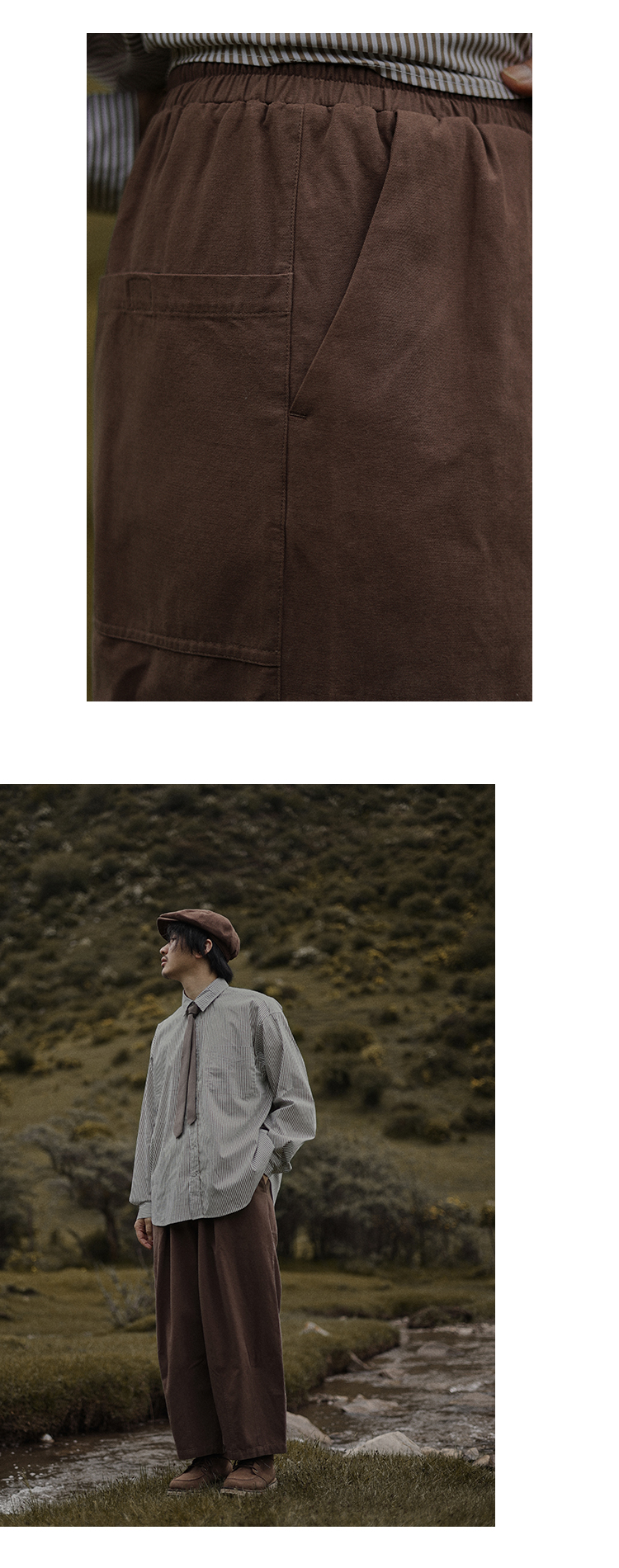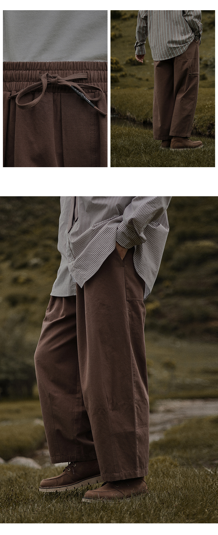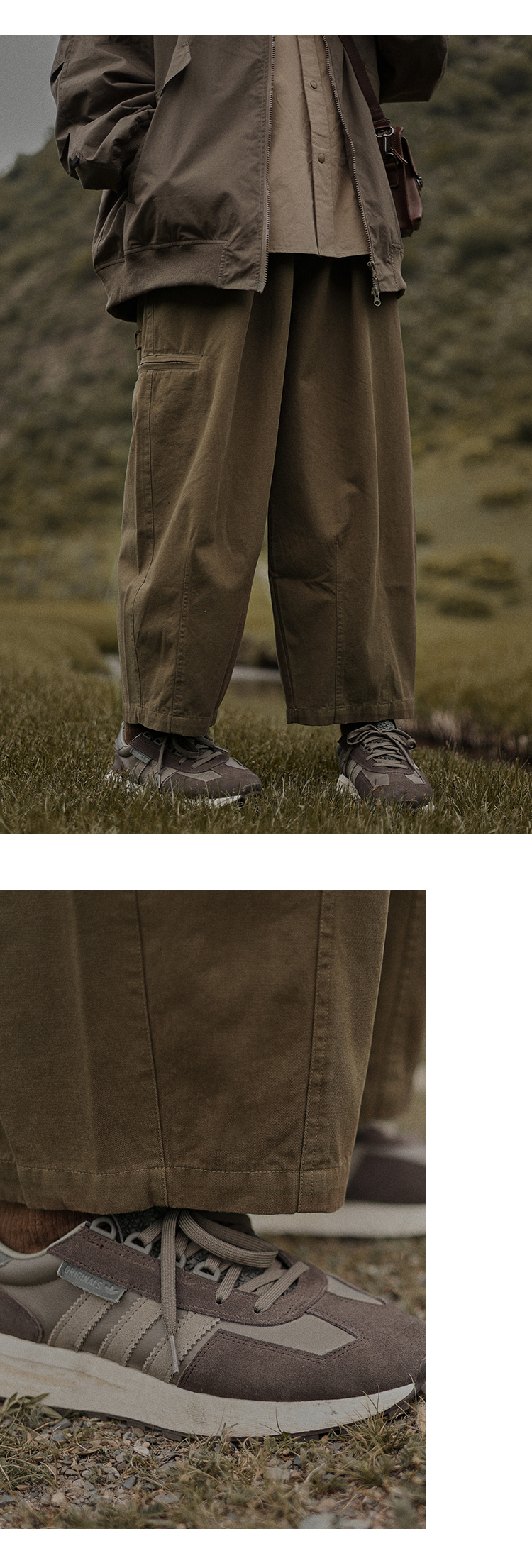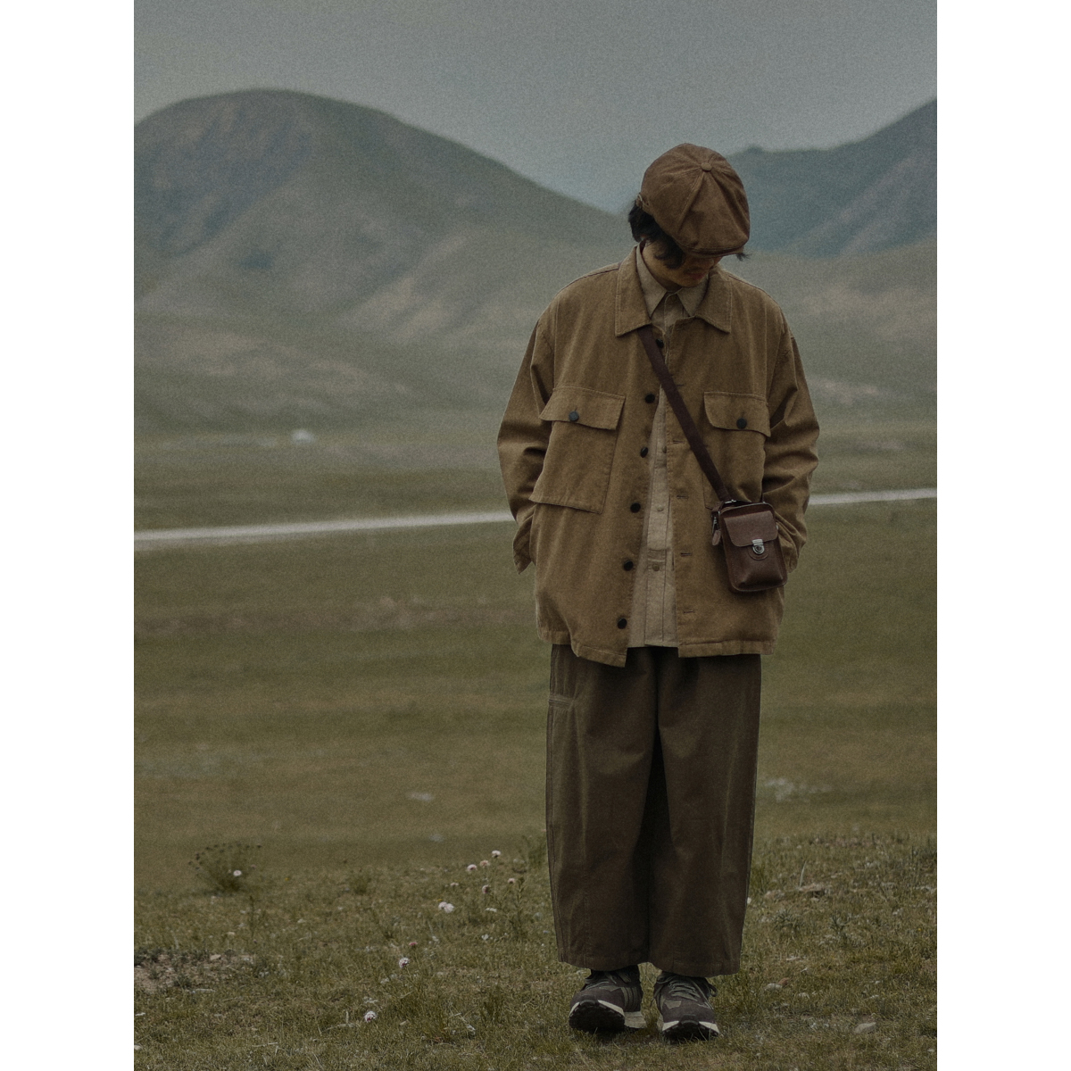 危機青年復古闊腿工裝褲男水洗橄欖色春秋日系寬鬆直筒休閒長褲子
