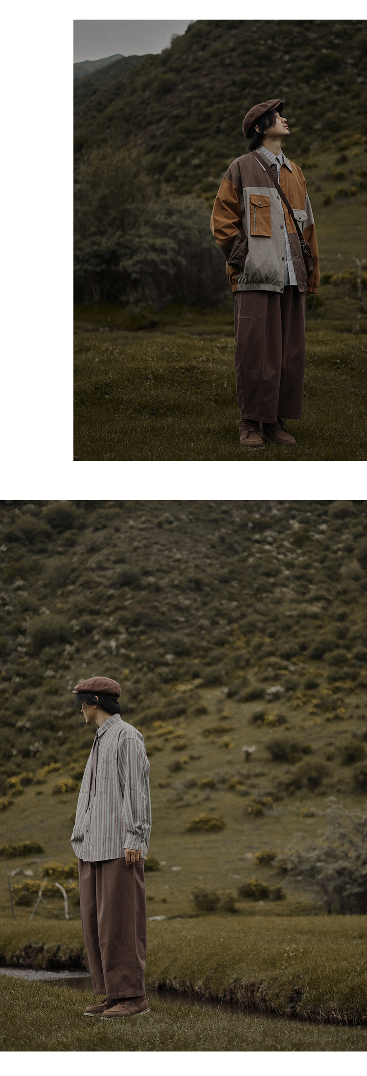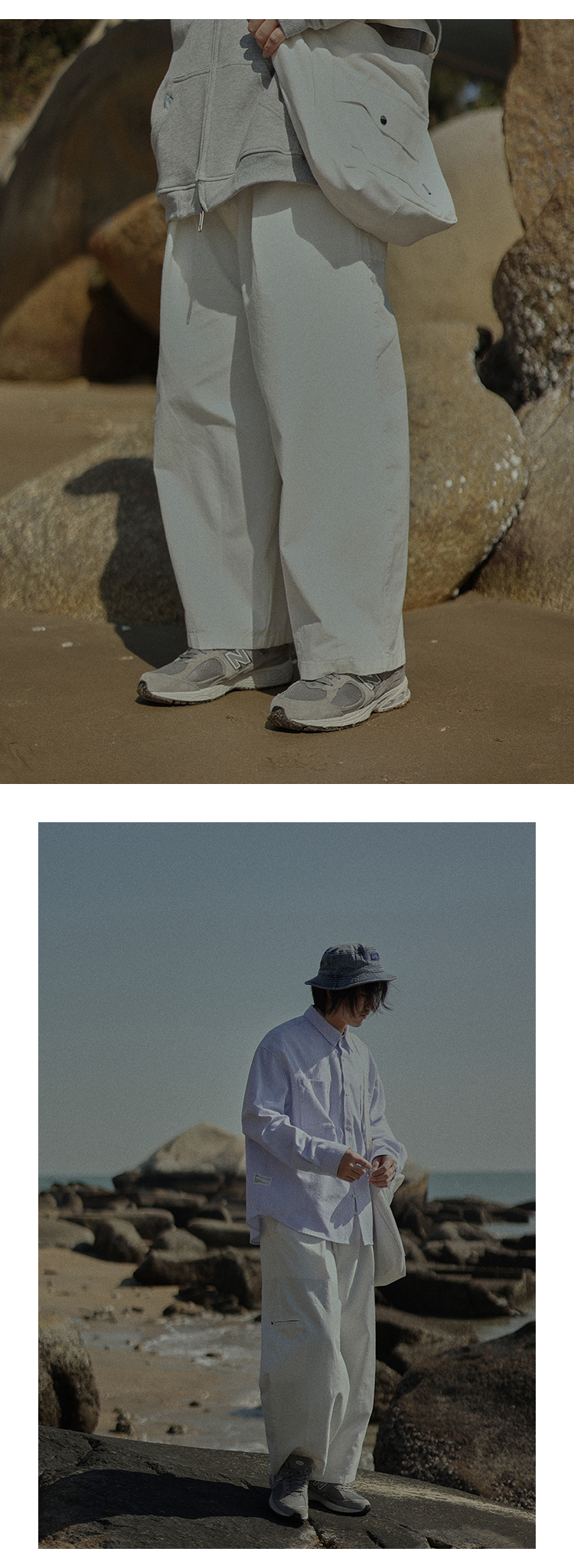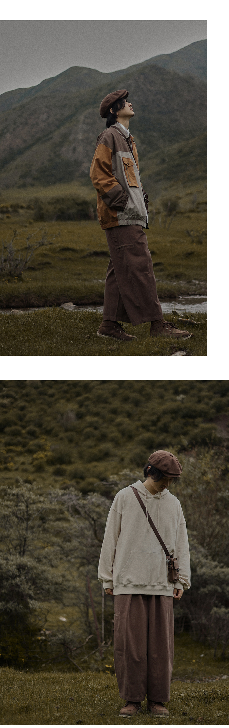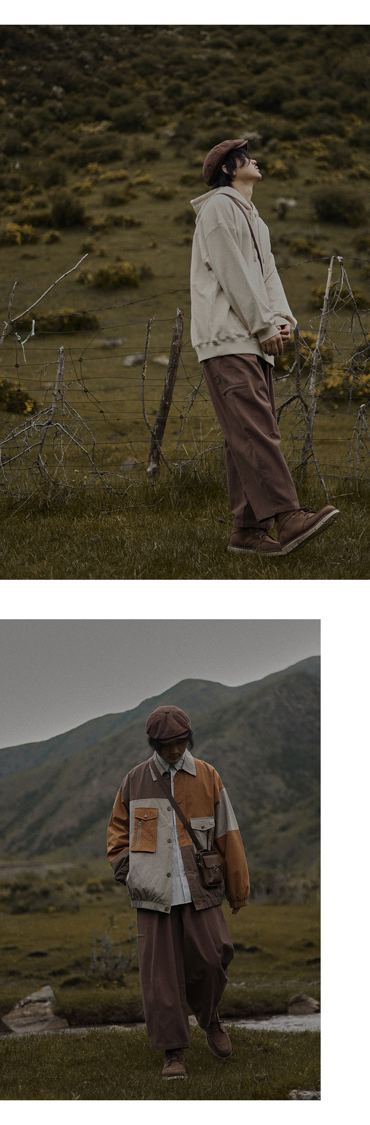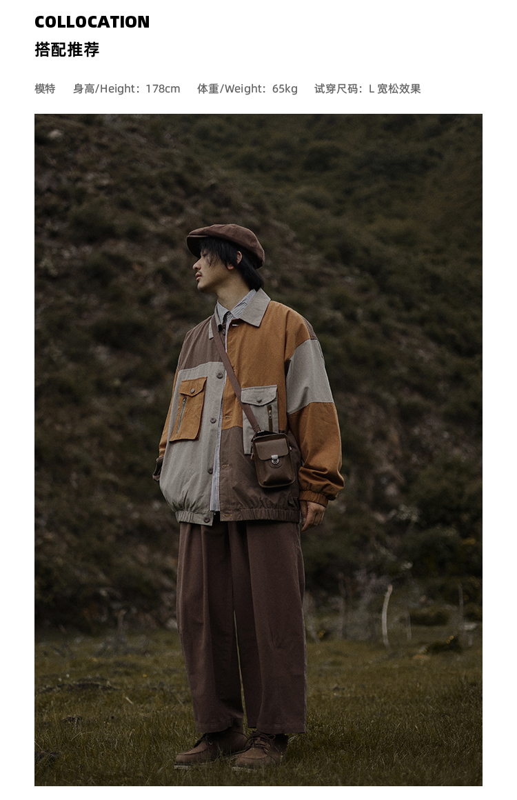 危機青年復古闊腿工裝褲男水洗橄欖色春秋日系寬鬆直筒休閒長褲子