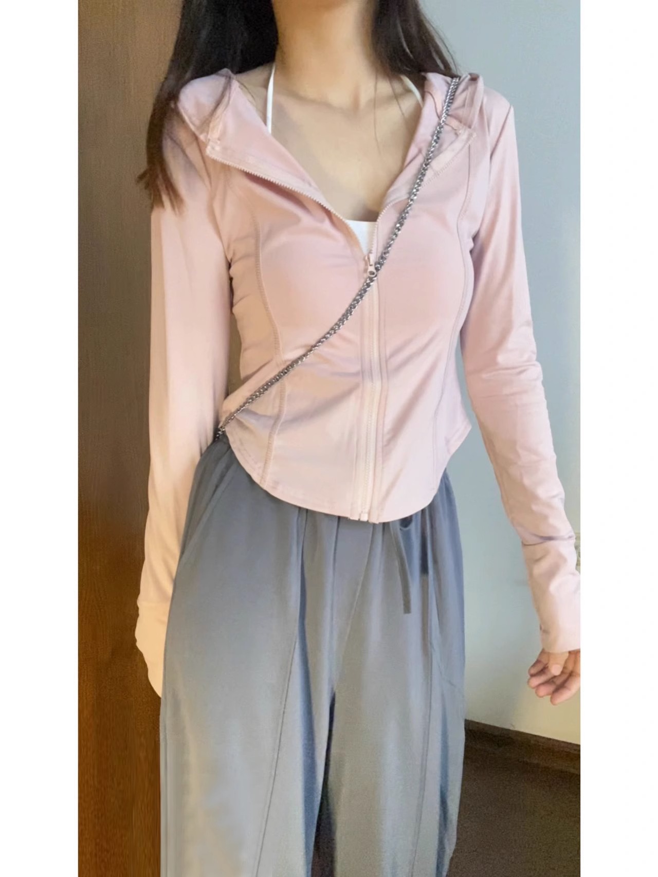 粉色冰絲防曬衣女款夏季修身運動瑜伽服外套緊身上衣女夏2023新款