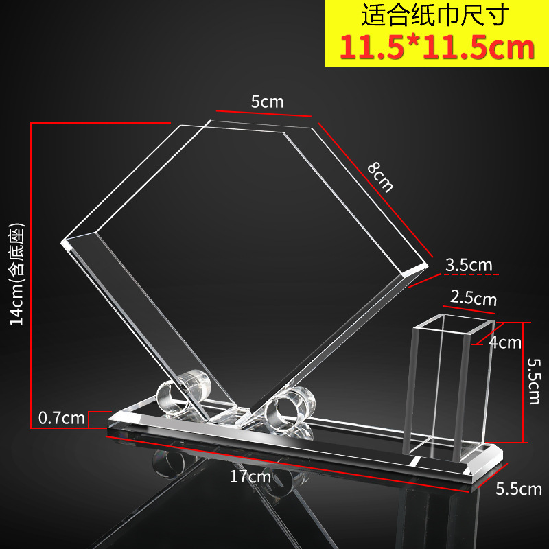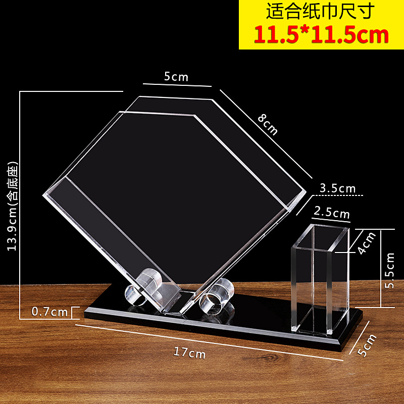 颜色 黑色方底(适合约11.5cm方巾),新透明方底纸巾盒 适合约11.5cm方巾,黑色方底(加大款)适合约13.5cm方巾,黑底心型款 适合约11.5cm方巾,透明心形款 适合约11.5cm方巾,透明方底款适合约13cm方巾,透明圆底(适合约10cm方巾),圆底心型(适合约12cm方巾),亚克力纸巾盒加厚 适合约11.5cm方巾,黑底纸巾盒+牙签筒 适合约11.5cm方巾,新透明方底纸巾盒+牙签筒 适合约11.5cm方巾,黑底心型纸巾盒+牙签筒适合约11.5cm方巾,透明心形纸巾盒+牙签筒适合约11.5cm方巾,光盘行动款式一,光盘行动款式二,光盘行动款式三,双层高级方巾纸(11.5*11.5)10包装,亚克力方形纸巾盒适合约11.5cm方巾,亚克力纸巾盒+牙签筒+名片盒 适合约11.5cm方巾,立式纸巾盒 适合约11.5cm方巾,斜式纸巾盒 适合约11.5cm方巾