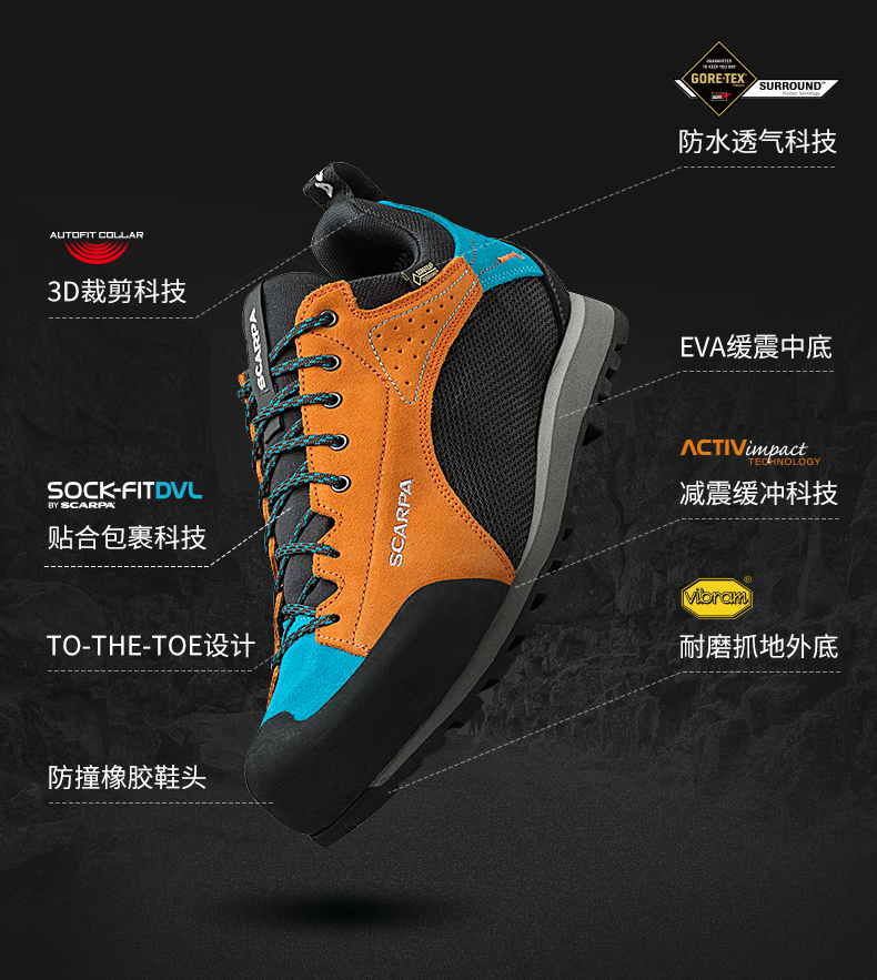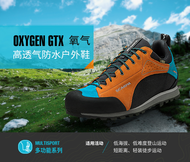scarpa斯卡帕Oxygen氧氣GTX戶外防水透氣徒步V底耐磨防滑登山鞋男
