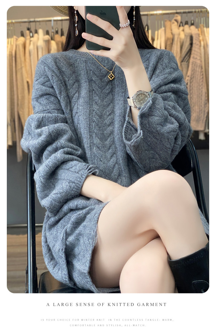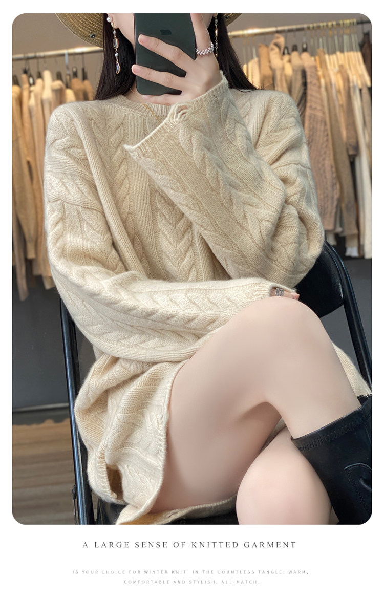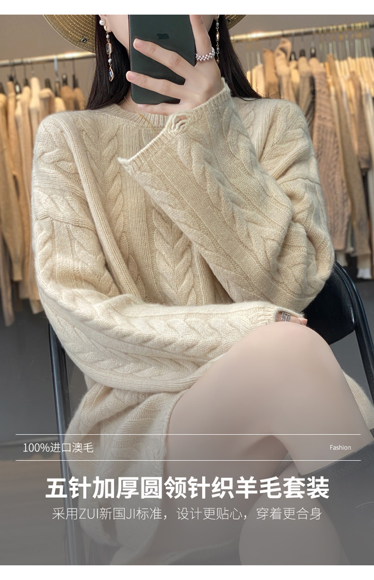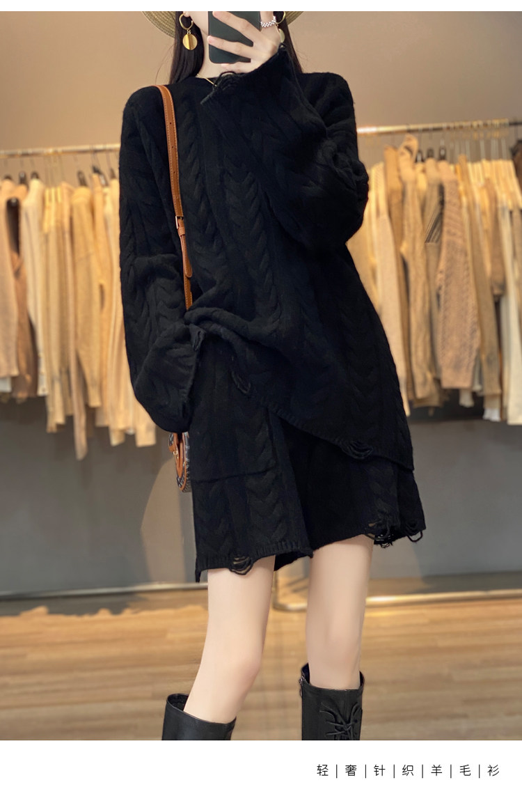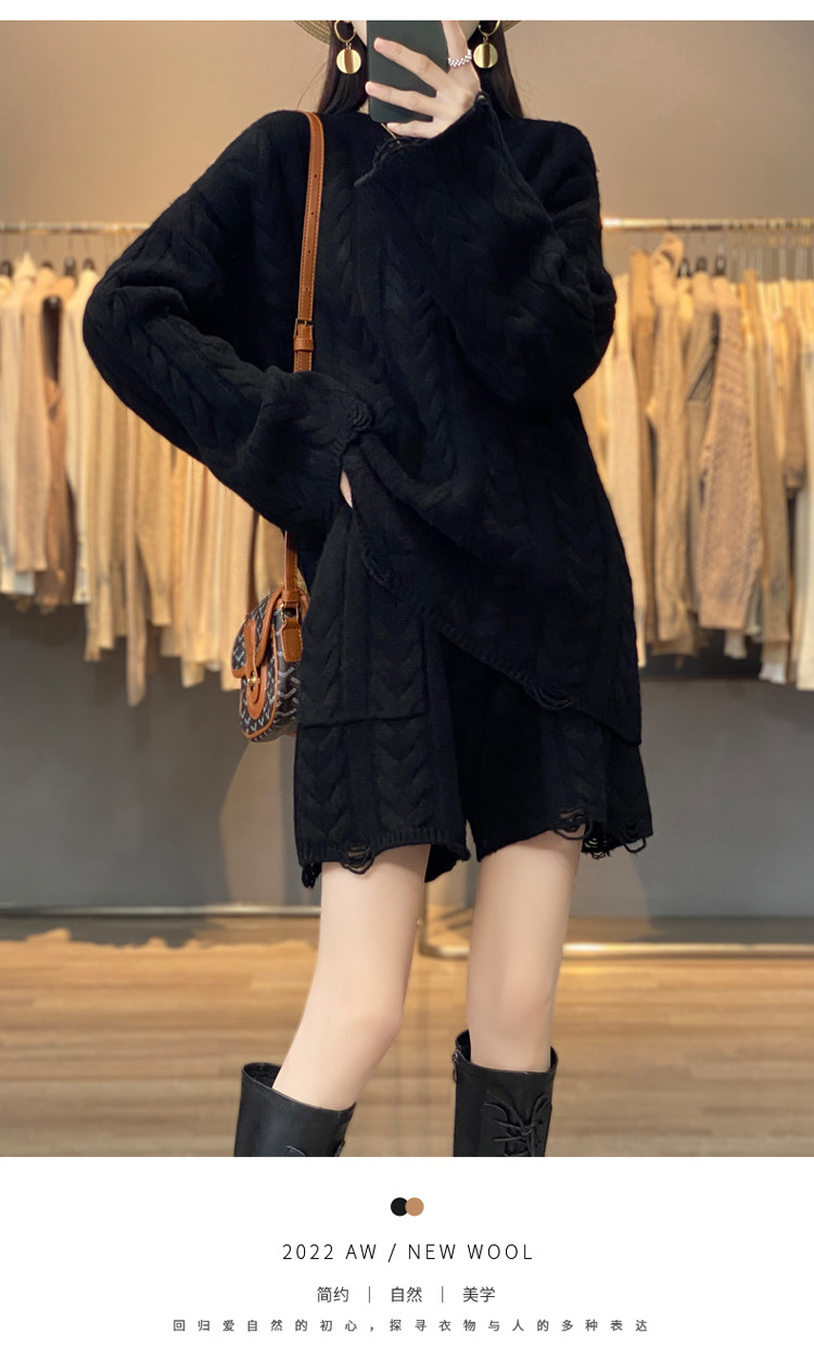 加厚麻花羊毛衫套裝女純色圓領套頭羊絨衫短褲兩件套寬鬆長袖針織
