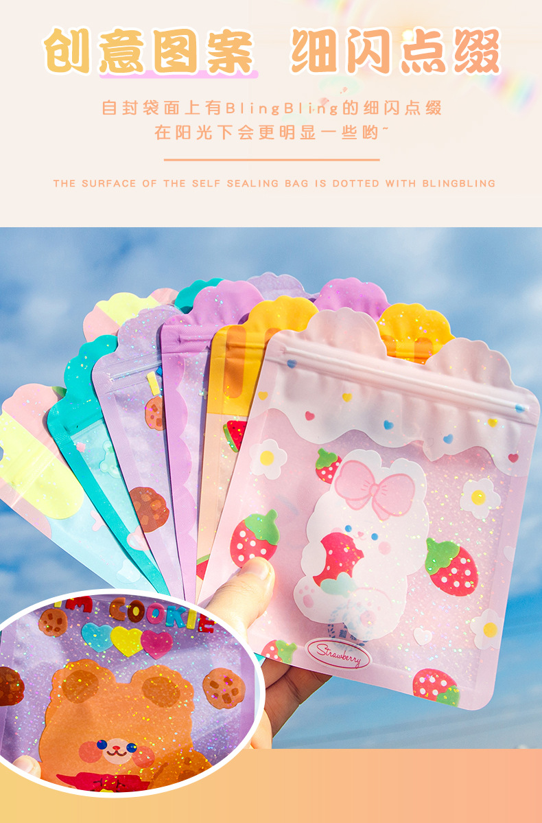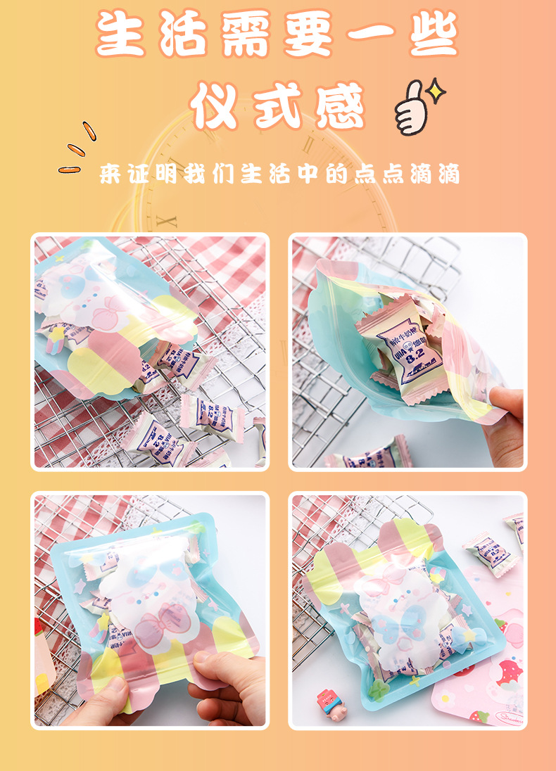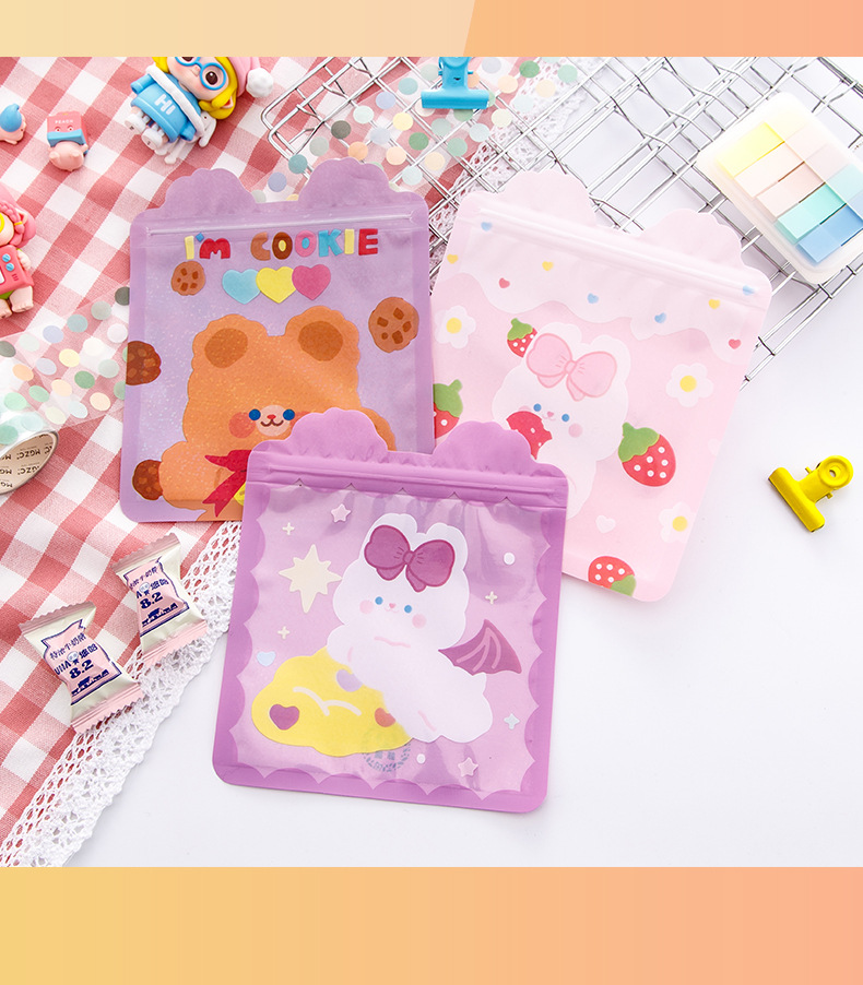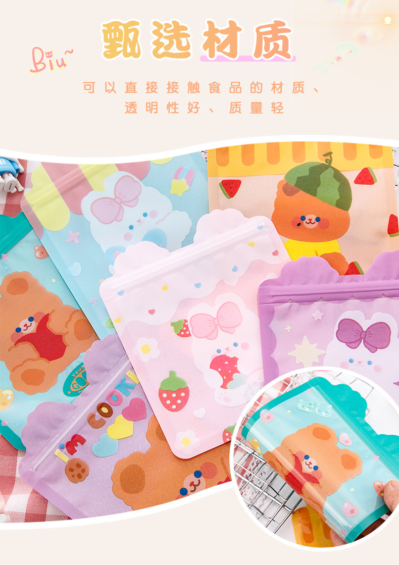 卡通可爱零食自封袋女心小熊饼干糖果袋食品封口袋喜糖袋包装袋