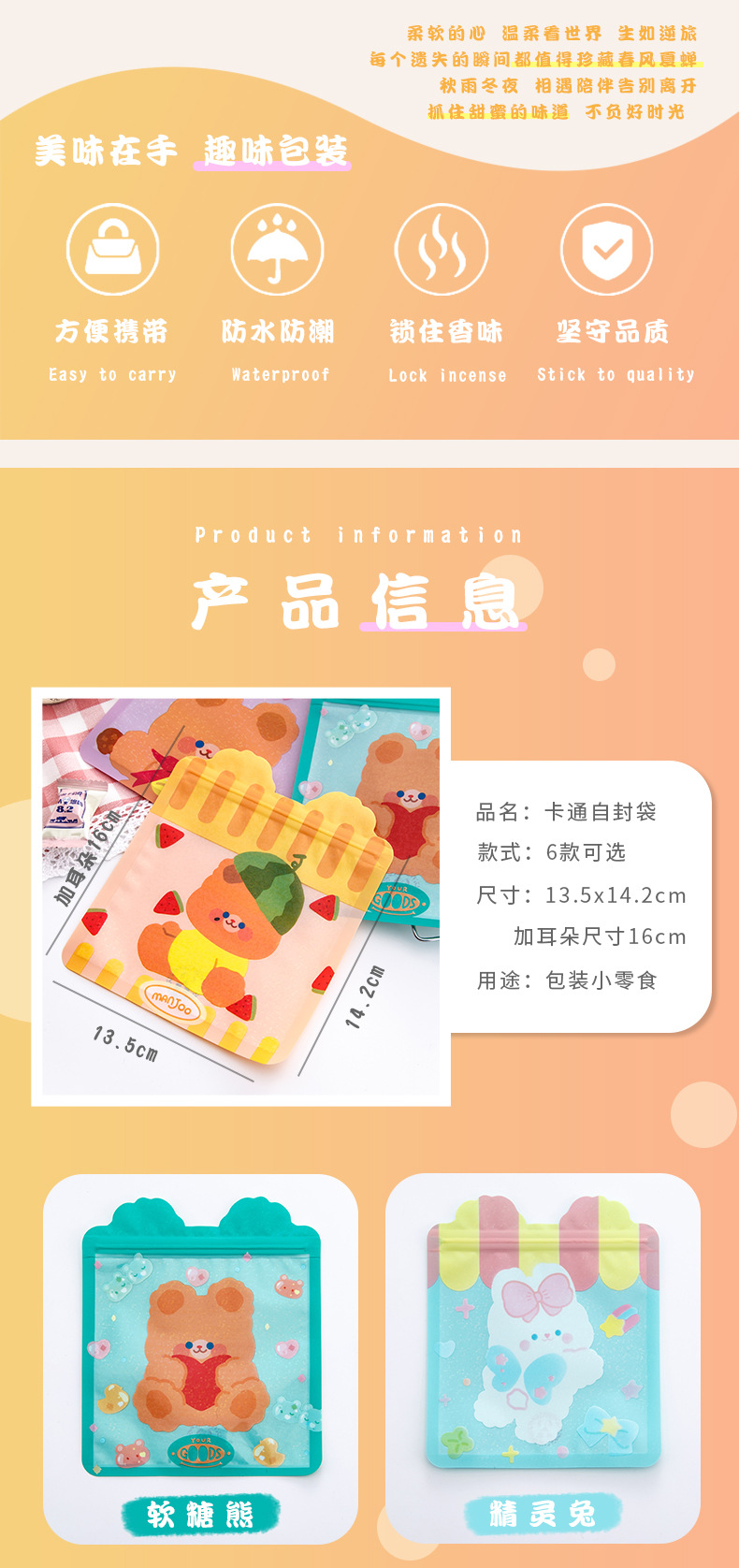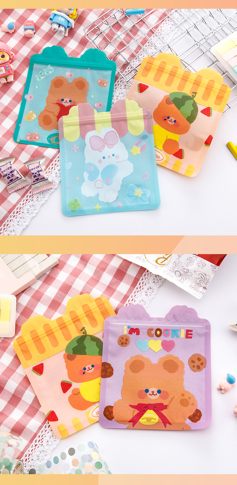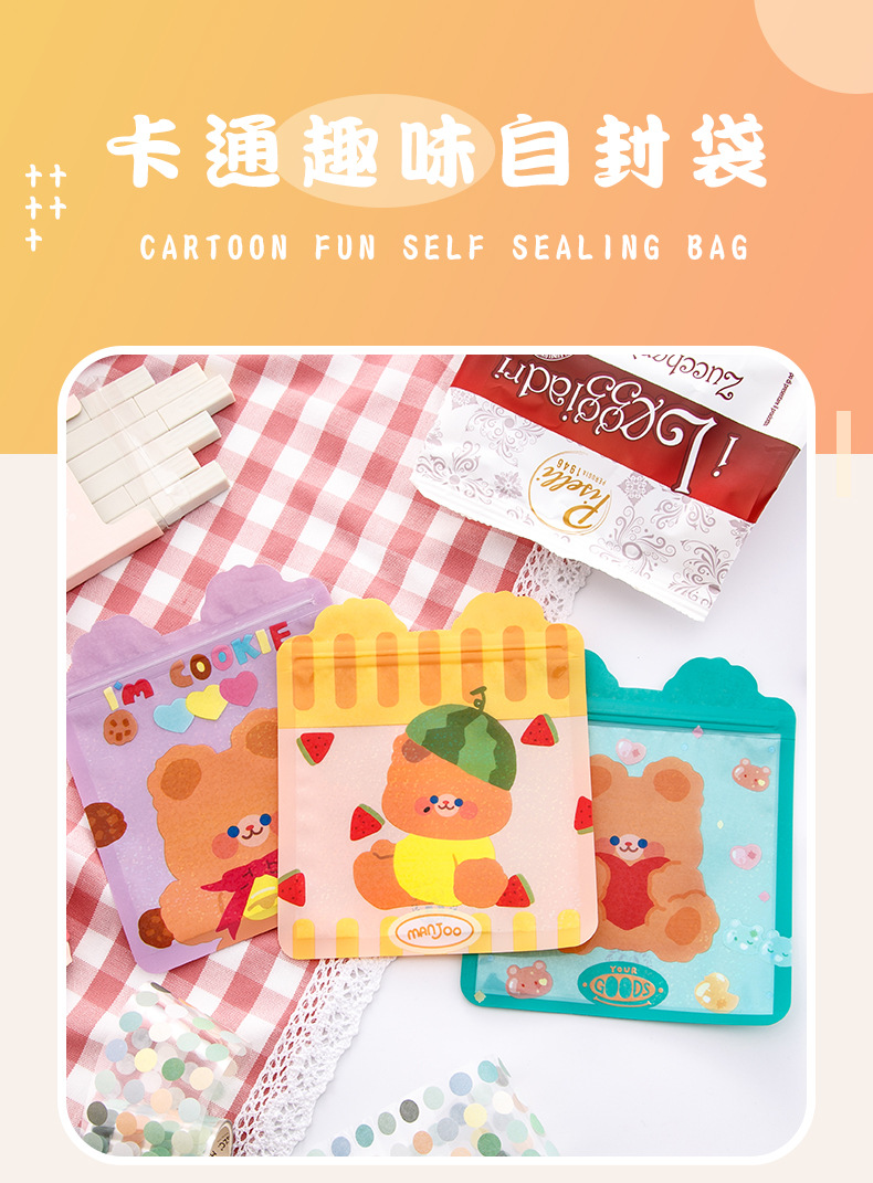 卡通可爱零食自封袋女心小熊饼干糖果袋食品封口袋喜糖袋包装袋