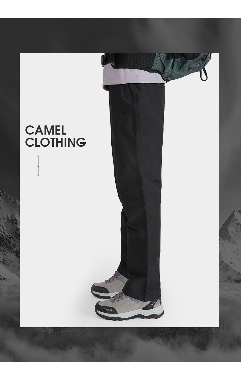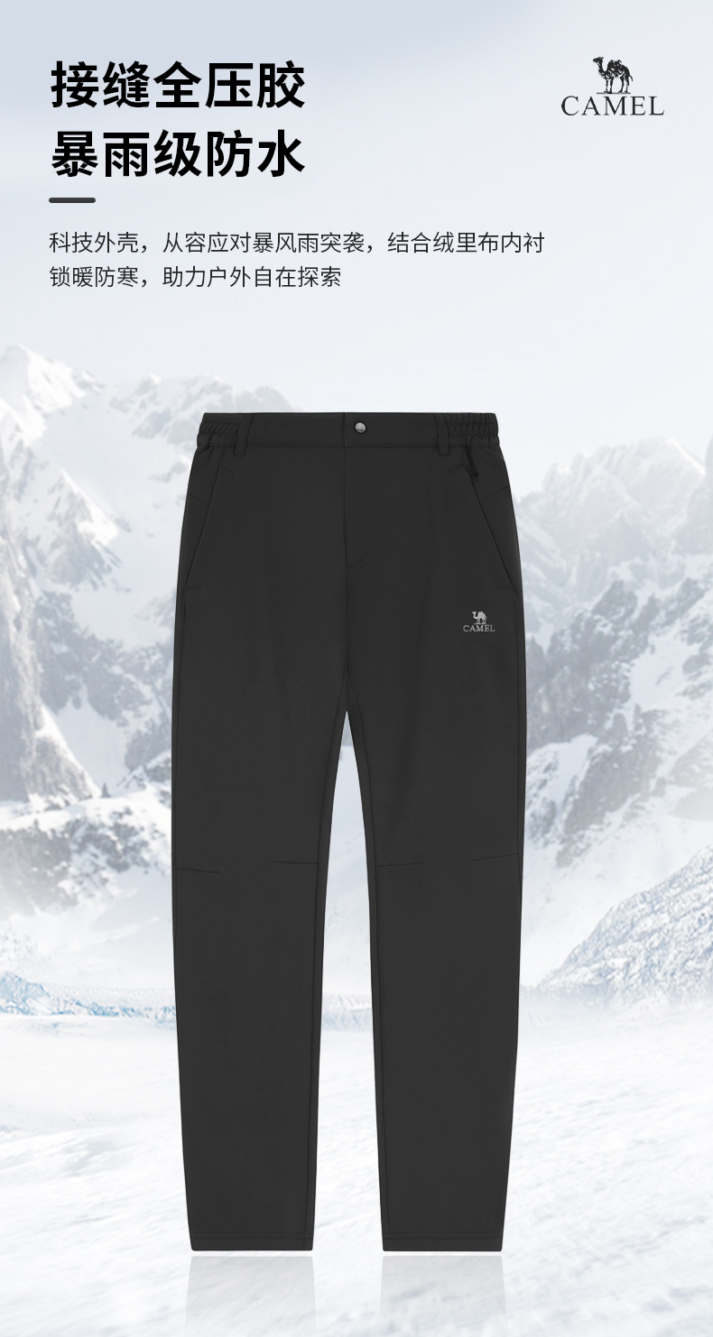 駱駝戶外衝鋒褲男女款秋冬防水防風透氣登山滑雪褲加絨保暖硬殼褲