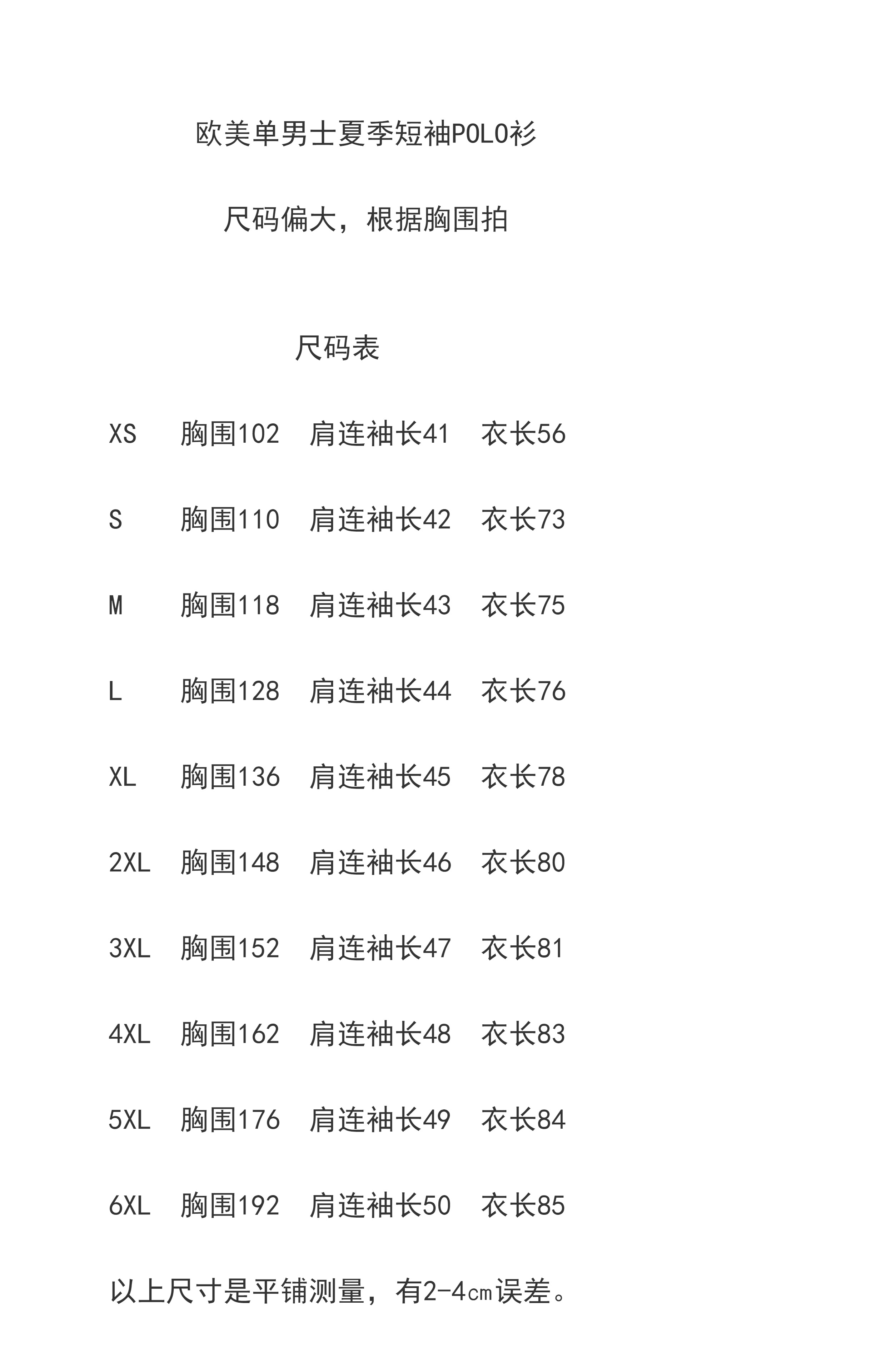 尺碼 S,M,L,XL,2XL,3XL,XS,4XL,5XL,6XL