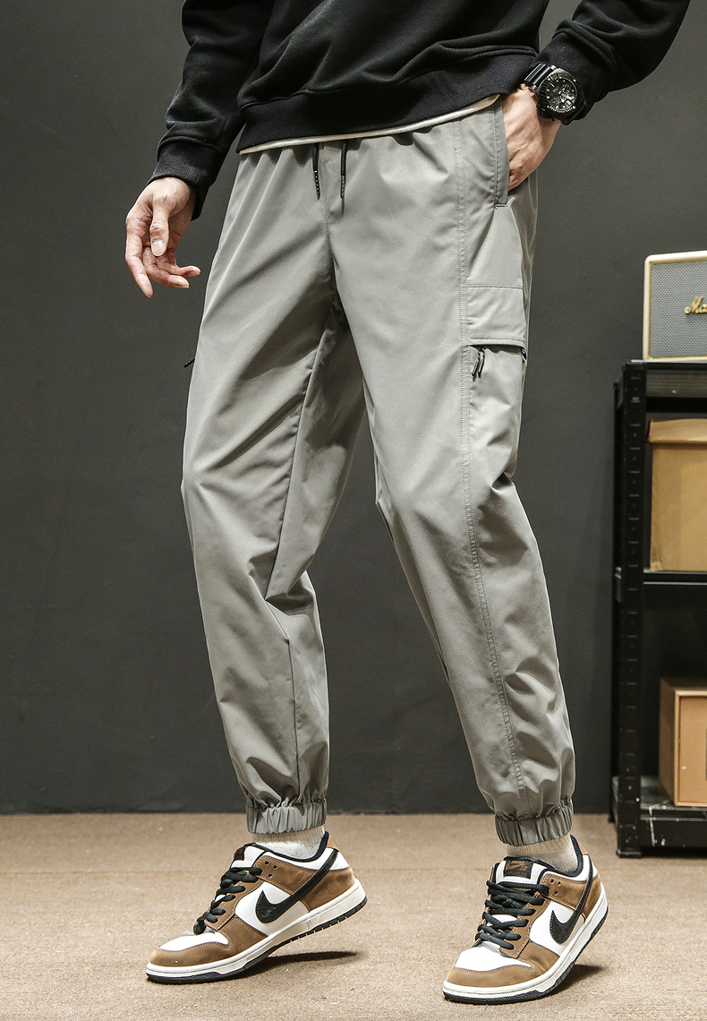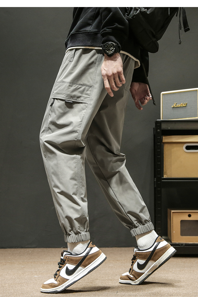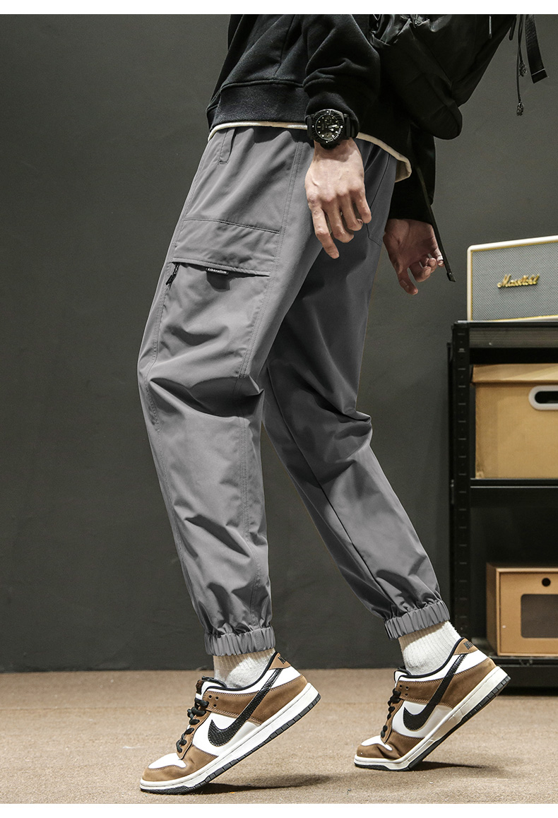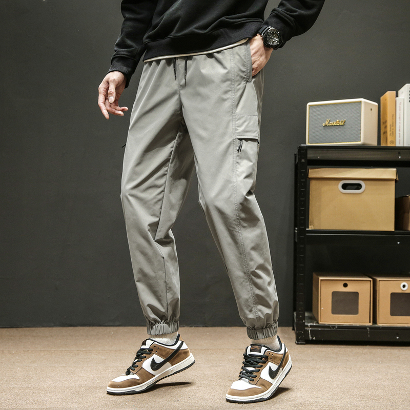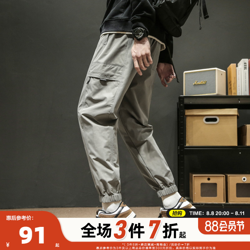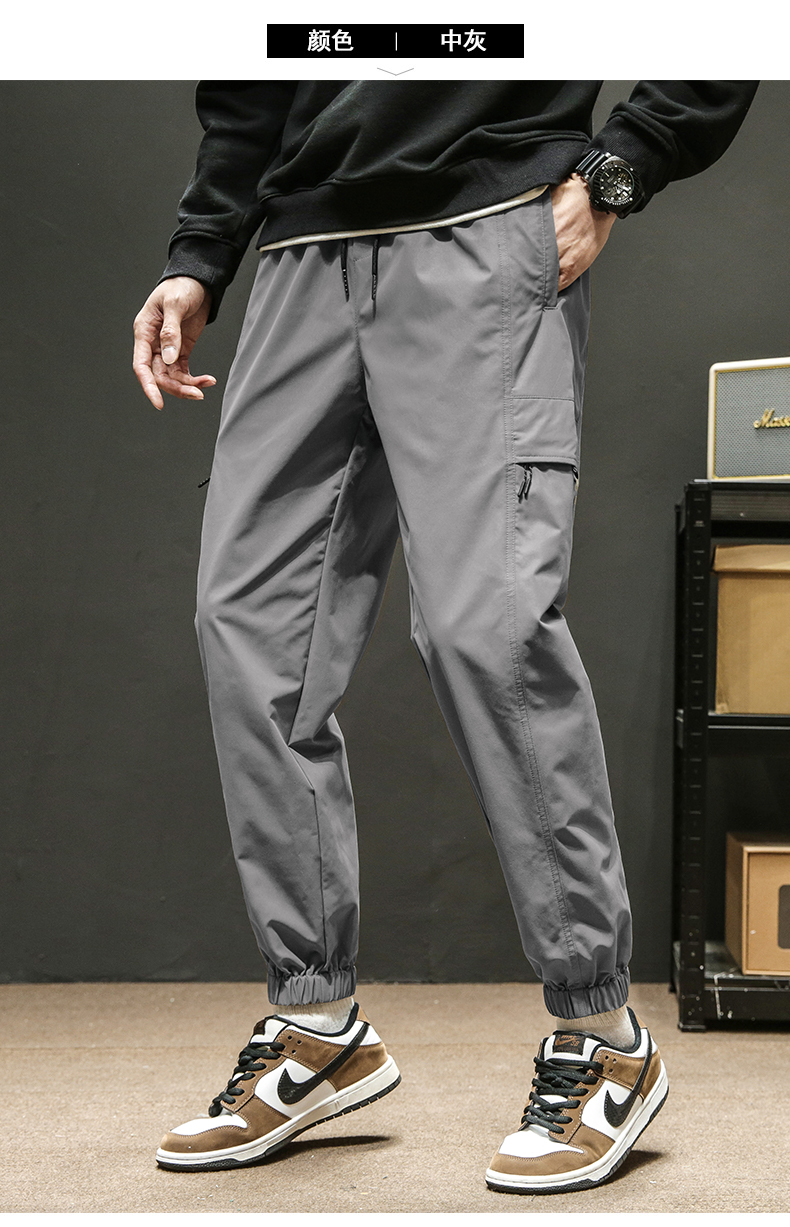 唐獅2023春秋男士休閒褲冰絲速乾寬鬆束腳運動潮酷工裝日系風長褲