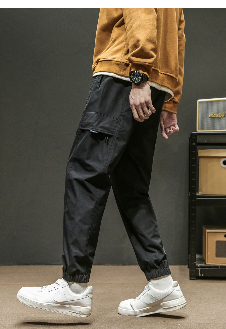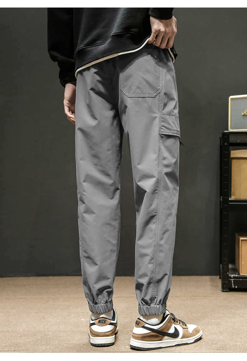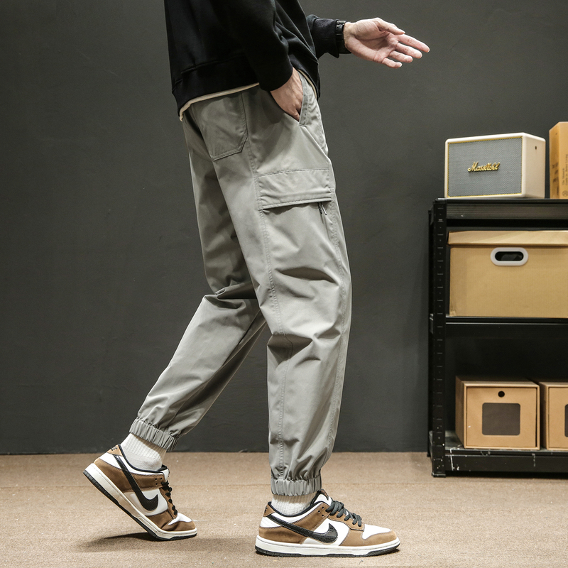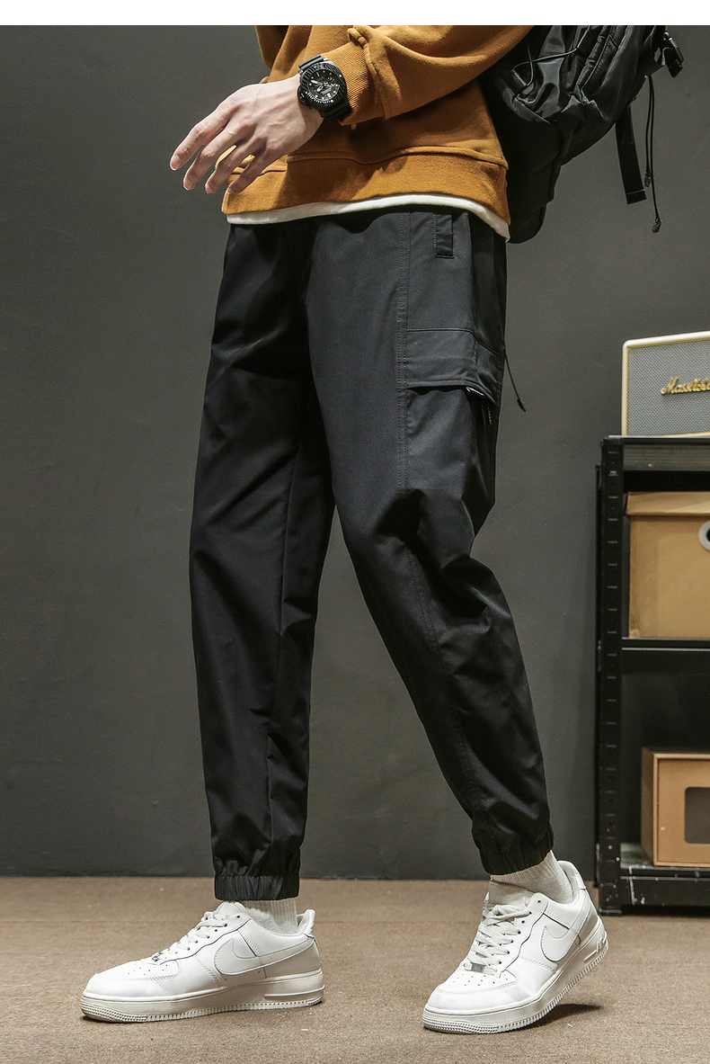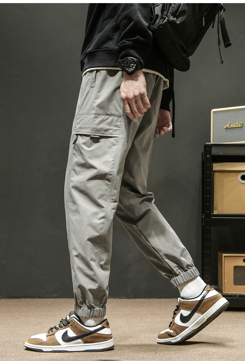 唐獅2023春秋男士休閒褲冰絲速乾寬鬆束腳運動潮酷工裝日系風長褲