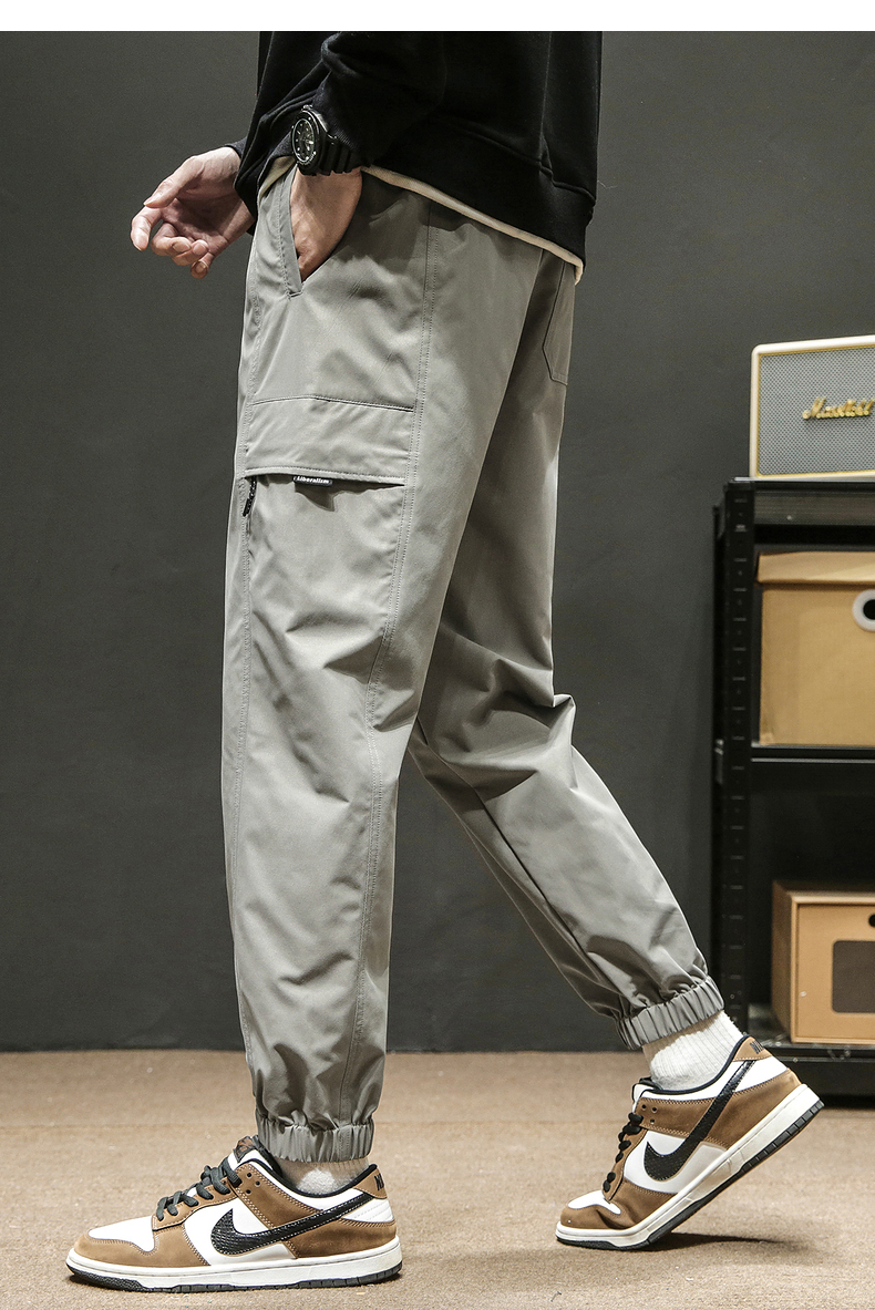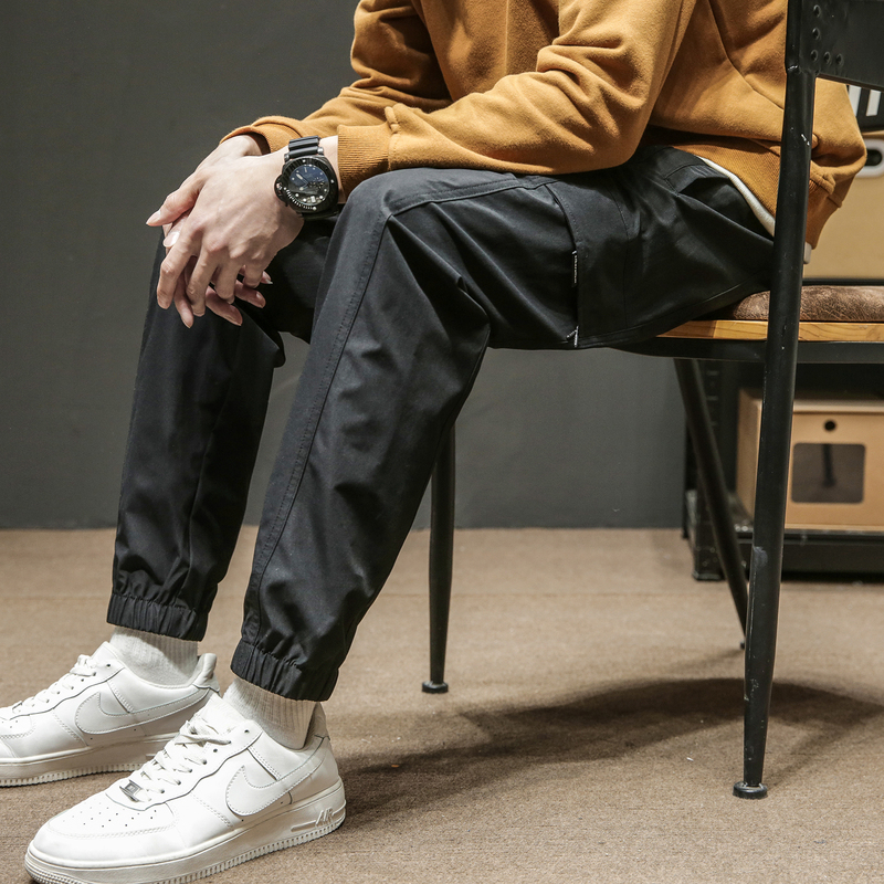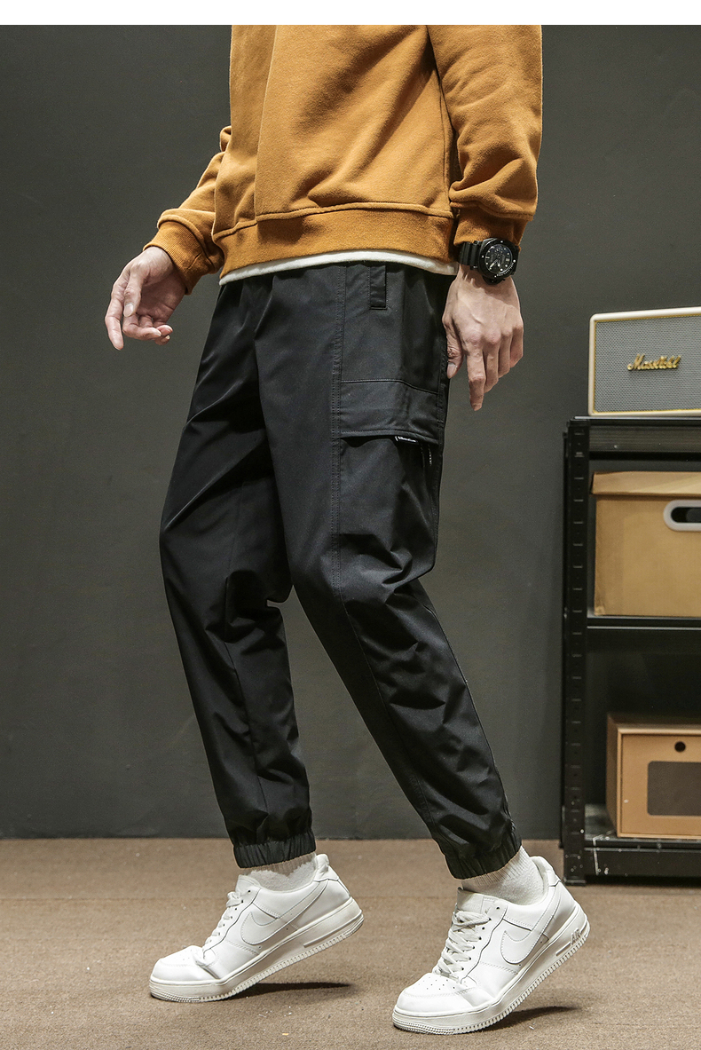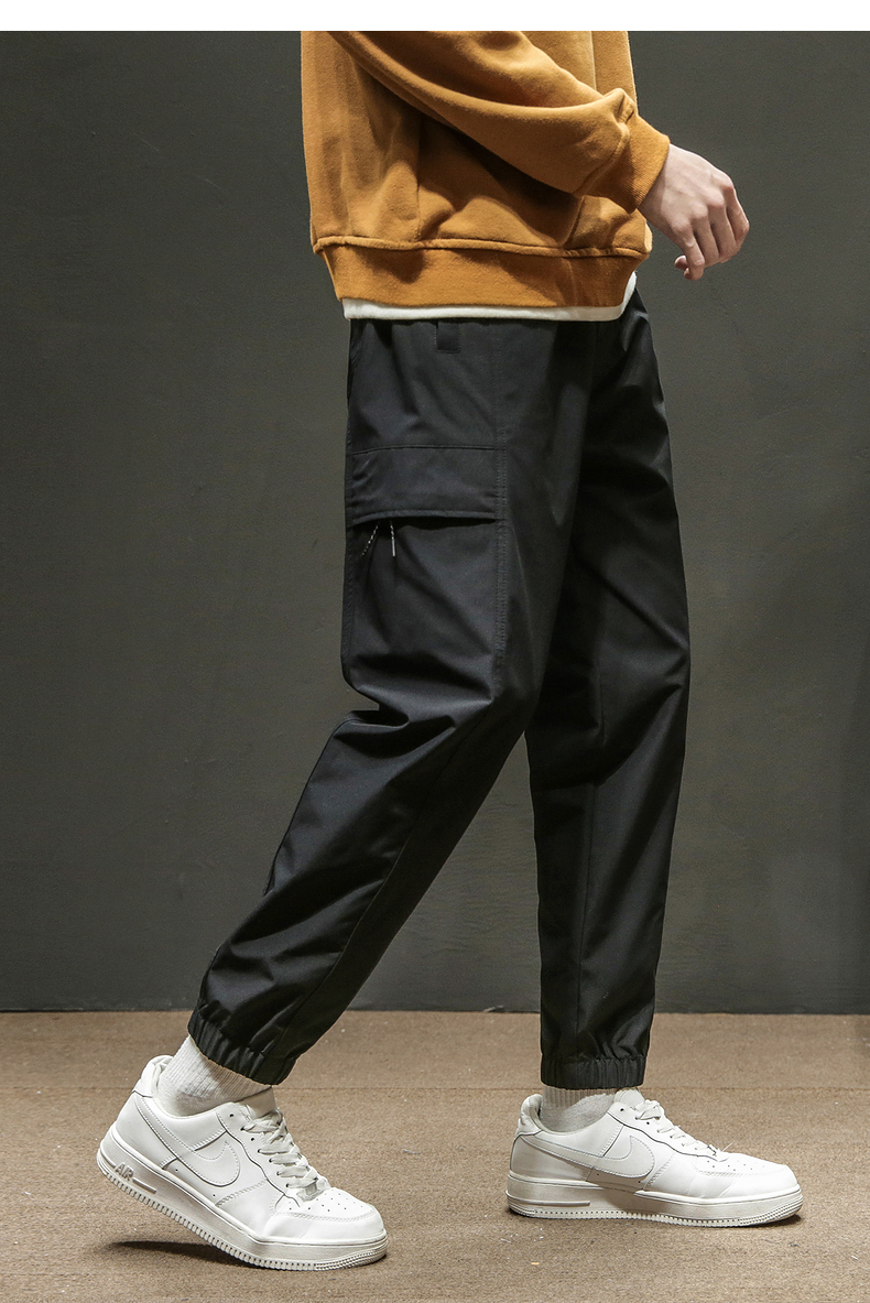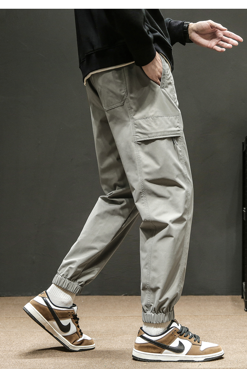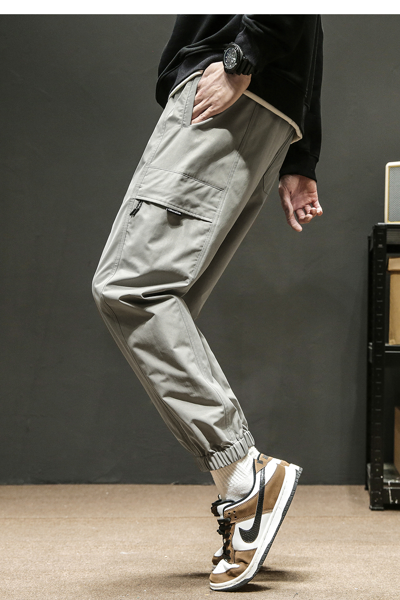 唐獅2023春秋男士休閒褲冰絲速乾寬鬆束腳運動潮酷工裝日系風長褲