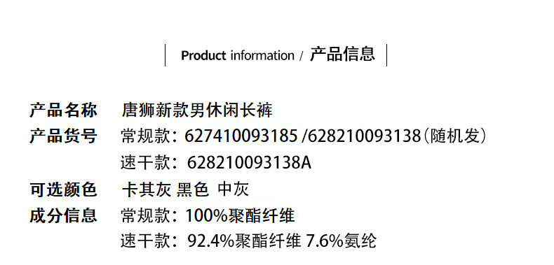 顏色 黑色 卡其灰(夏季薄款) 黑色(夏季薄款) 中灰(夏季薄款) 卡其灰 4 5 6