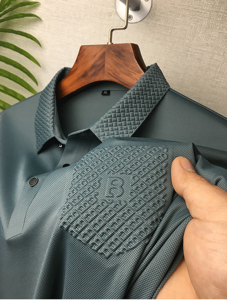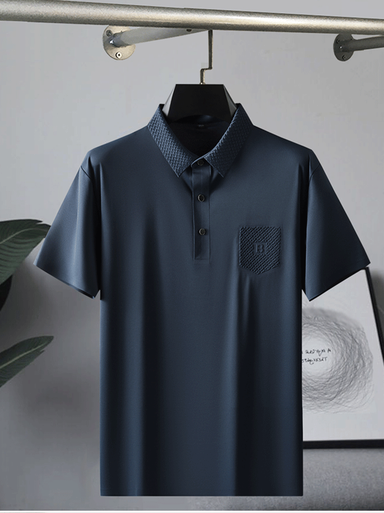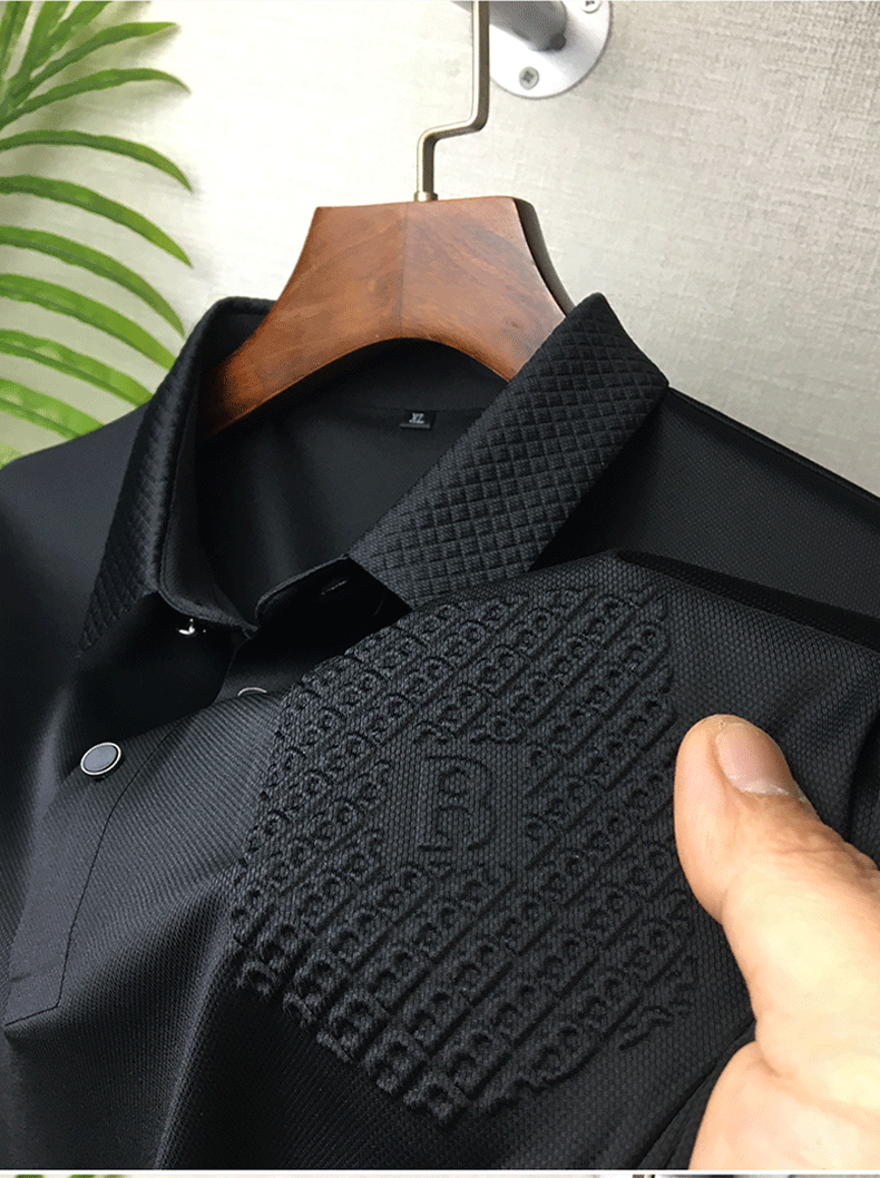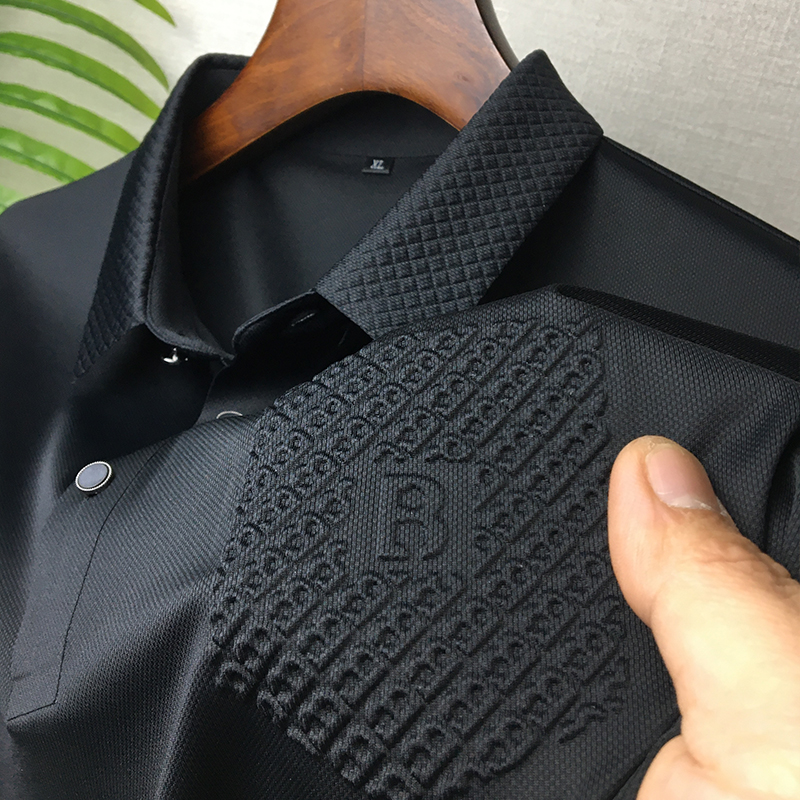 凹凸3D翻領polo衫男短袖夏季胖子寬鬆大尺碼有領T恤冰絲半袖T恤衫