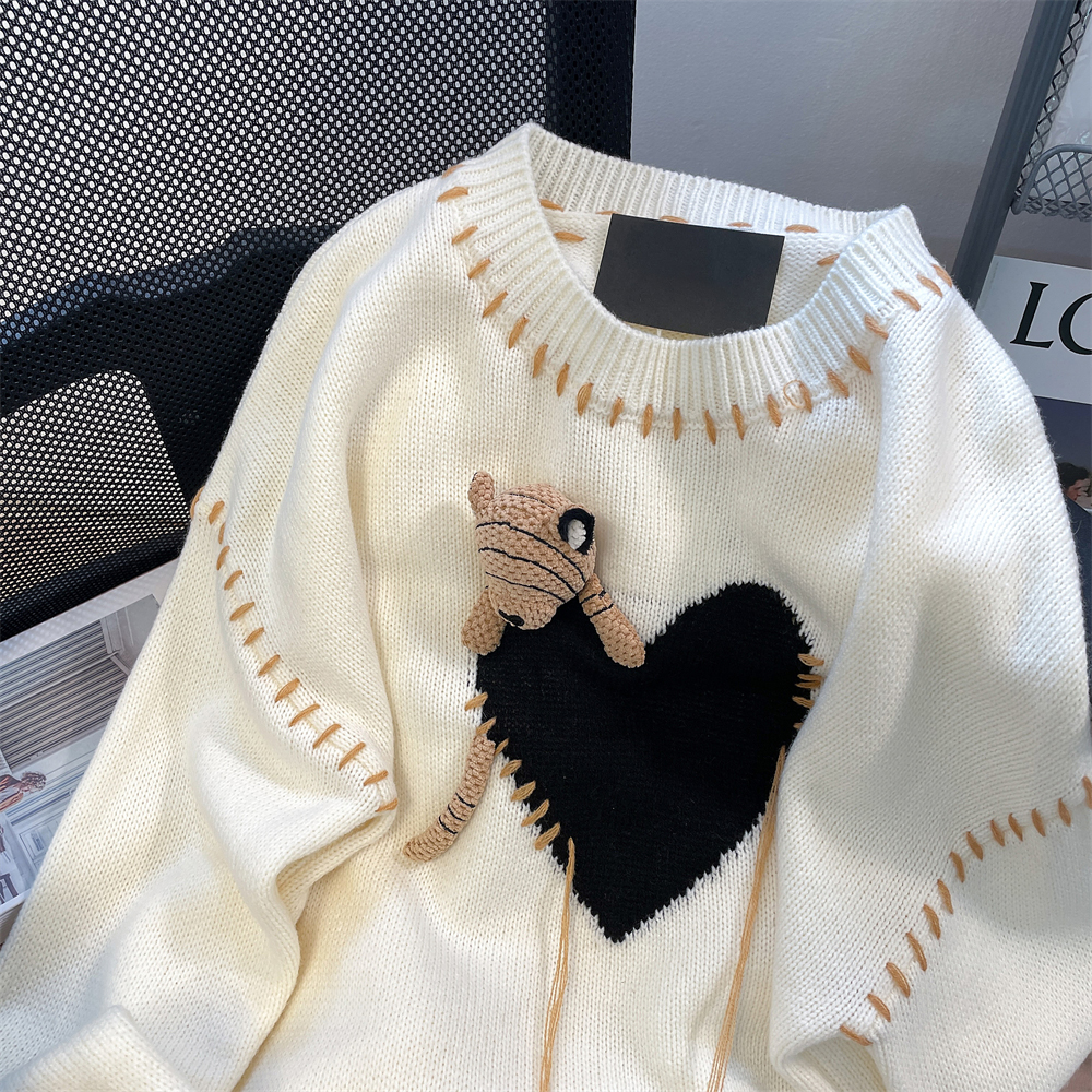 奶fufu溫柔風軟糯小熊愛心針織衫女藝術生寬鬆高級感慵懶外穿毛衣