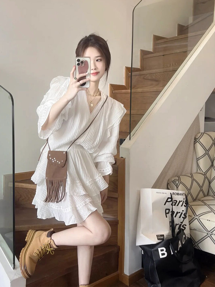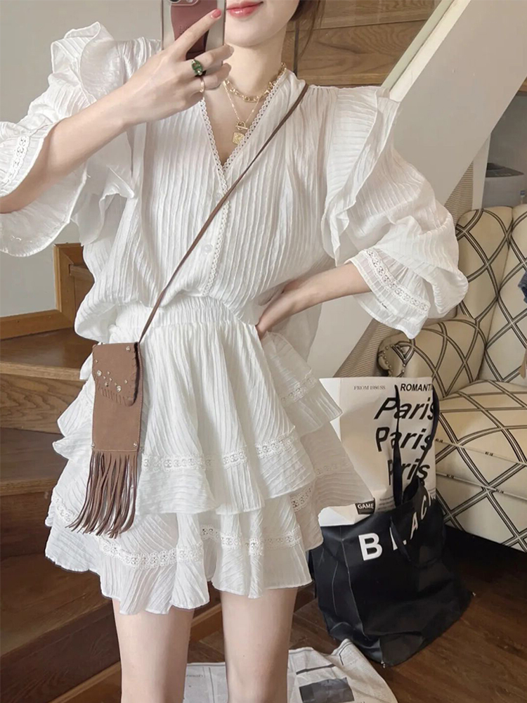 夏季2023新款女法式高級感時尚高端氣質洋派減齡白色連衣裙子套裝