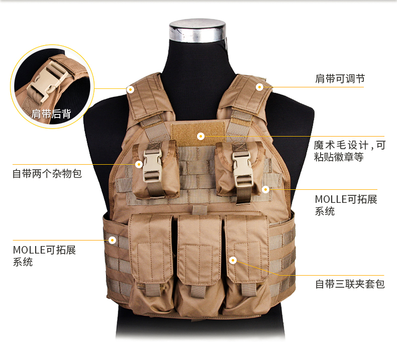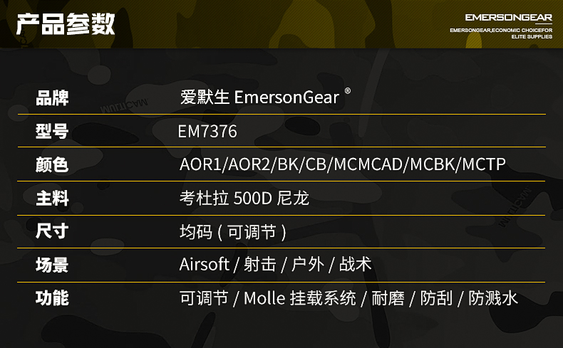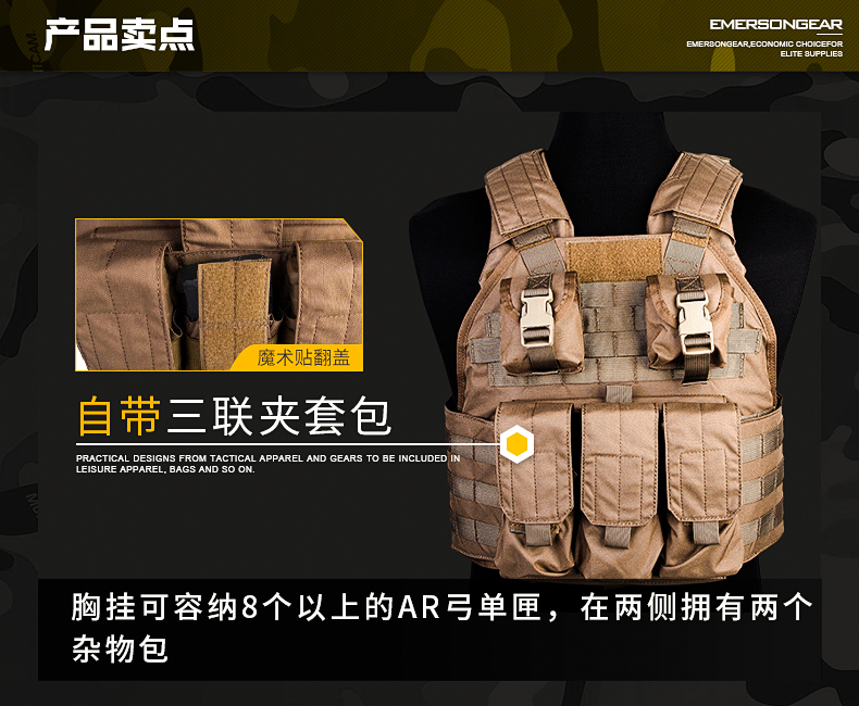 愛默生EmersonGearSPC戰術背心三聯夾套面板(無插板)