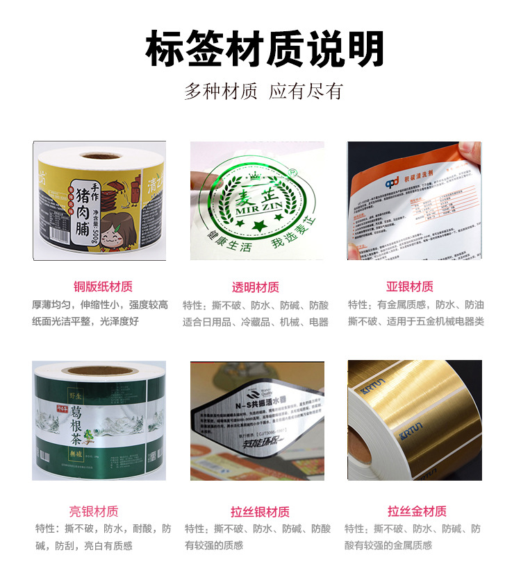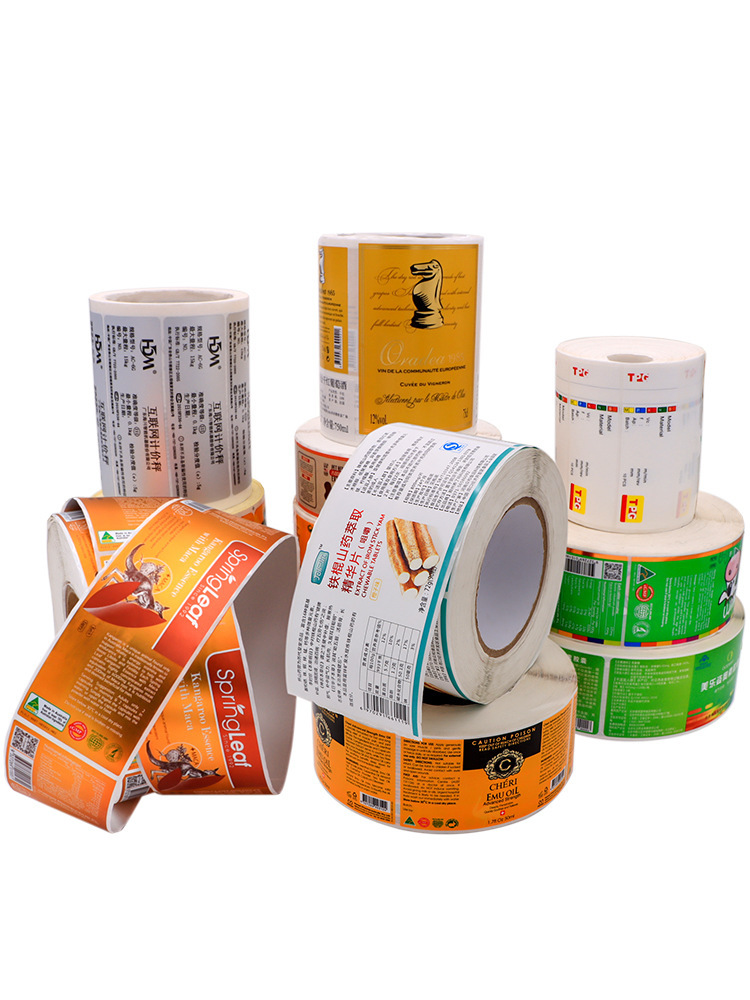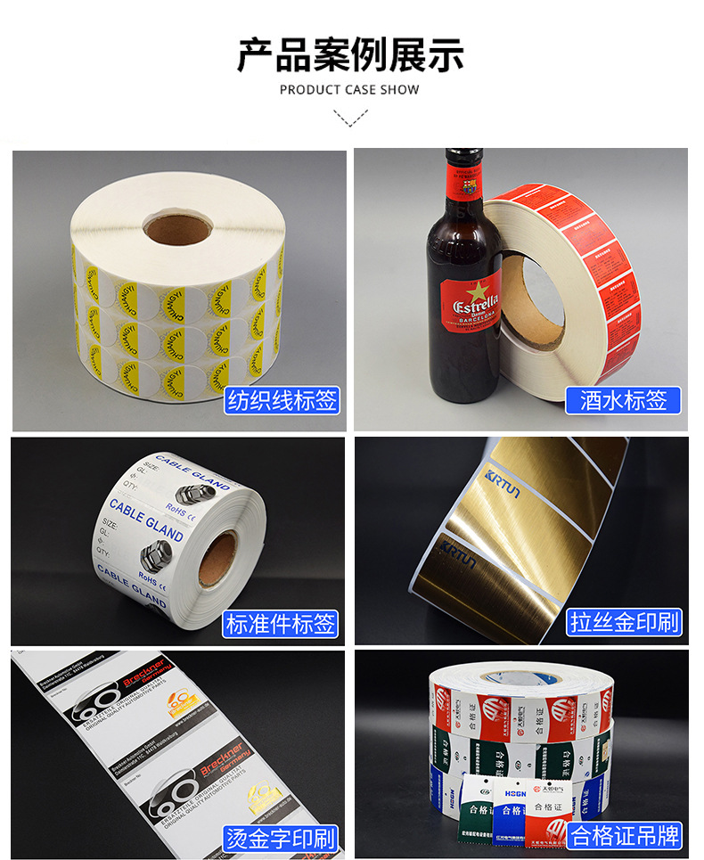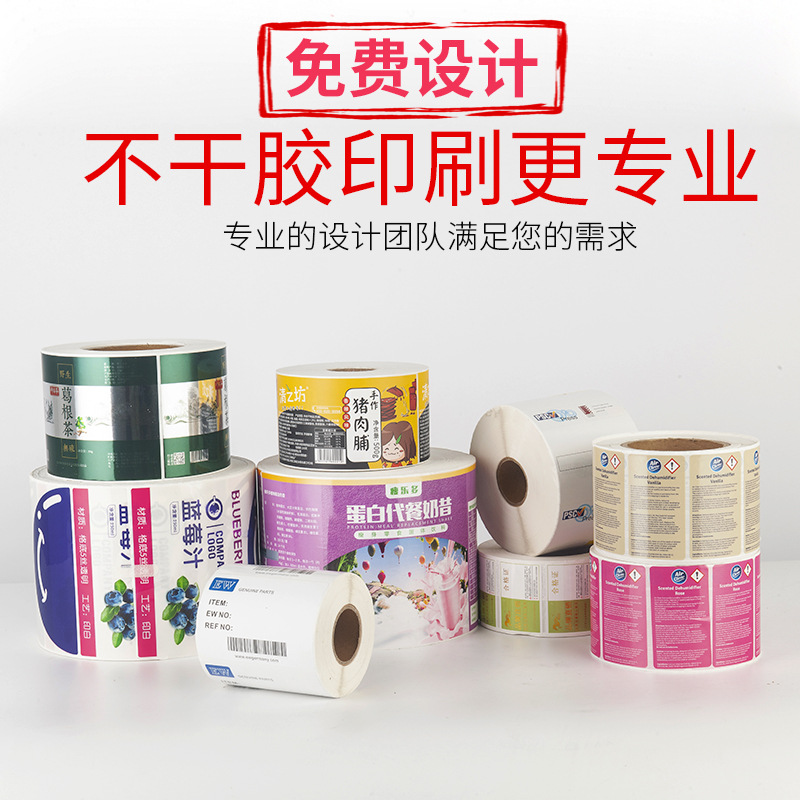 卷筒不干胶标签打印贴纸铜版纸烫金哑银合成透明贴纸印白自动贴标