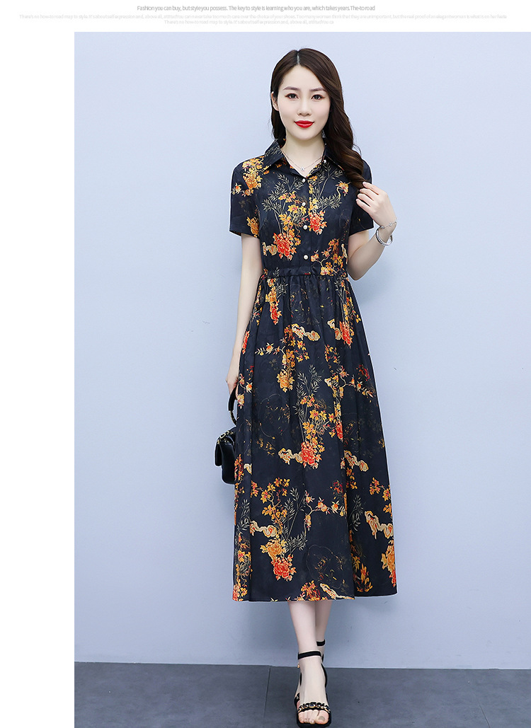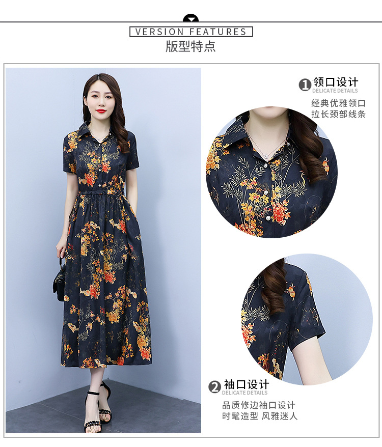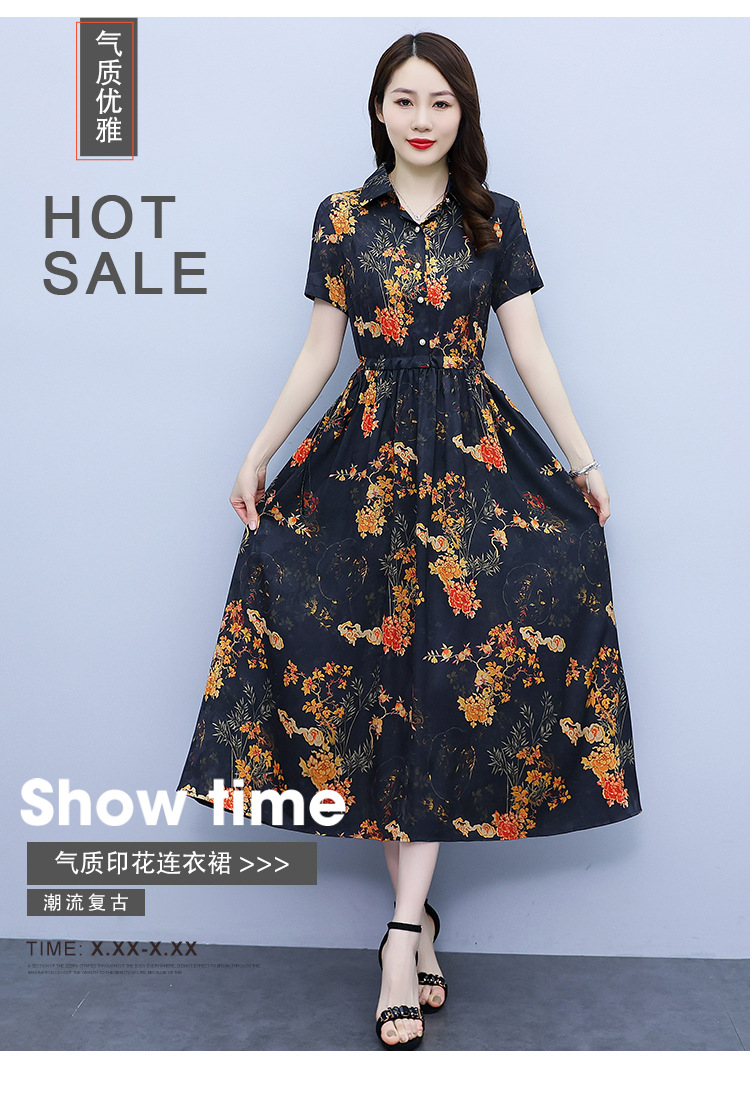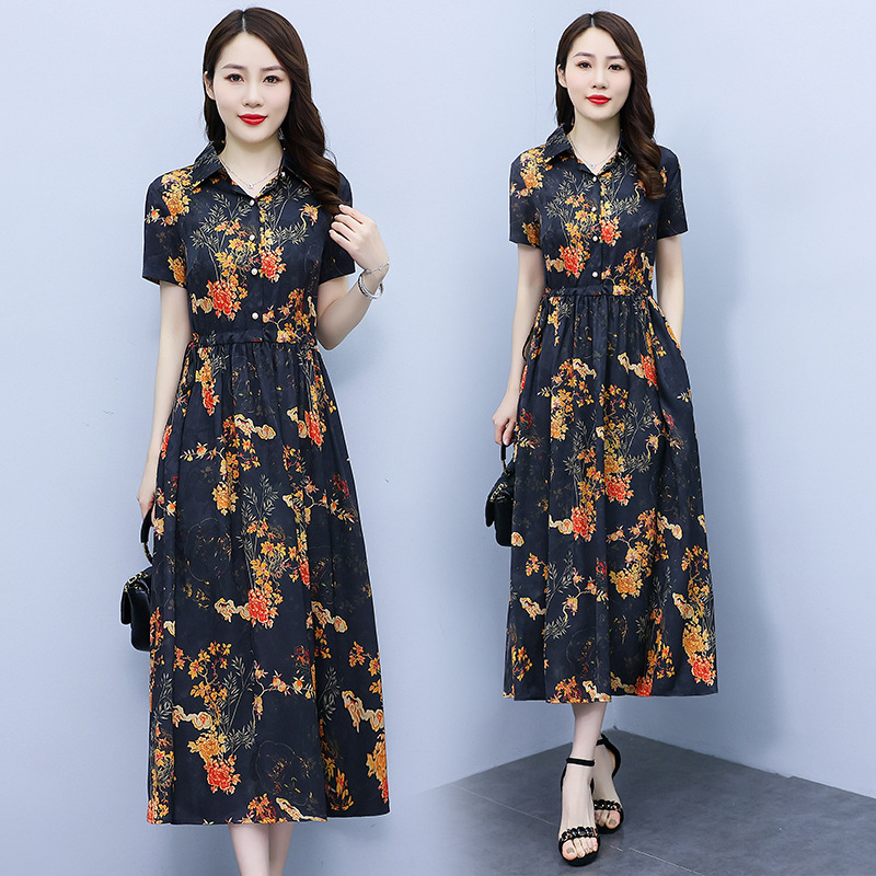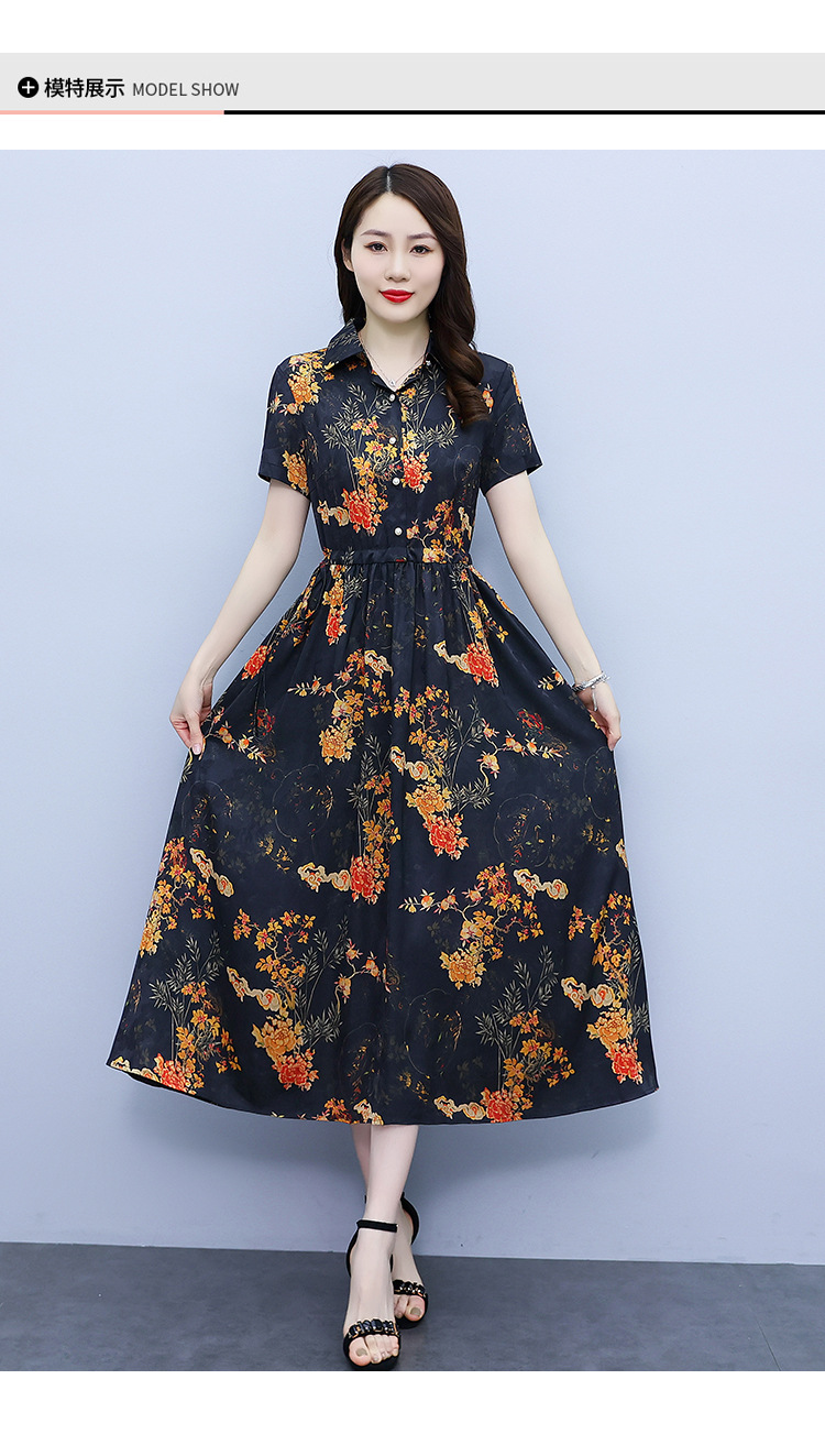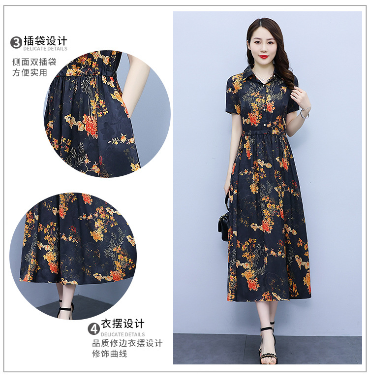 2023新款夏季收腰修身妈妈款连衣裙大码中长款短袖气质碎花连衣裙