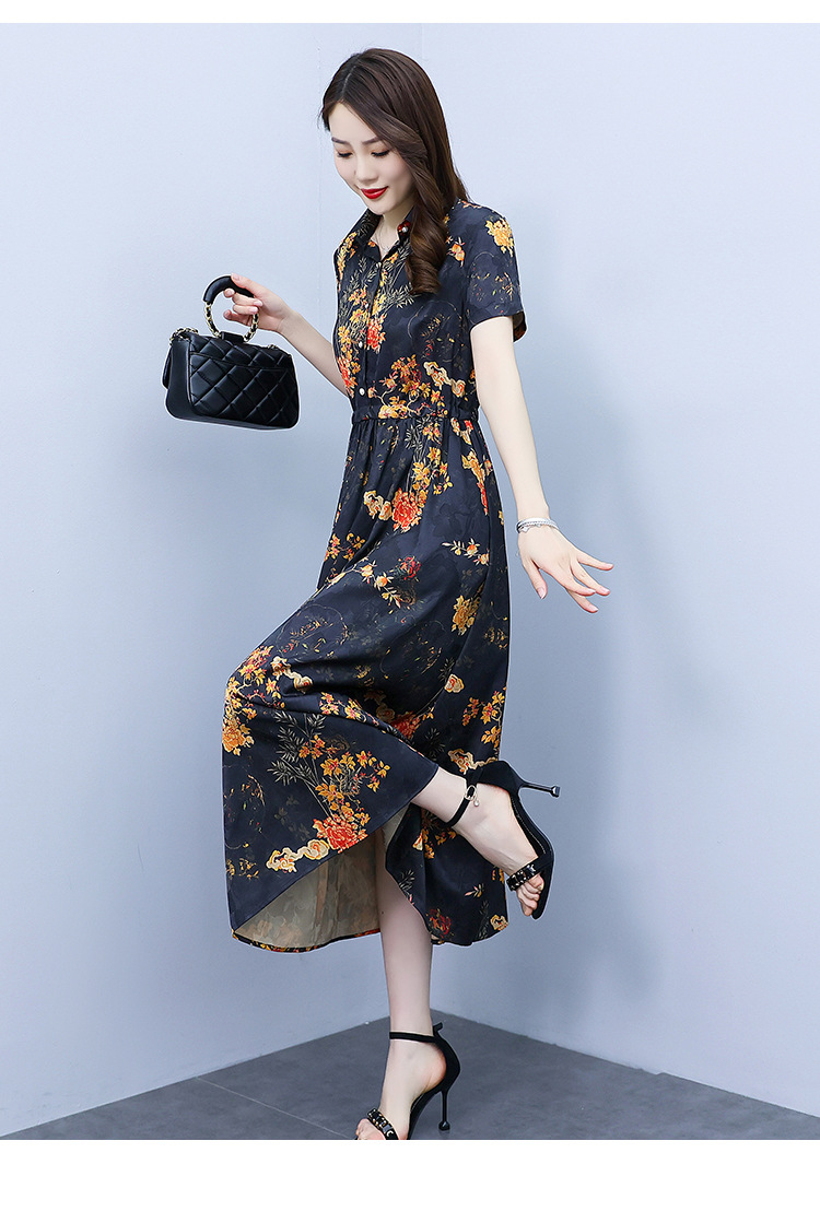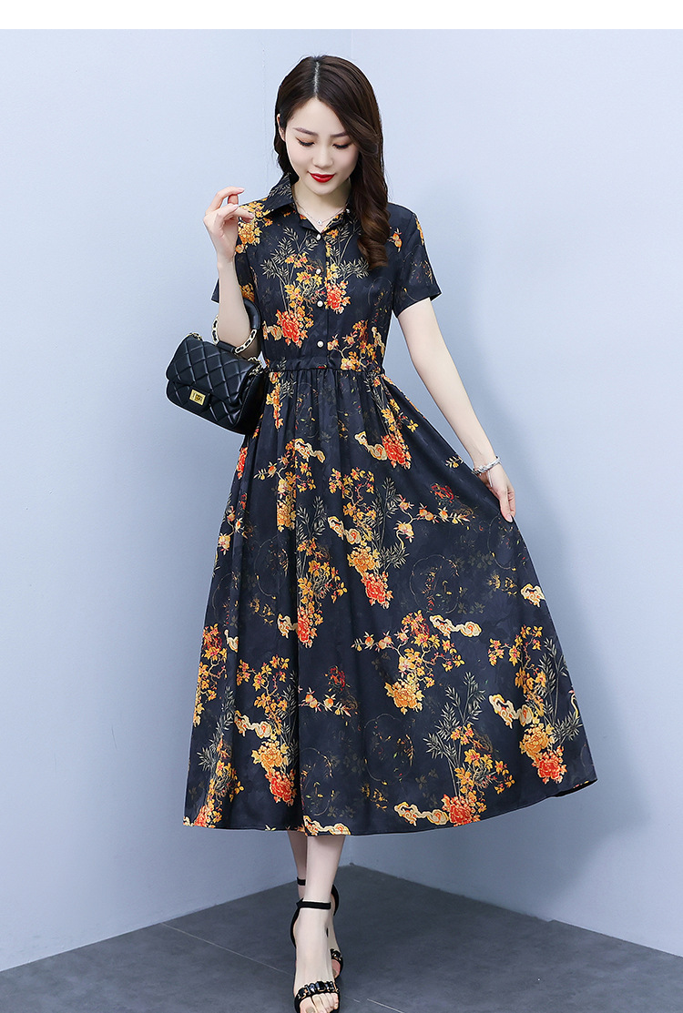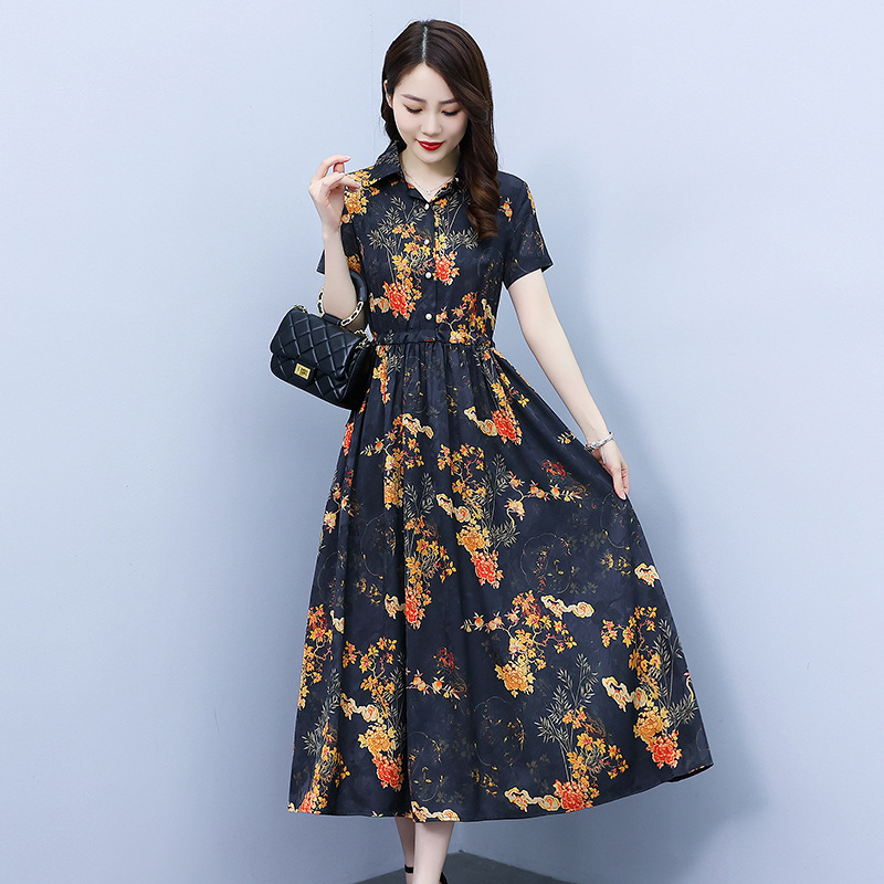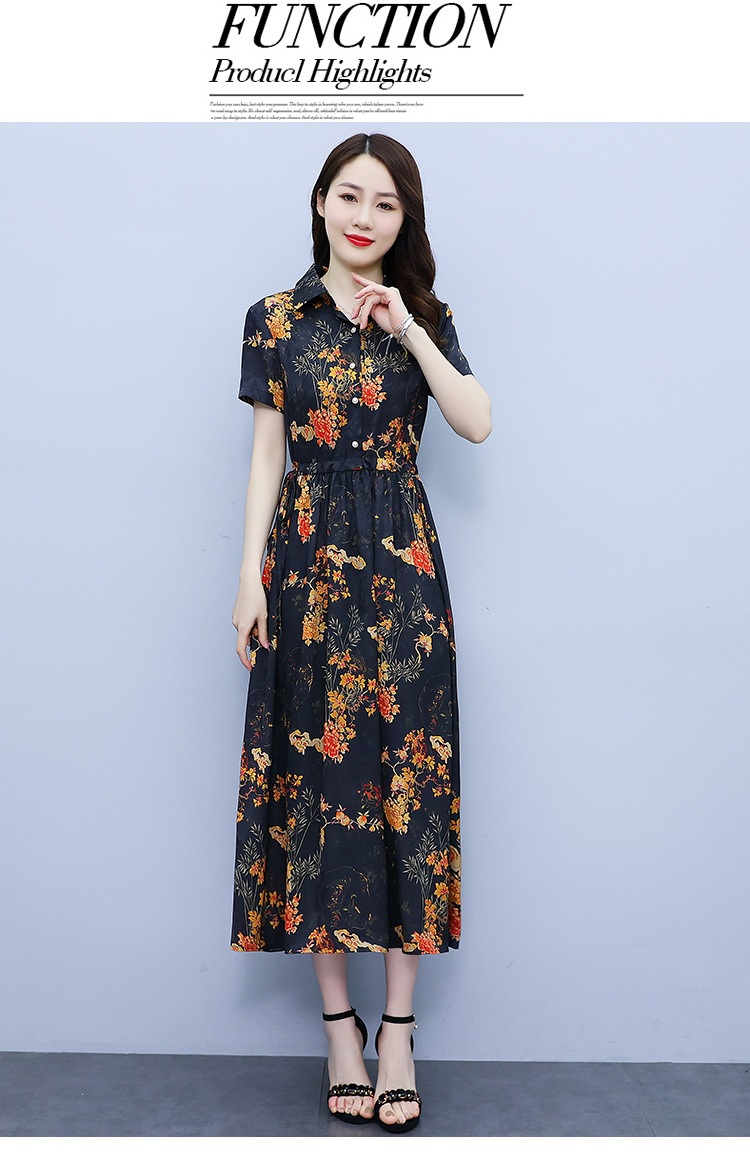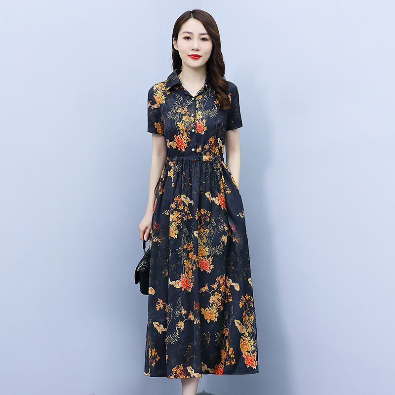 2023新款夏季收腰修身妈妈款连衣裙大码中长款短袖气质碎花连衣裙