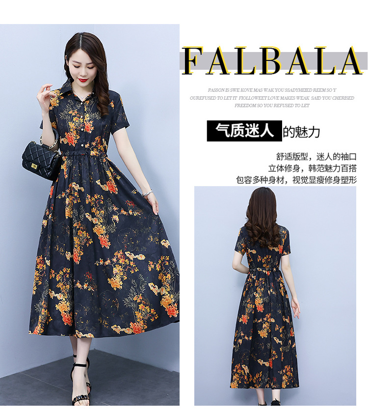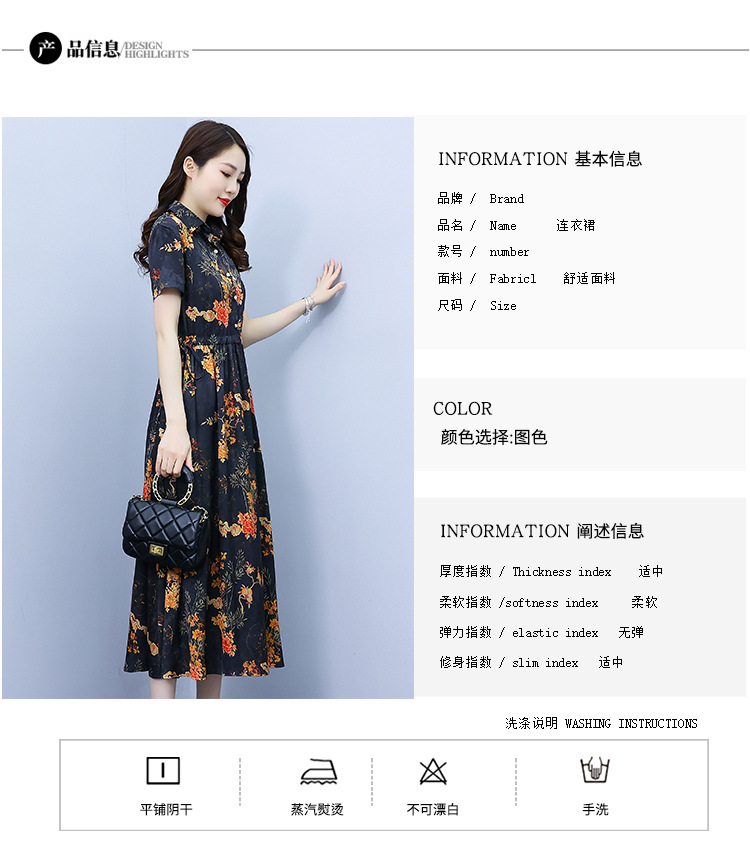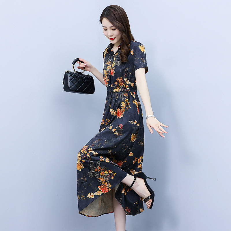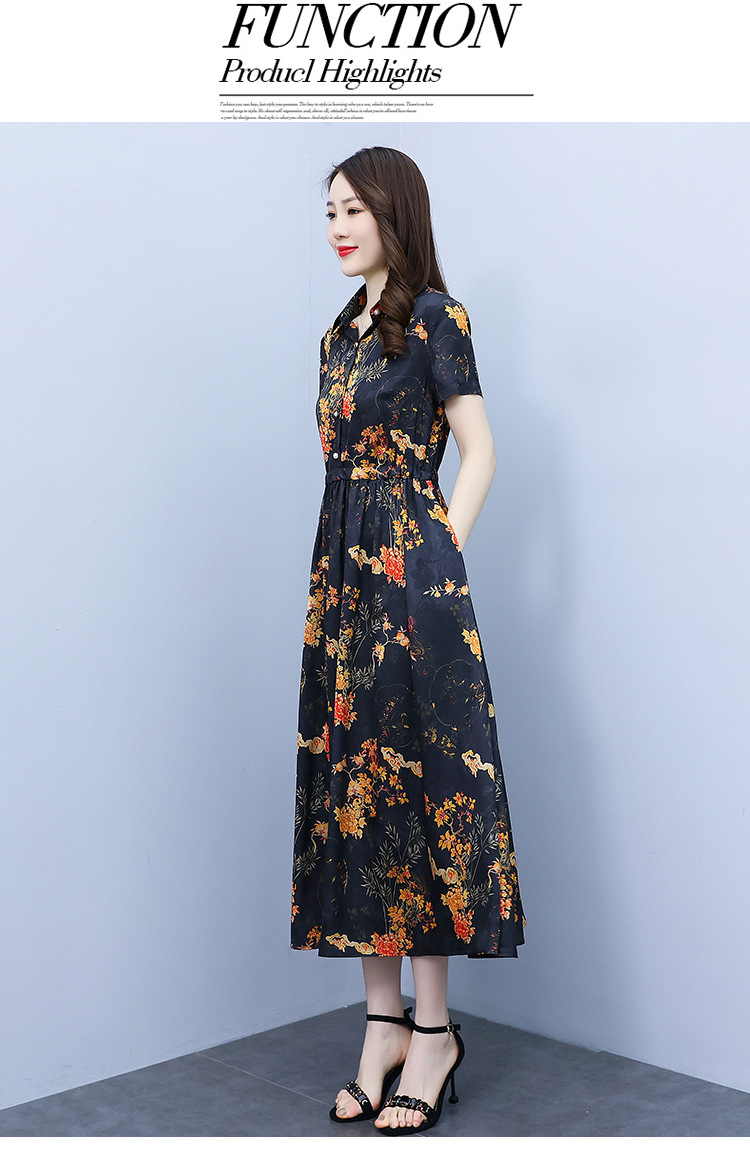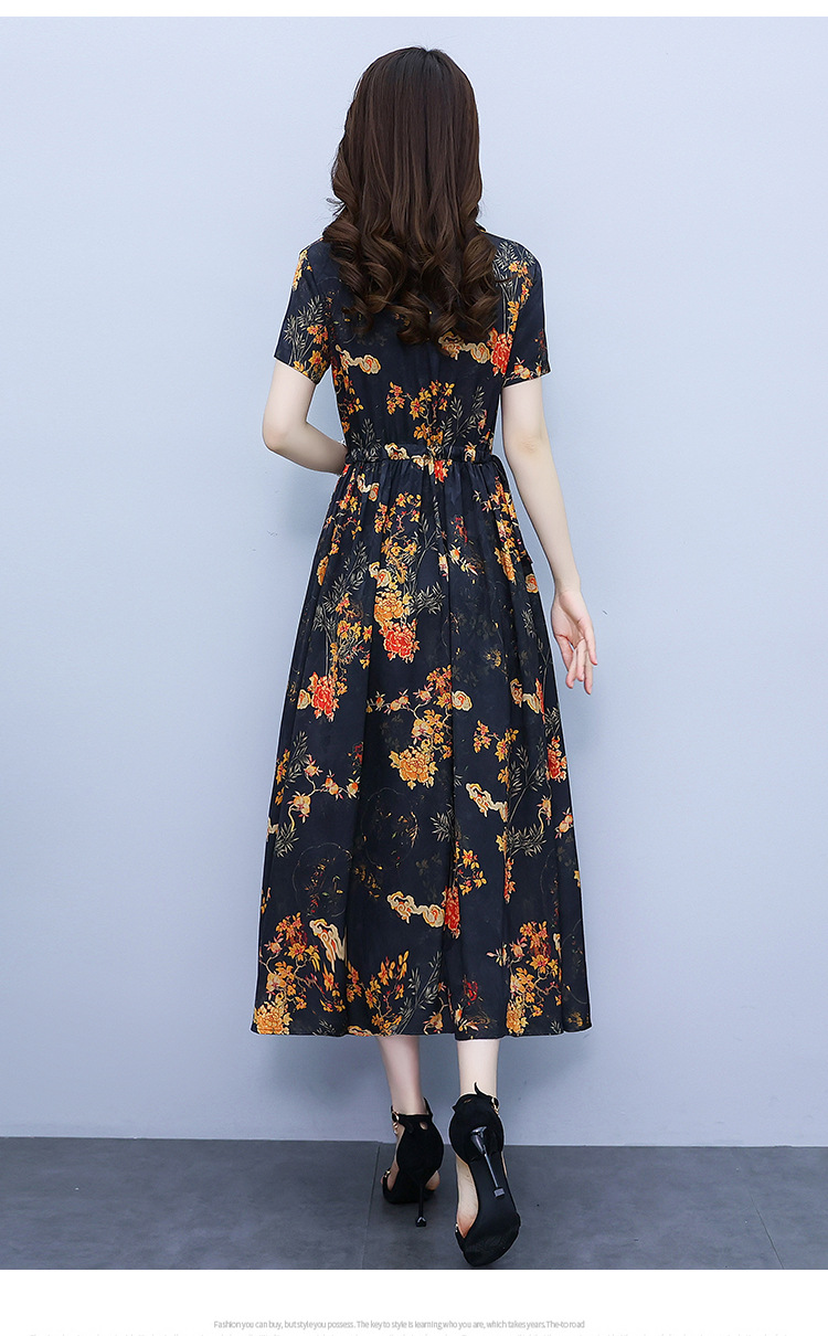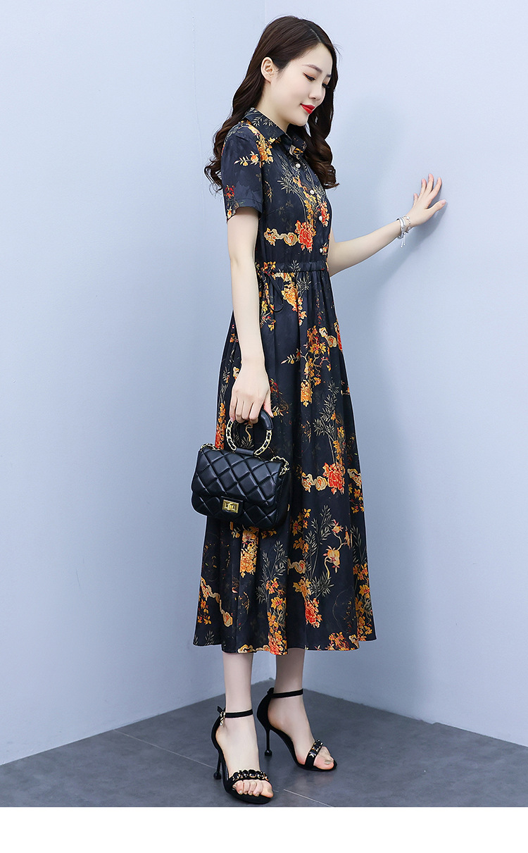2023新款夏季收腰修身妈妈款连衣裙大码中长款短袖气质碎花连衣裙