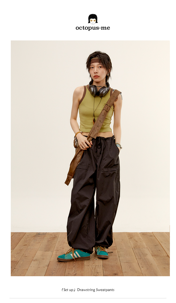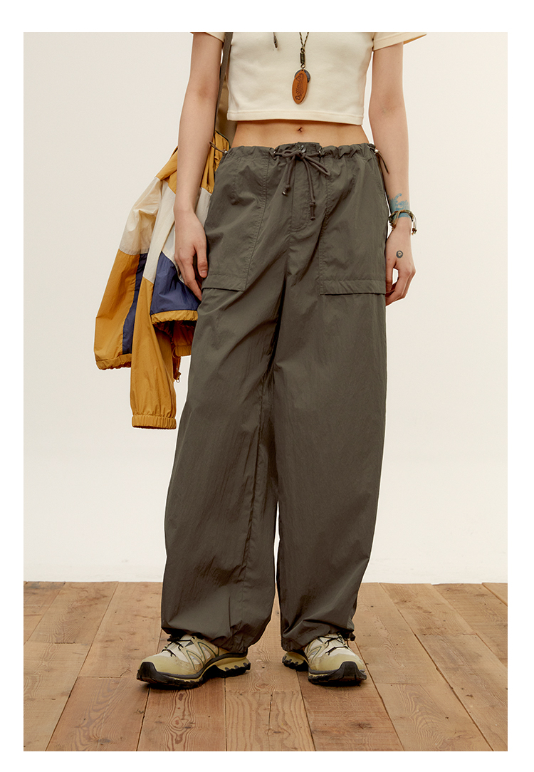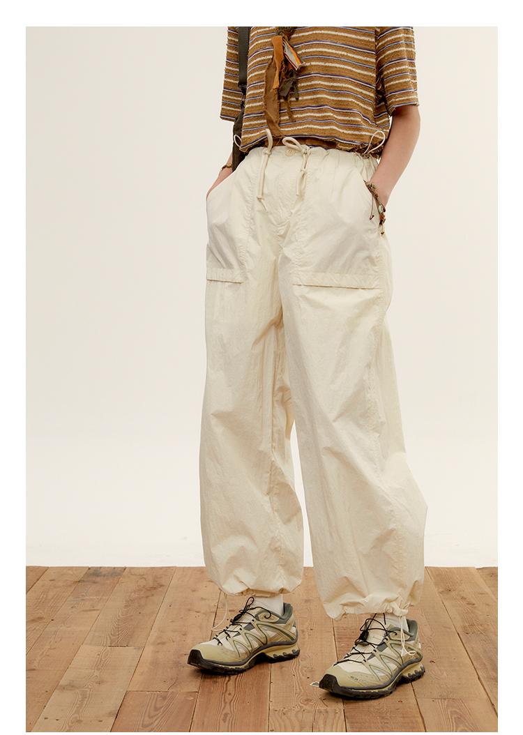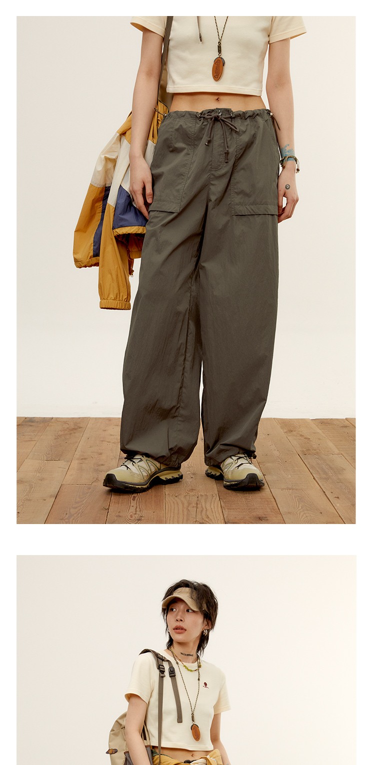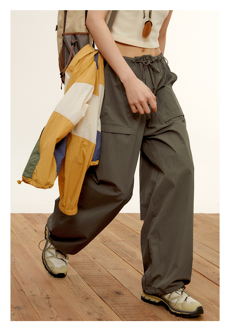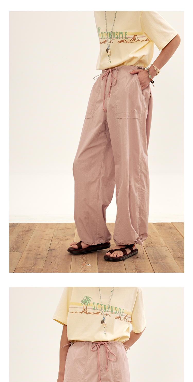octopusme章魚家戶外登山透氣降落傘工裝褲女小個子寬鬆紙袋褲