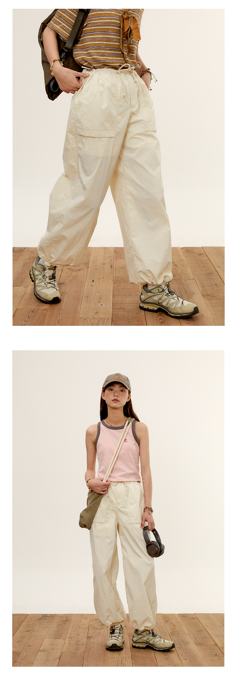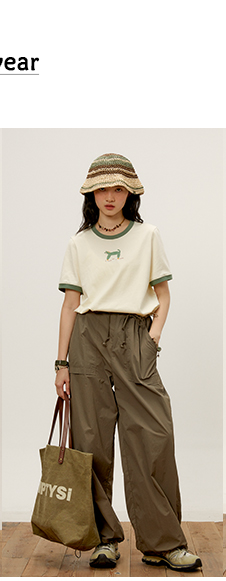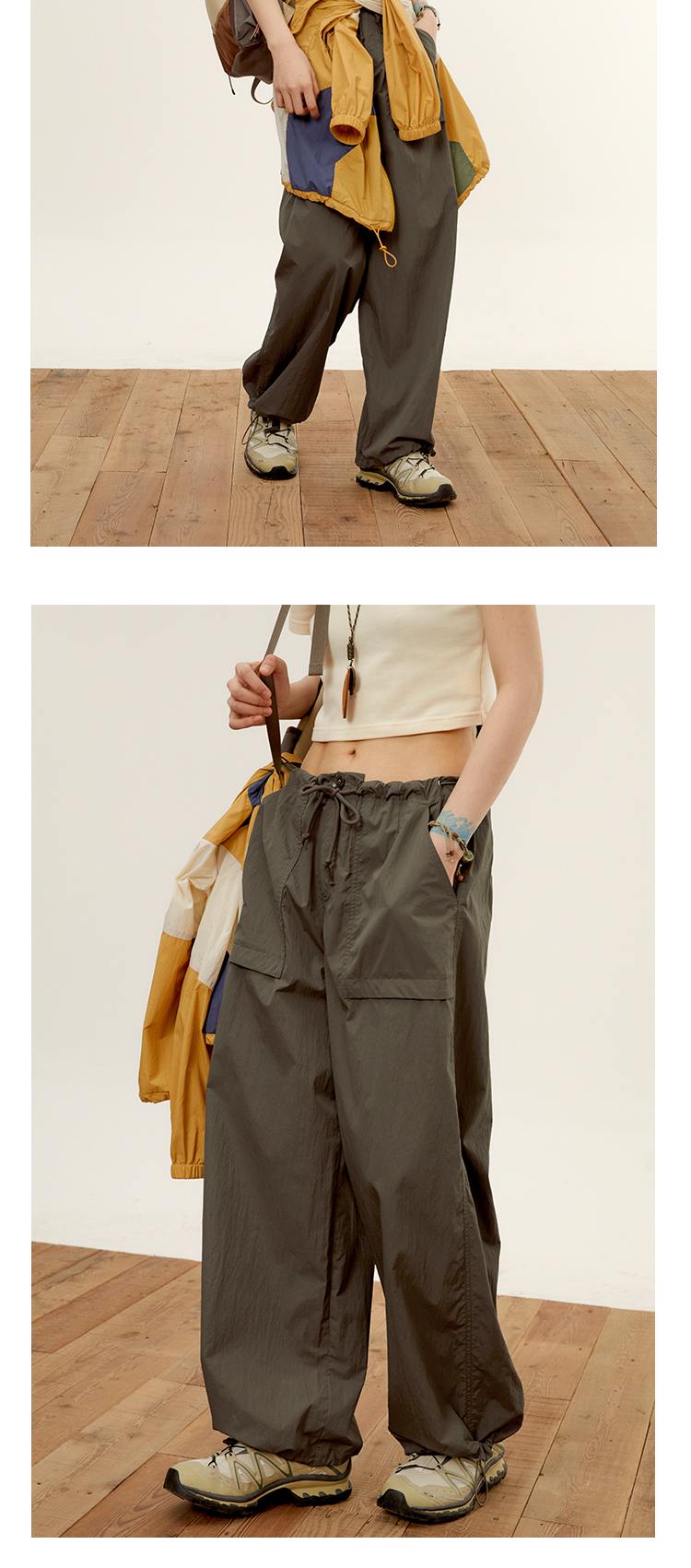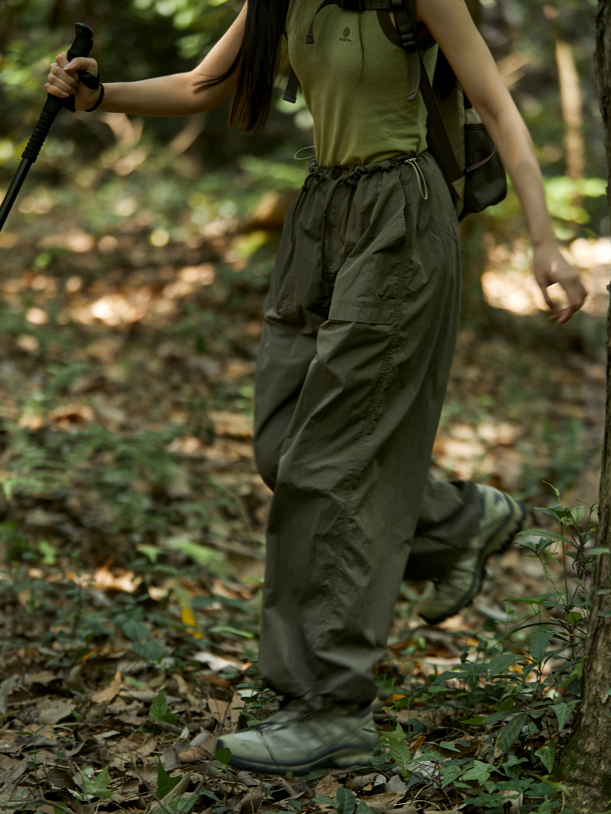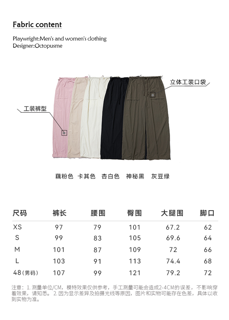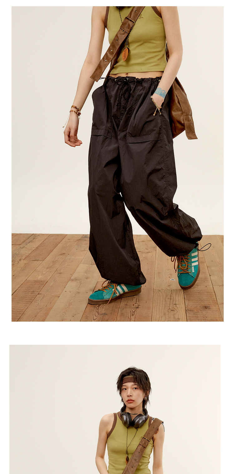 octopusme章魚家戶外登山透氣降落傘工裝褲女小個子寬鬆紙袋褲