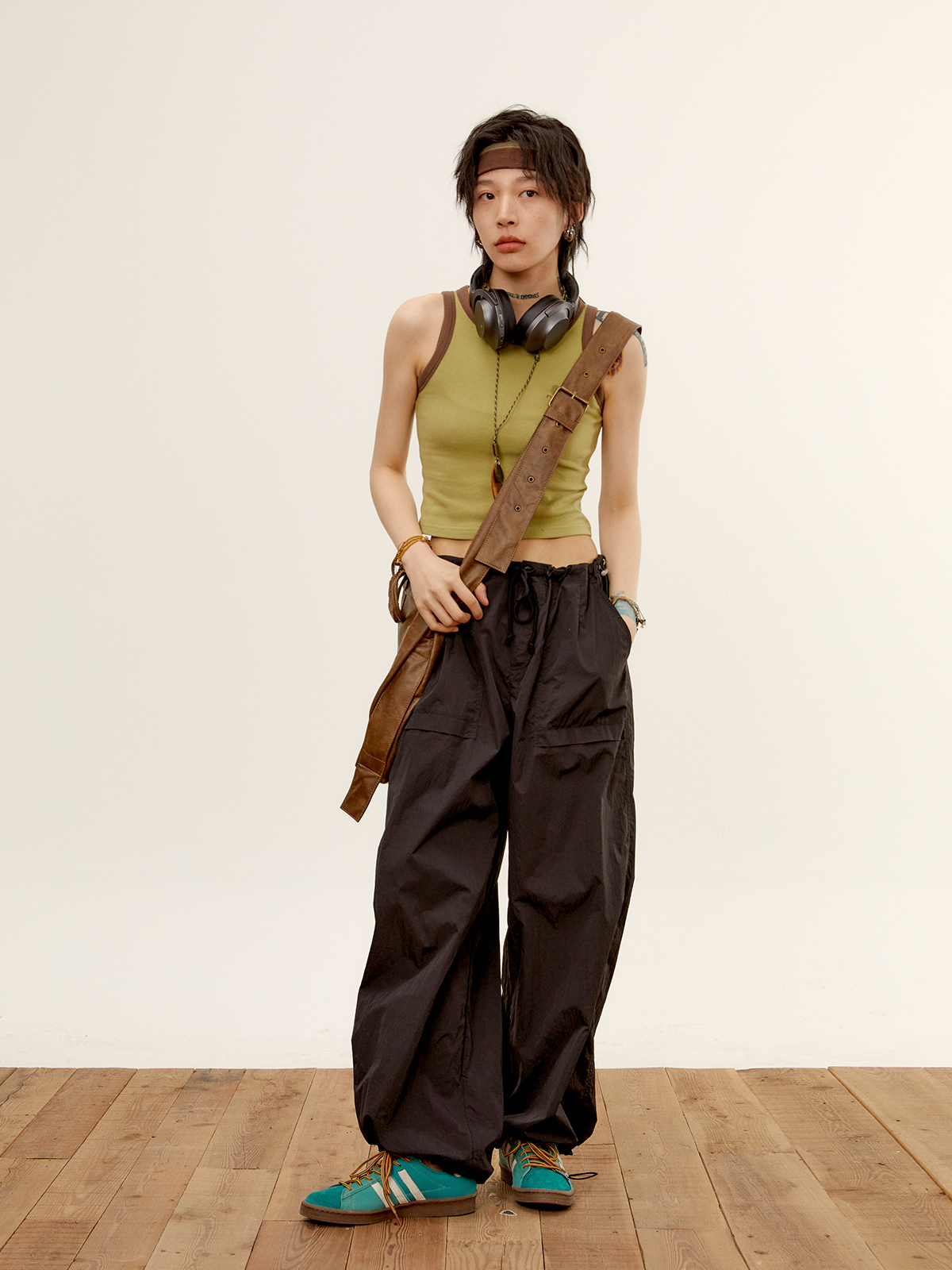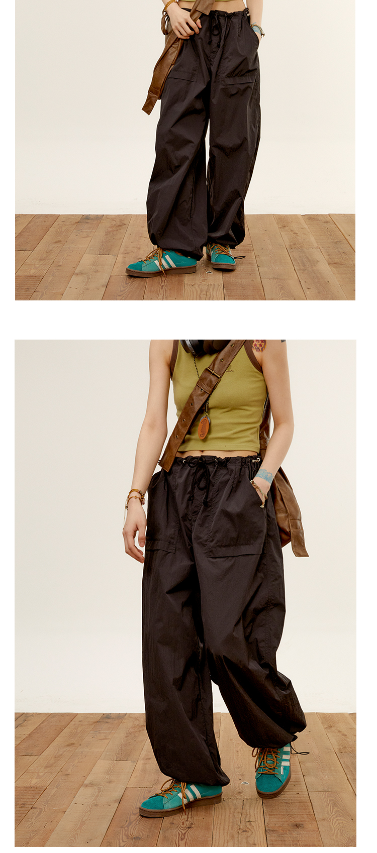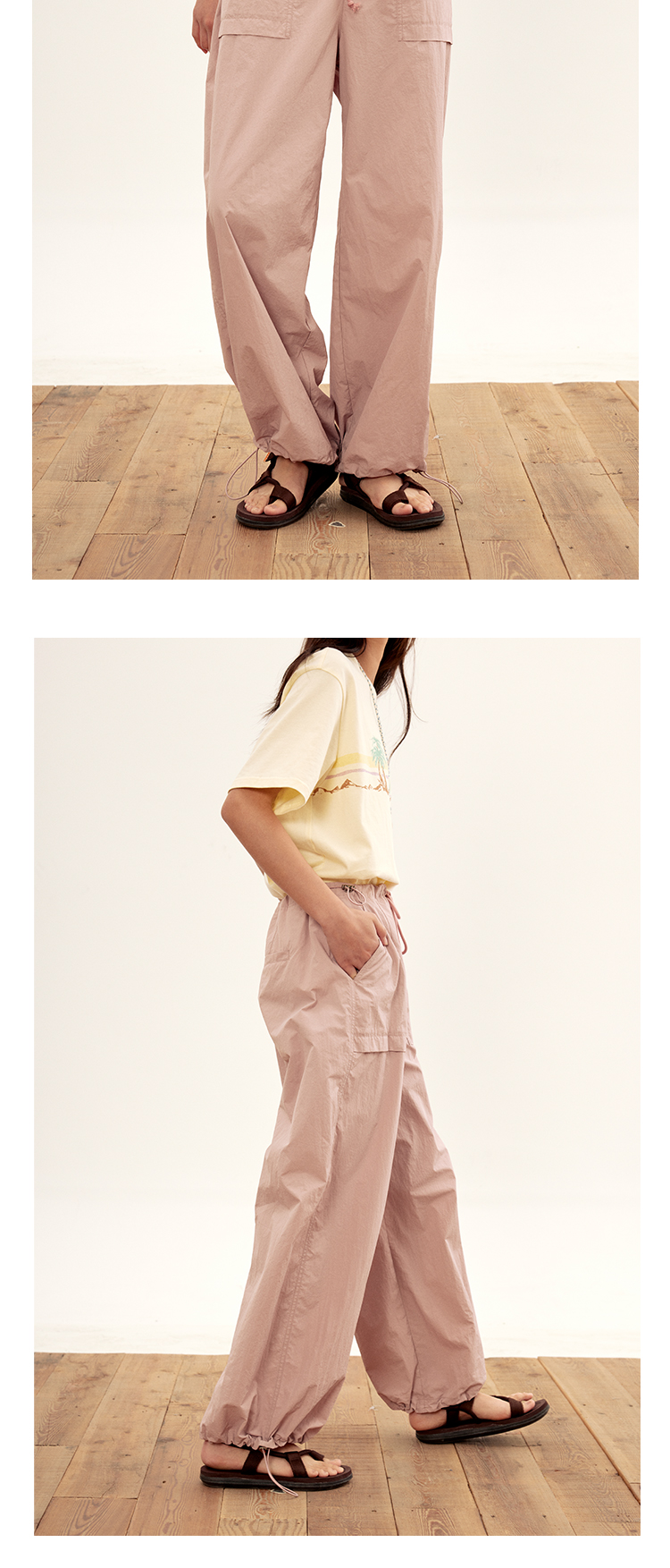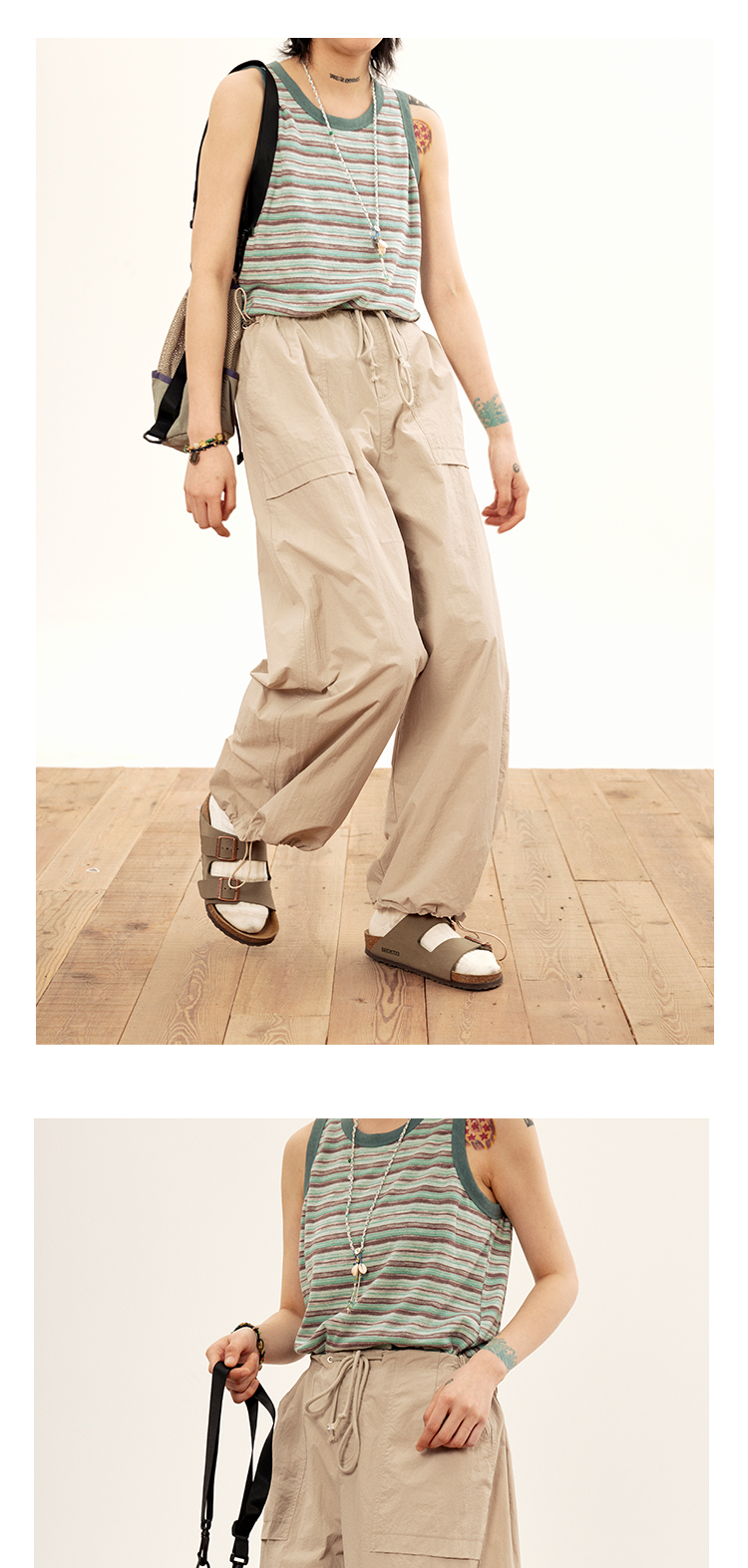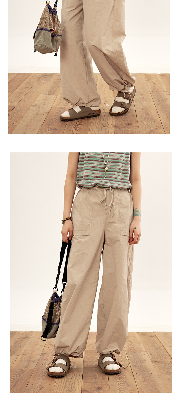 octopusme章魚家戶外登山透氣降落傘工裝褲女小個子寬鬆紙袋褲
