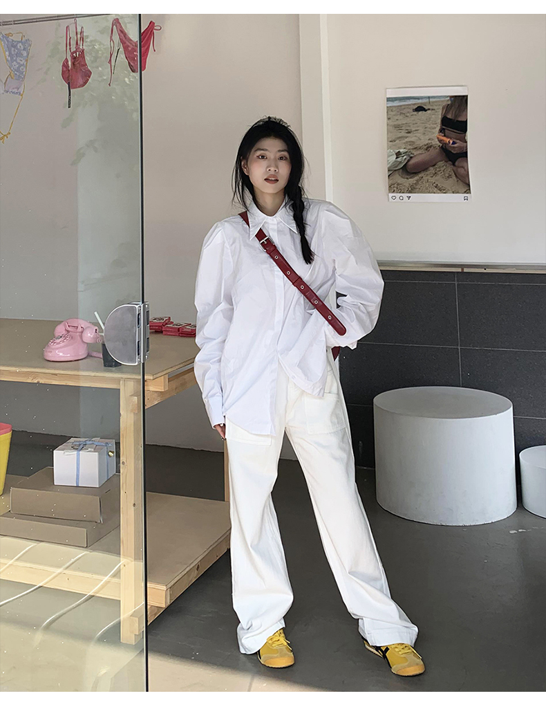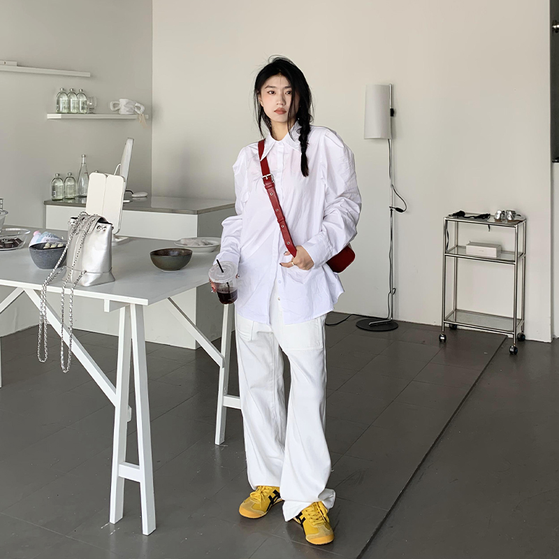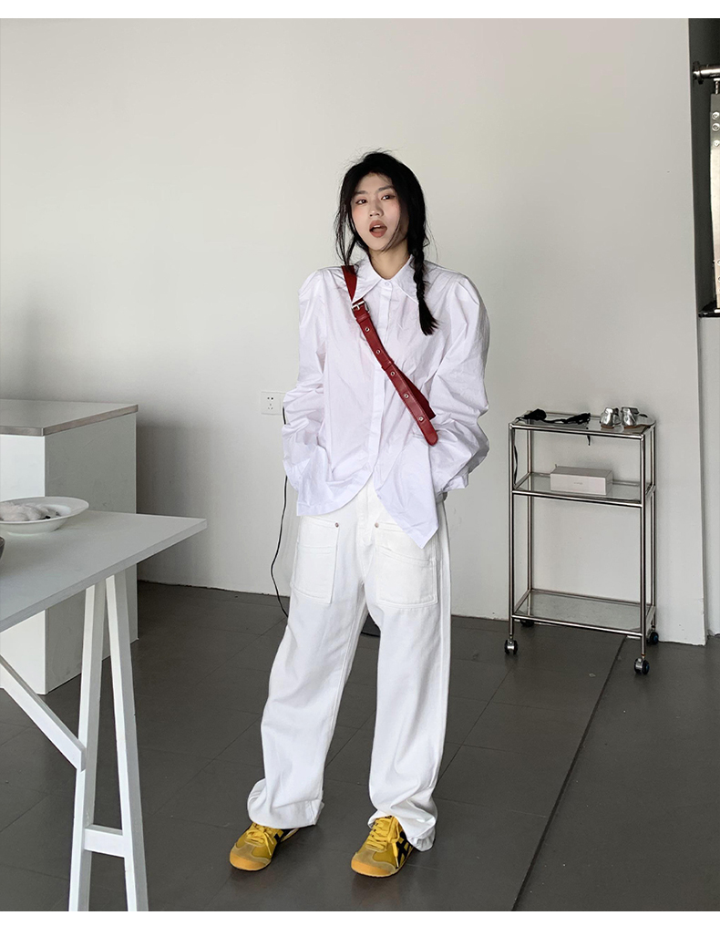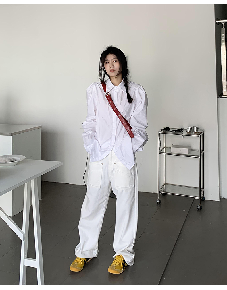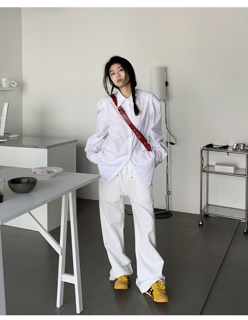 橘子樹在哪兒法式復古墊肩白色襯衫女夏季設計感宮廷風泡泡袖襯衫