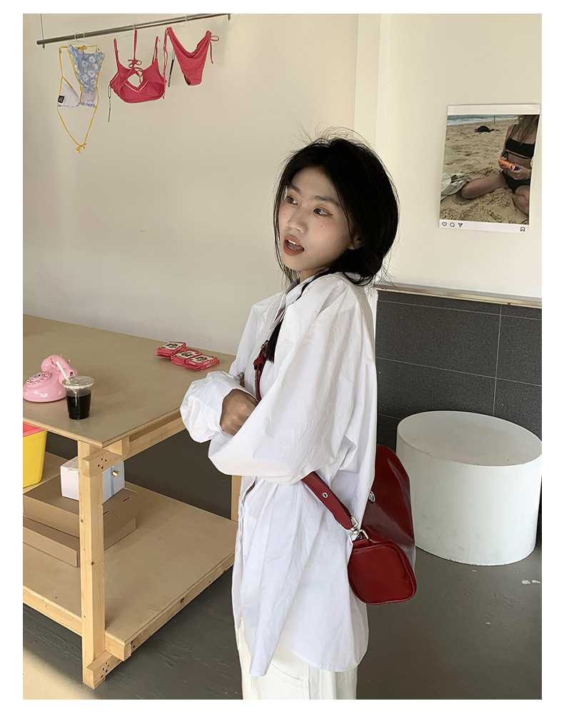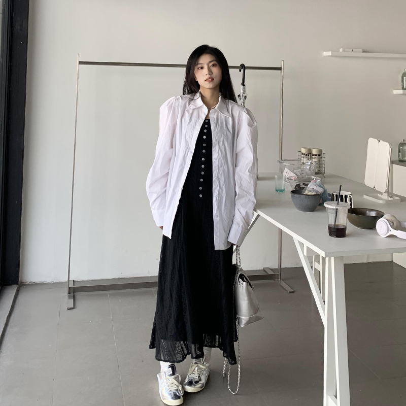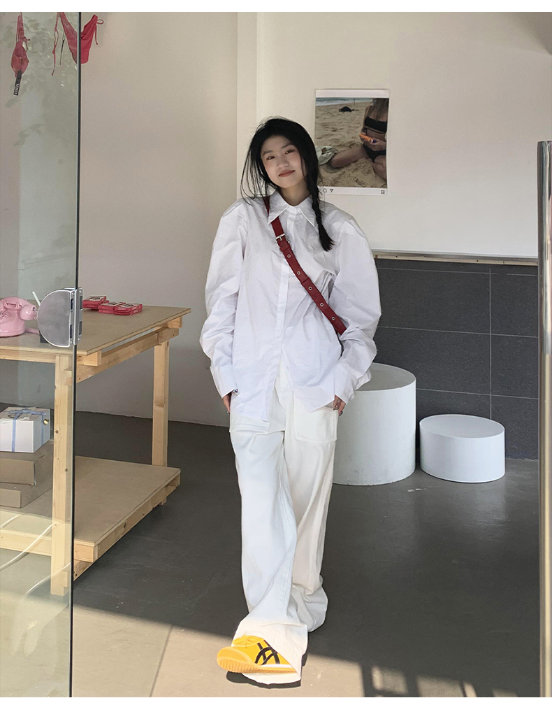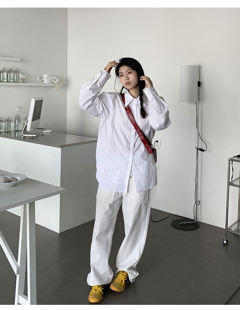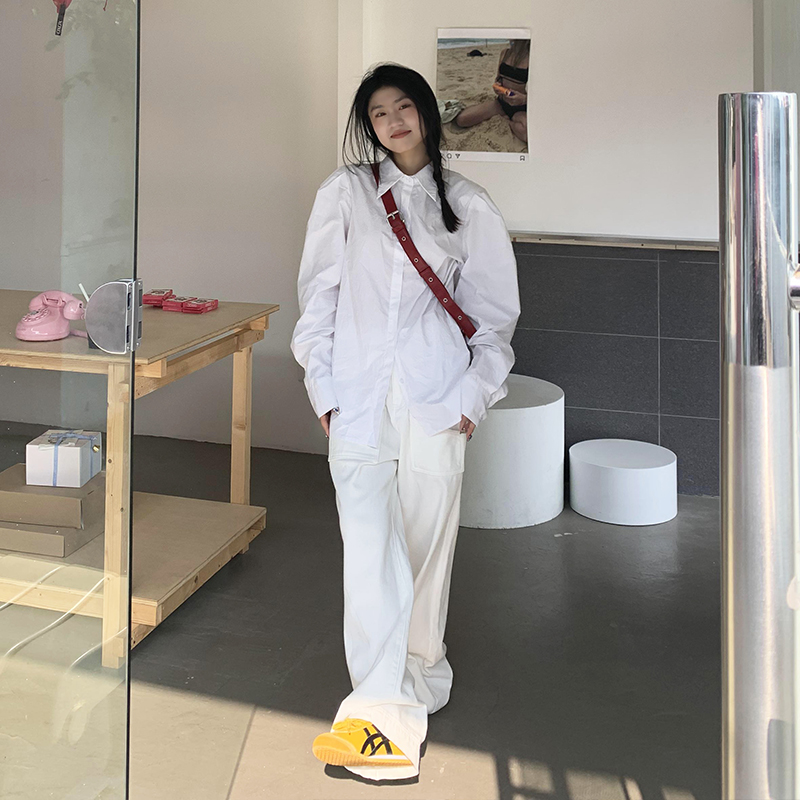 橘子樹在哪兒法式復古墊肩白色襯衫女夏季設計感宮廷風泡泡袖襯衫