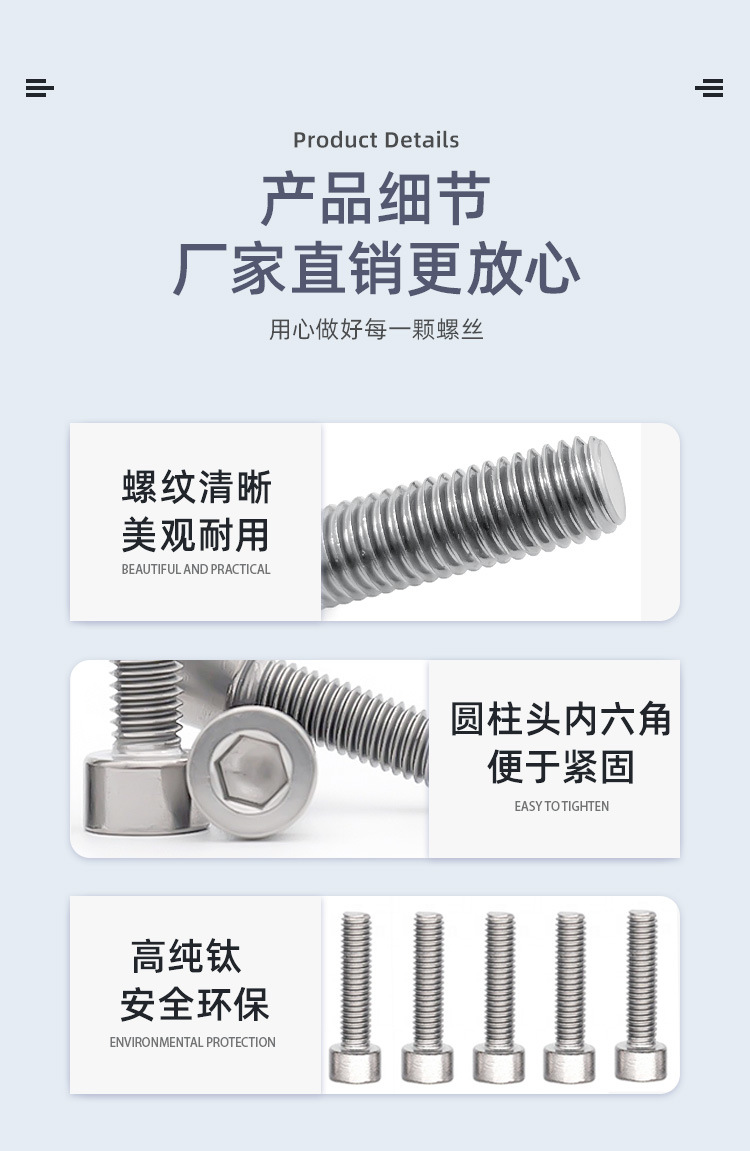 钛合金TA2内六角螺丝纯钛螺栓杯头螺钉圆柱头M1.6M3M4M5M8M10M16