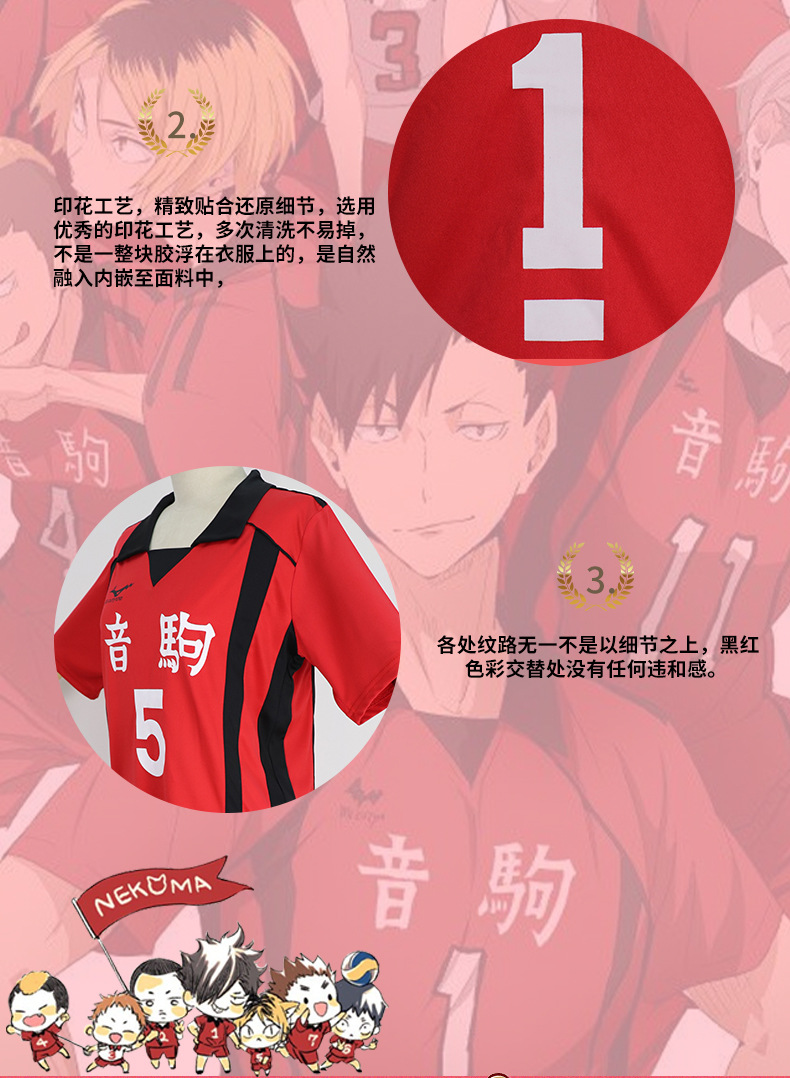 动漫排球少年音驹高中黑尾铁朗孤爪研磨cosplay服排球短袖T恤球衣