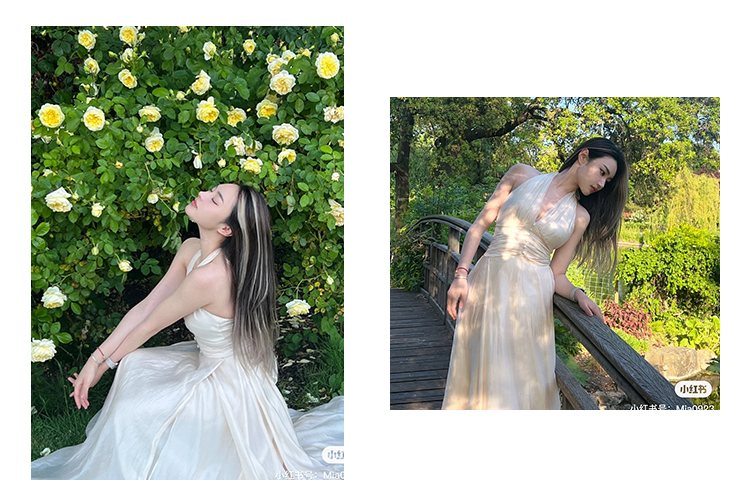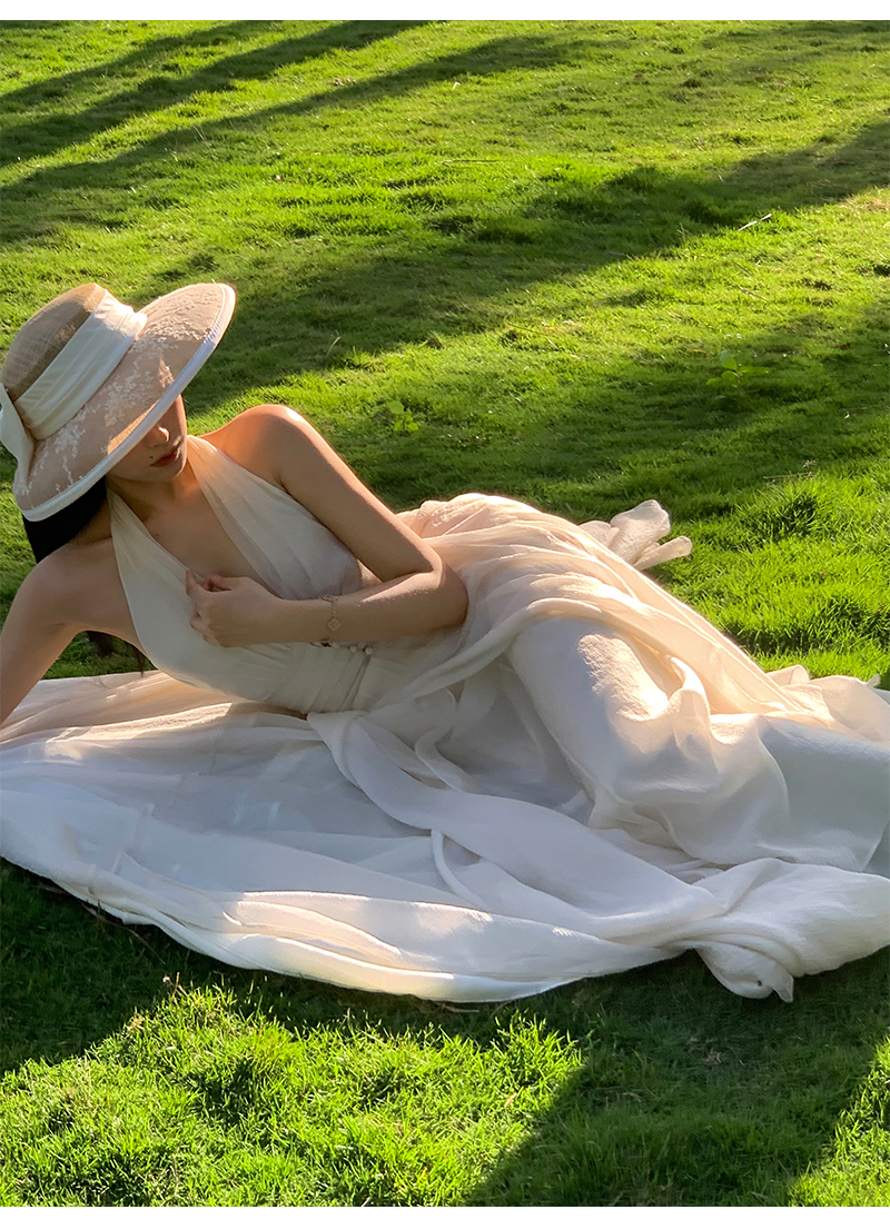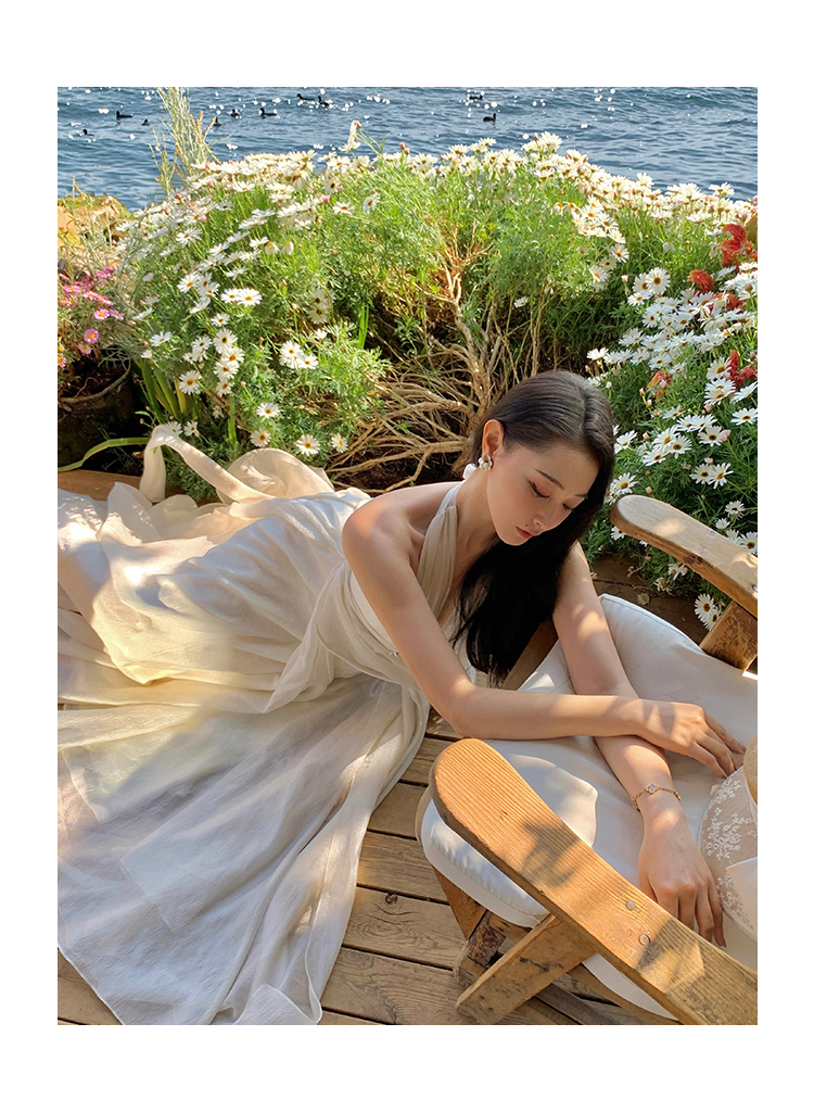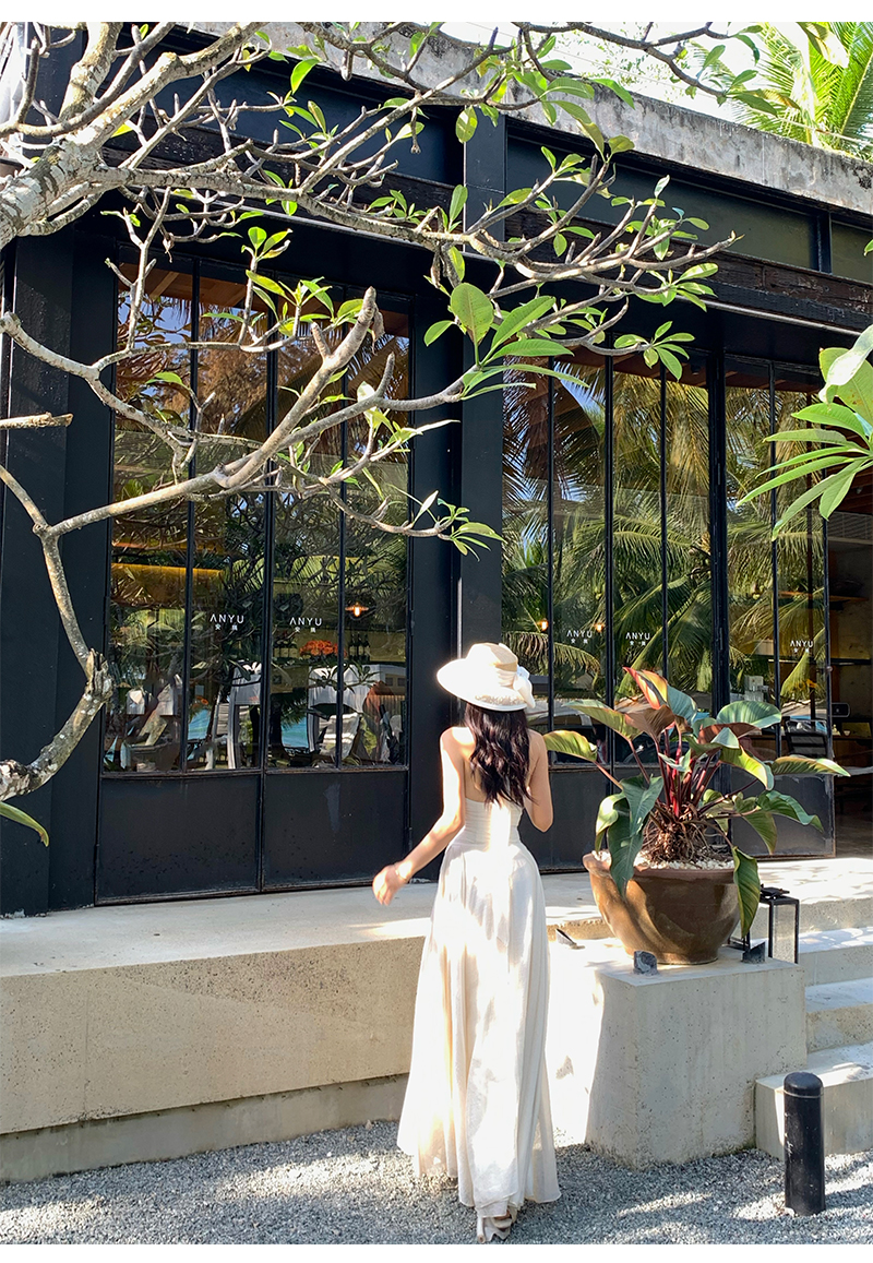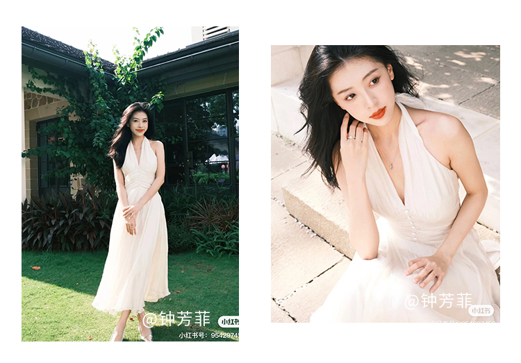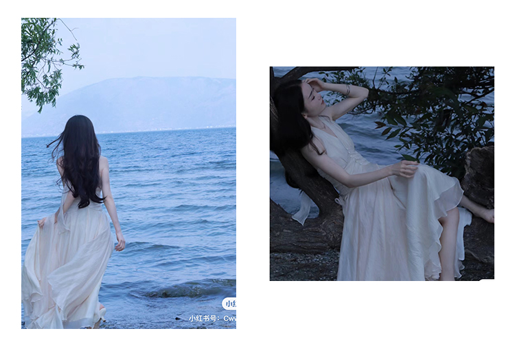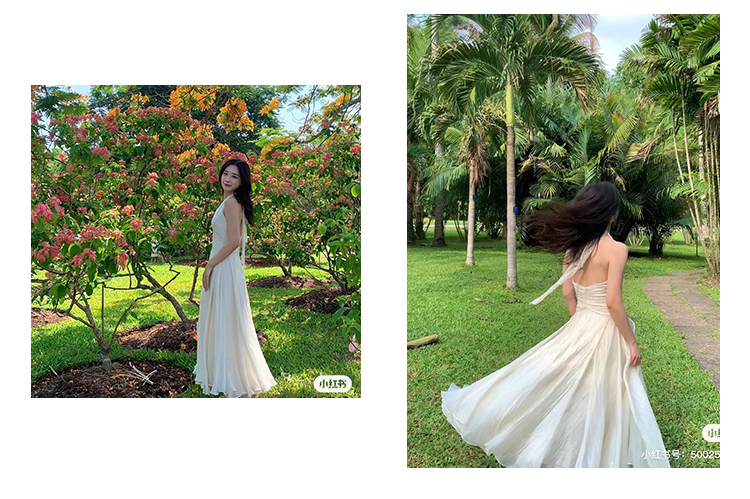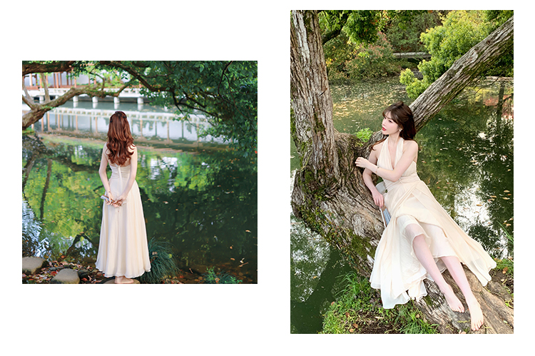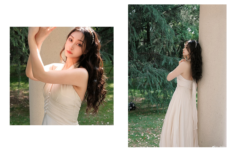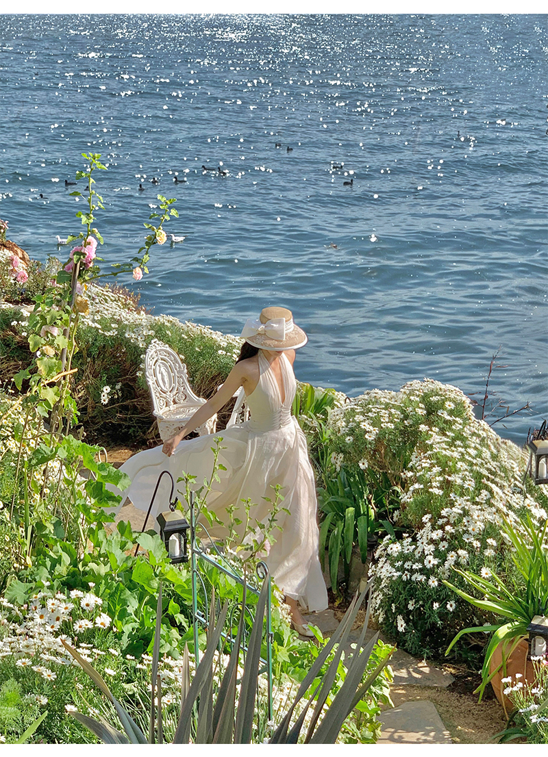 小麗XIAOLI美神降臨無袖V領掛頸洋裝夏溫柔氣質收腰顯瘦長裙子