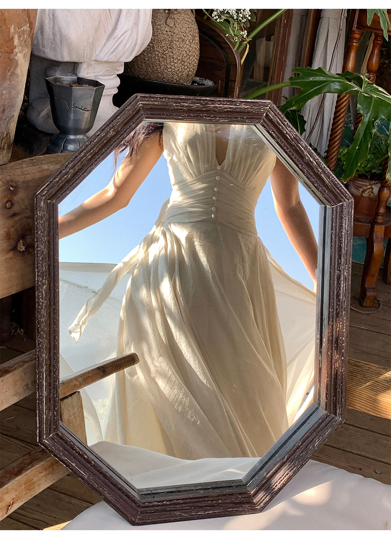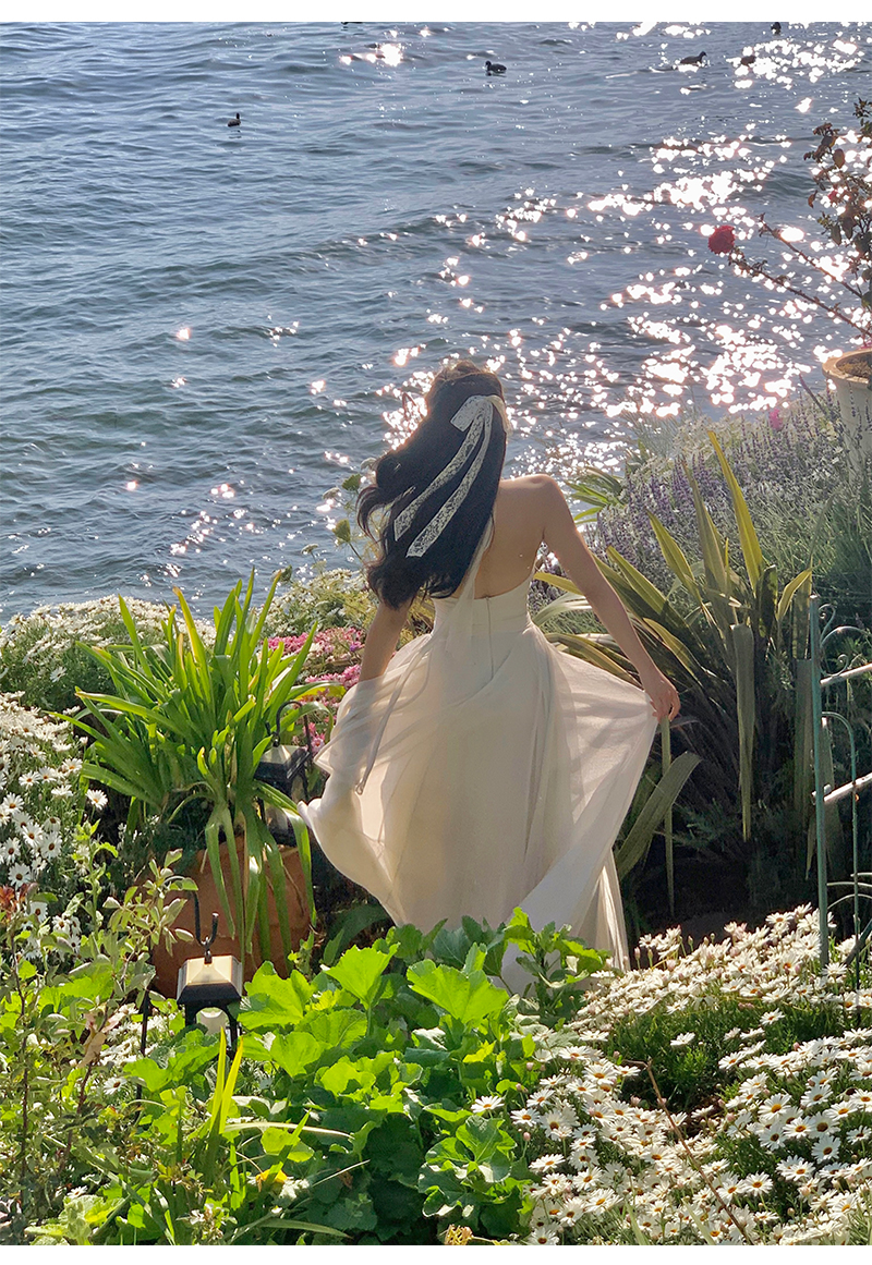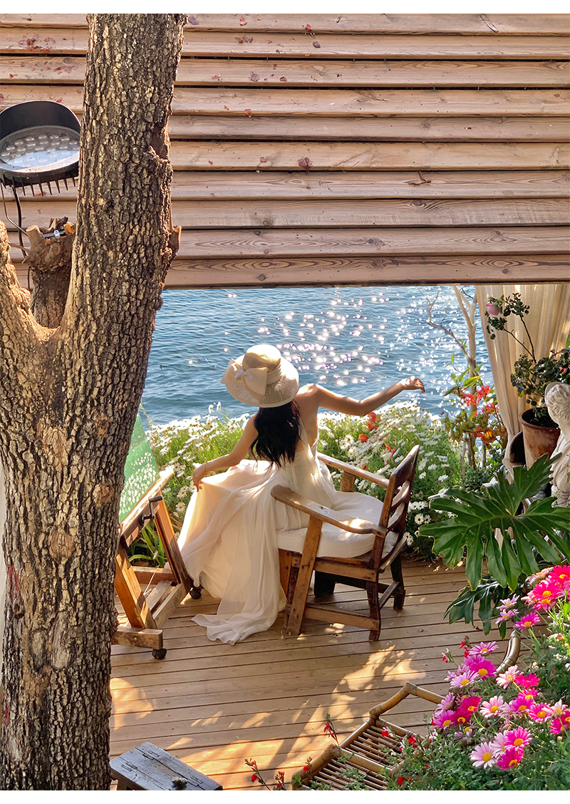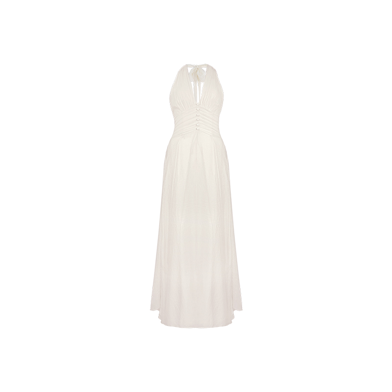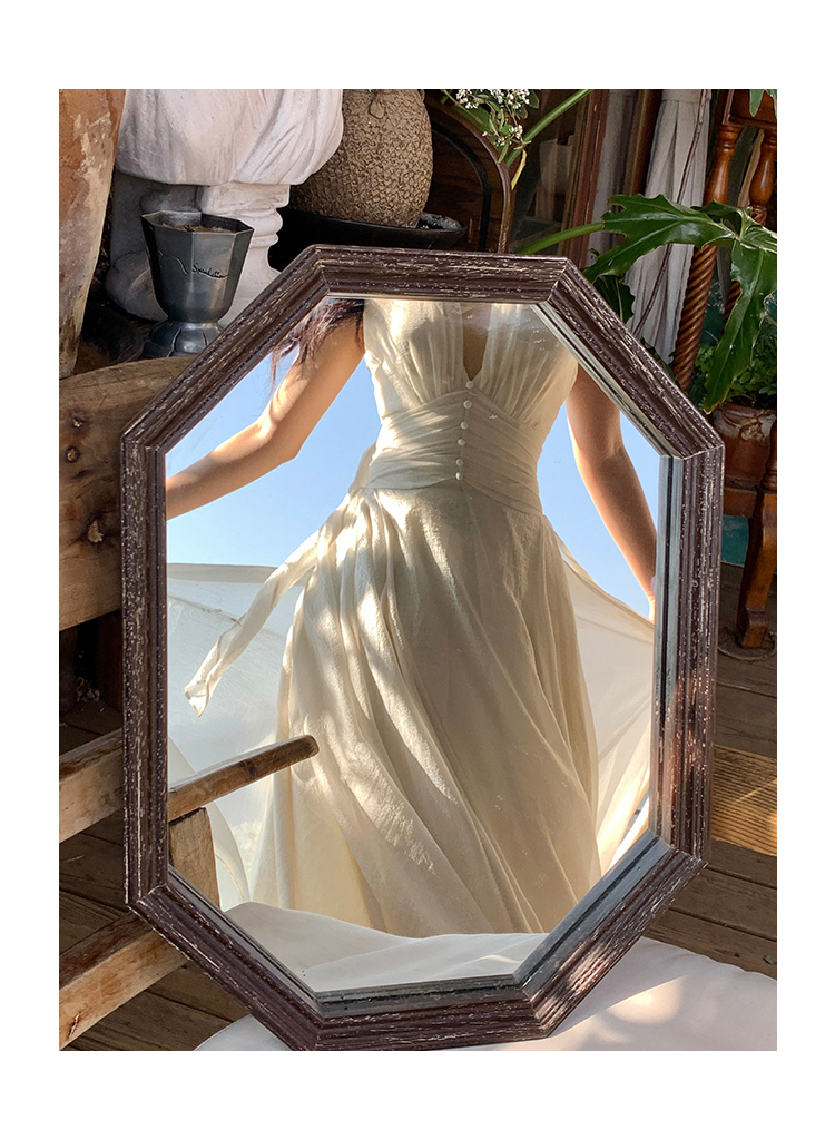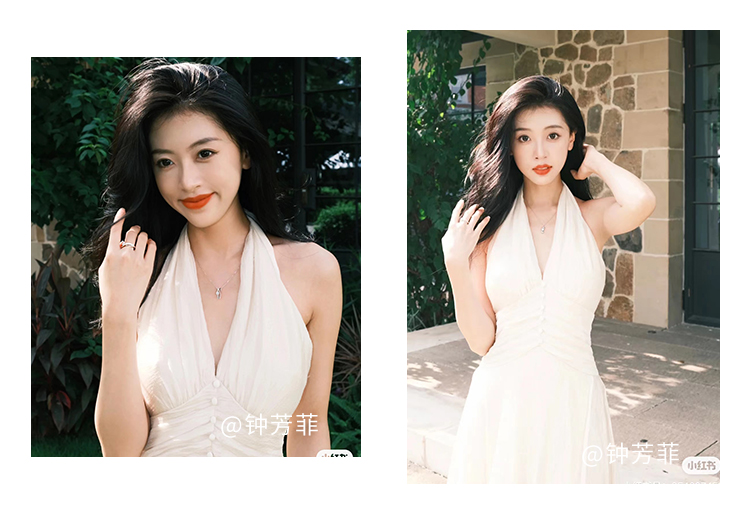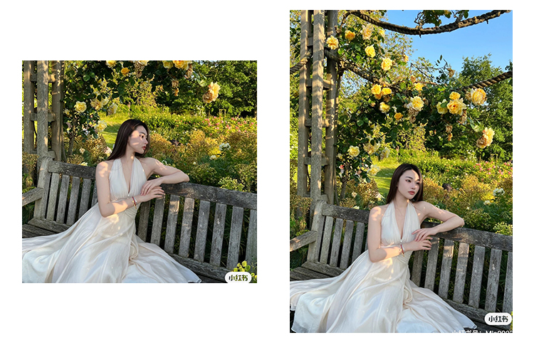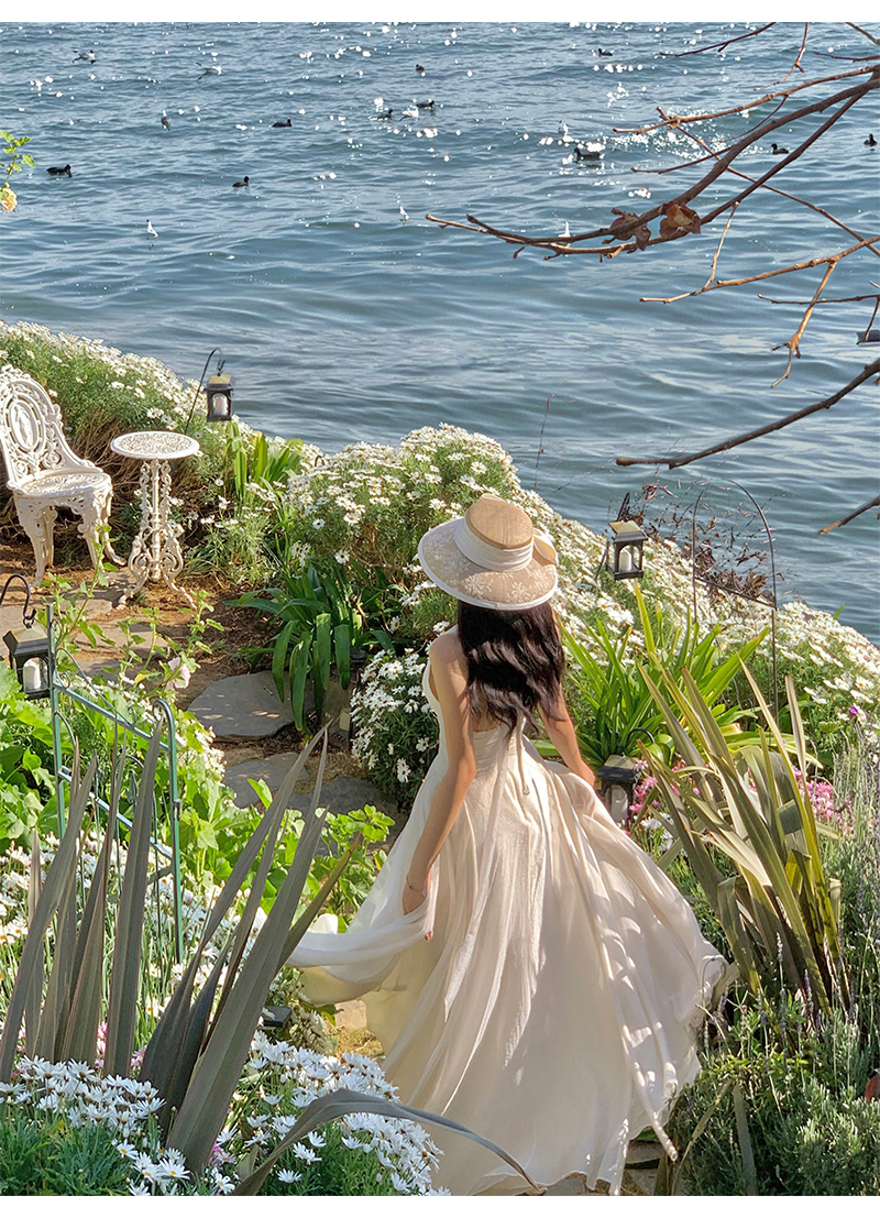 小麗XIAOLI美神降臨無袖V領掛頸洋裝夏溫柔氣質收腰顯瘦長裙子