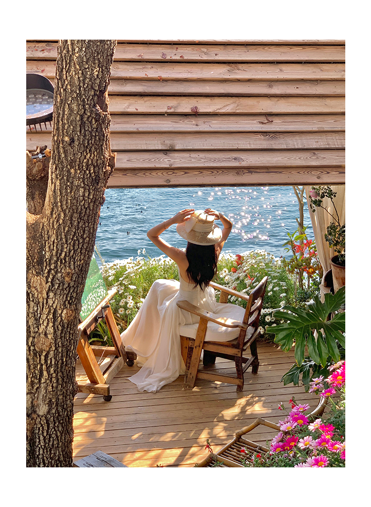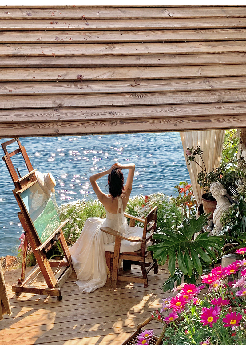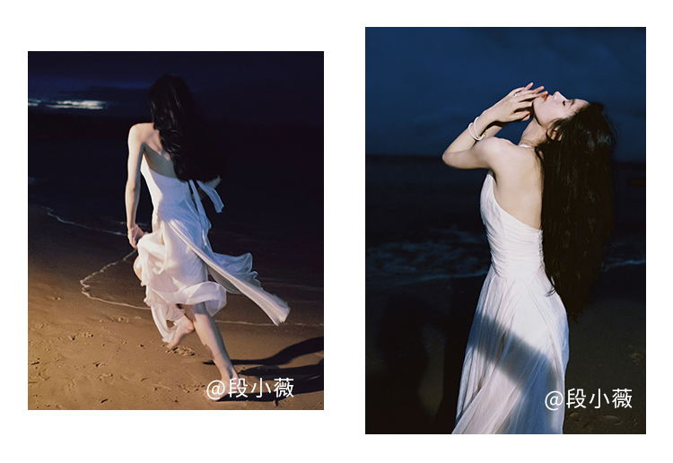 大片宽松的裙摆ji具飘逸感,下摆至脚踝