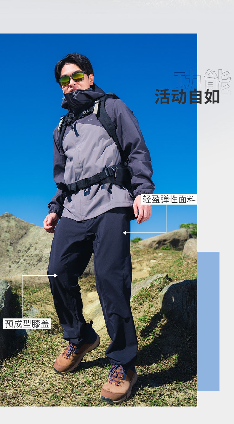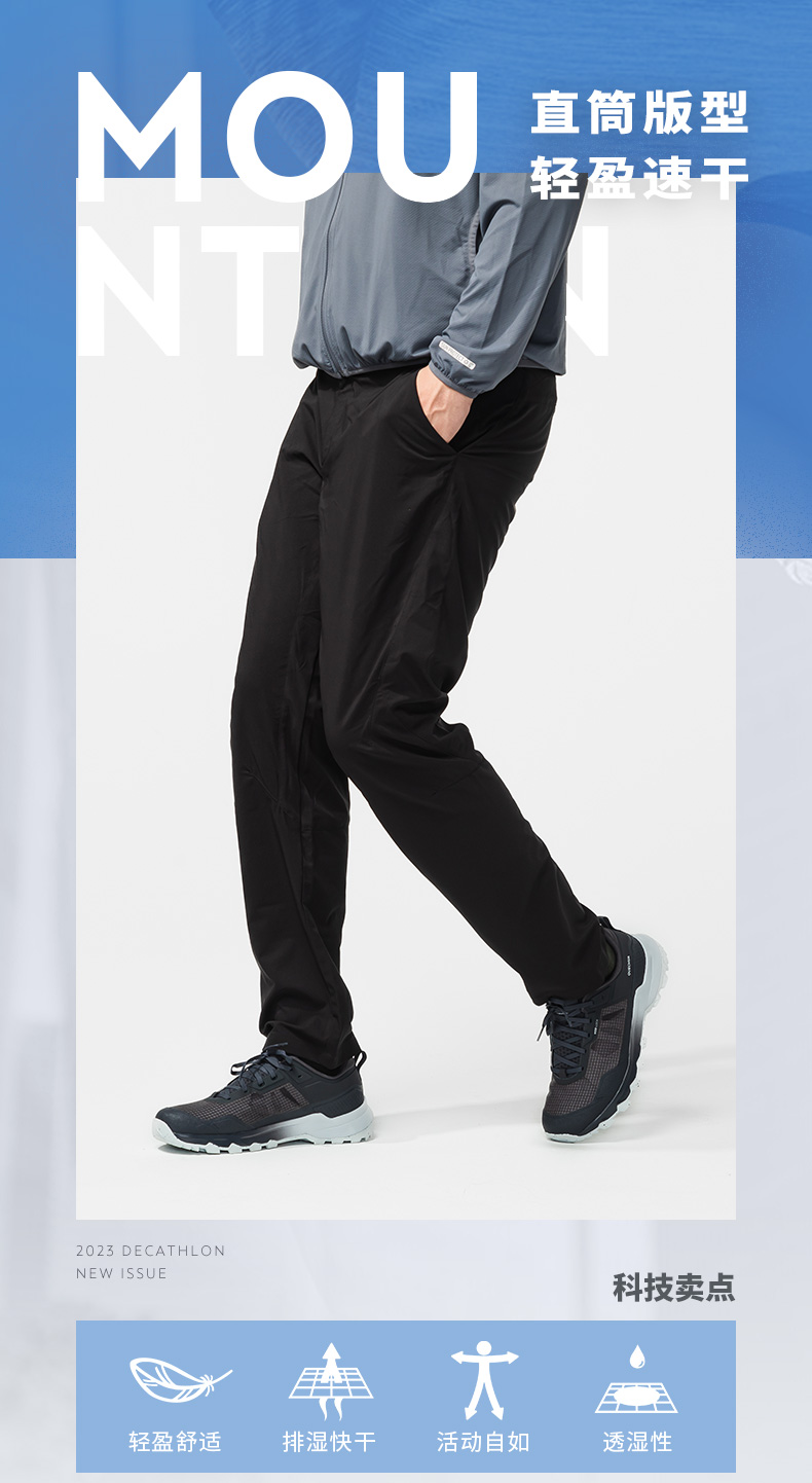 迪卡儂旗艦店休閒運動徒步登山褲男速乾透氣薄跑步長褲ODT1