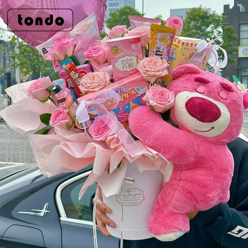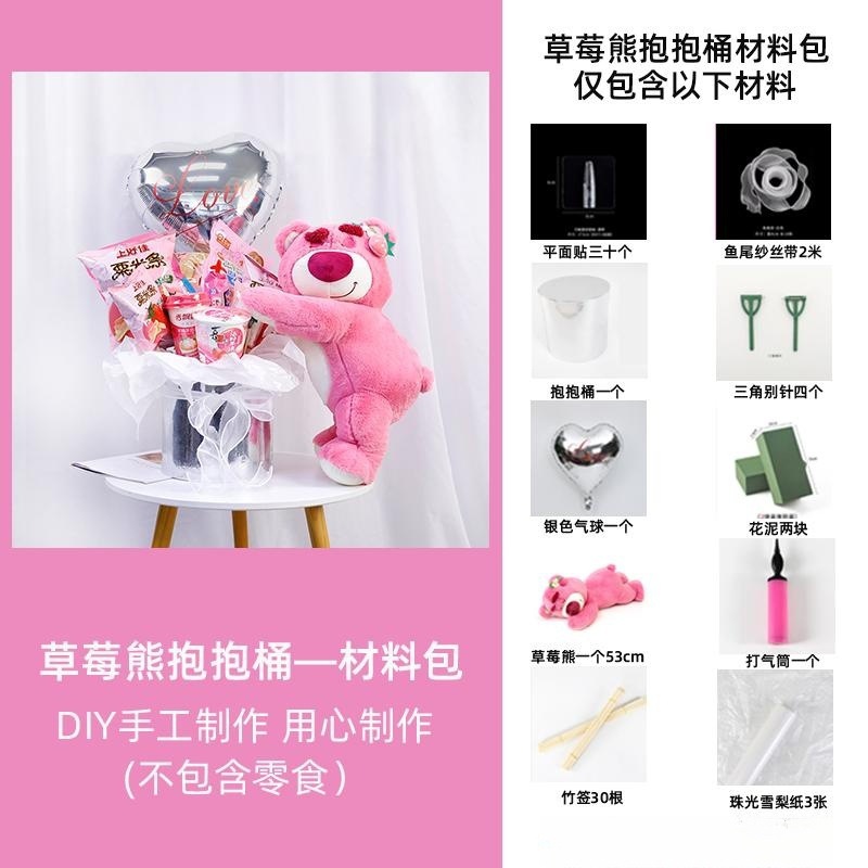七夕情人节网红套三草莓熊抱抱桶零食花束鲜花包装盒DIY包装资材