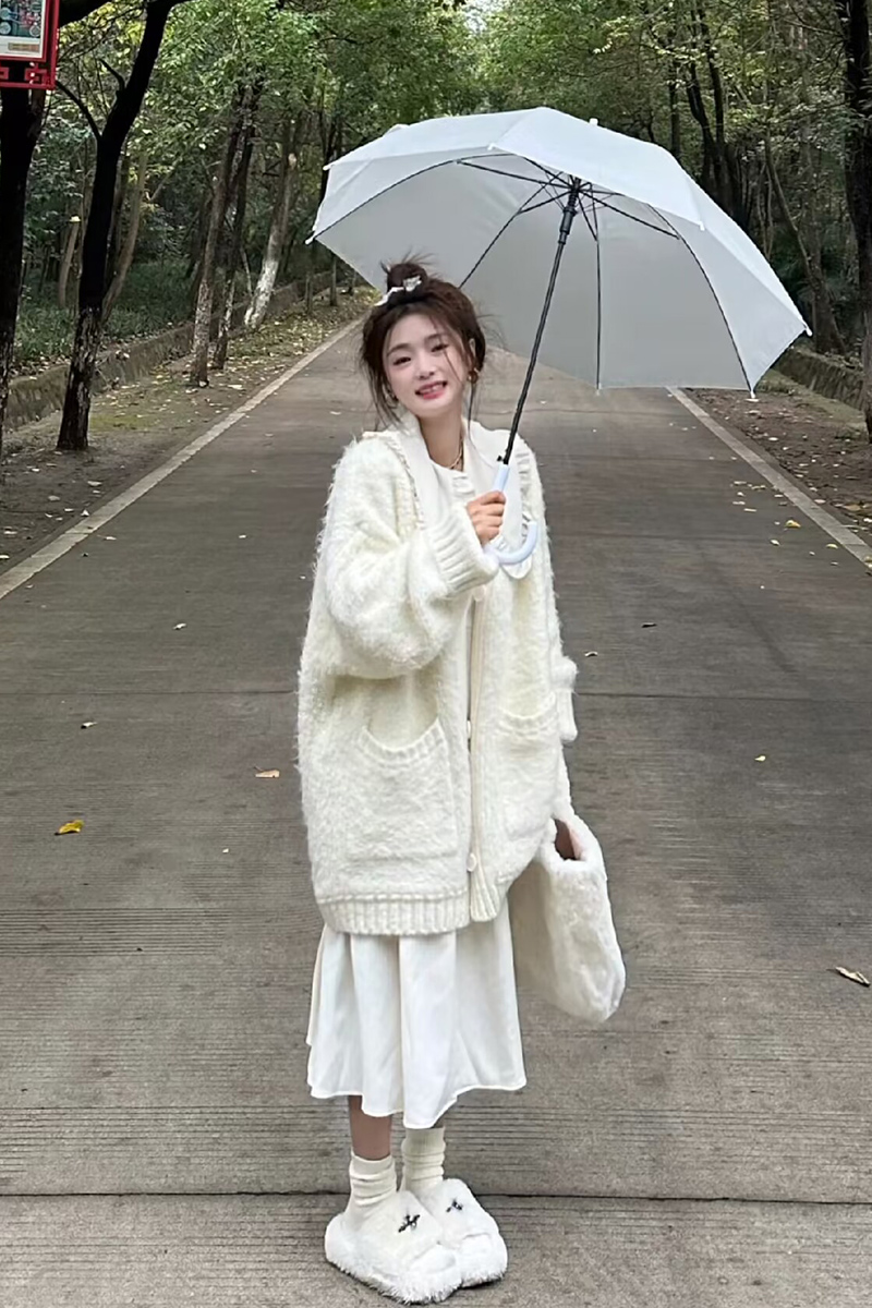 小個子日系慵懶復古奶fufu軟糯溫柔加厚寬鬆開衫毛衣外套女秋冬季
