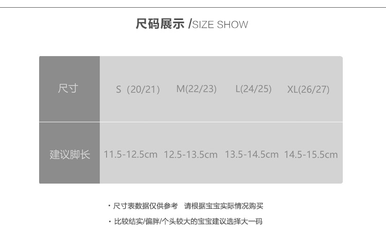 童袜尺码 20-21【12.5cm】,22-23【13.5cm】,24-25【14.5cm】,26-27【15.5cm】