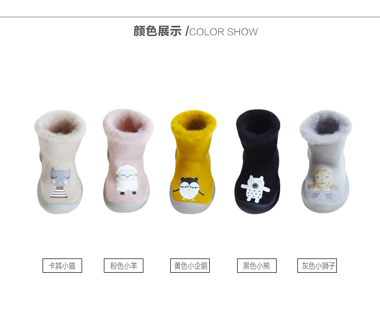 20儿童地板鞋袜防滑软底室内外防水秋冬季加绒加厚卡通婴儿学步袜