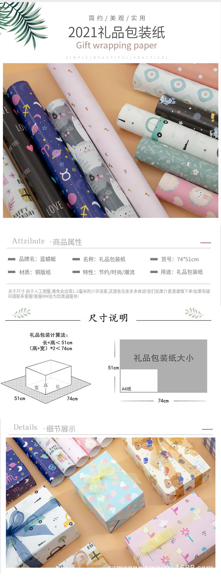 创意新款生日七夕情人节日可爱卡通礼品礼物礼盒包装纸装饰纸