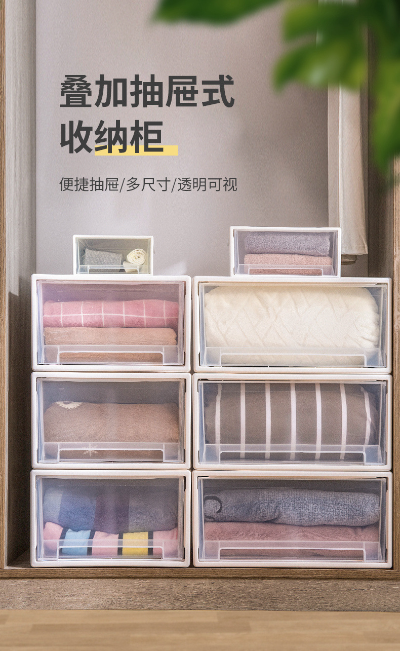 衣柜收纳盒加厚塑料抽屉收纳箱叠加收纳柜化妆品储物盒内衣整代发