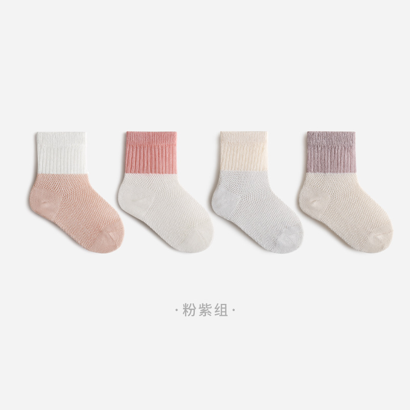 新生婴幼儿袜子夏季纯棉网眼薄款透气纯色男女童宝宝无骨中筒棉袜