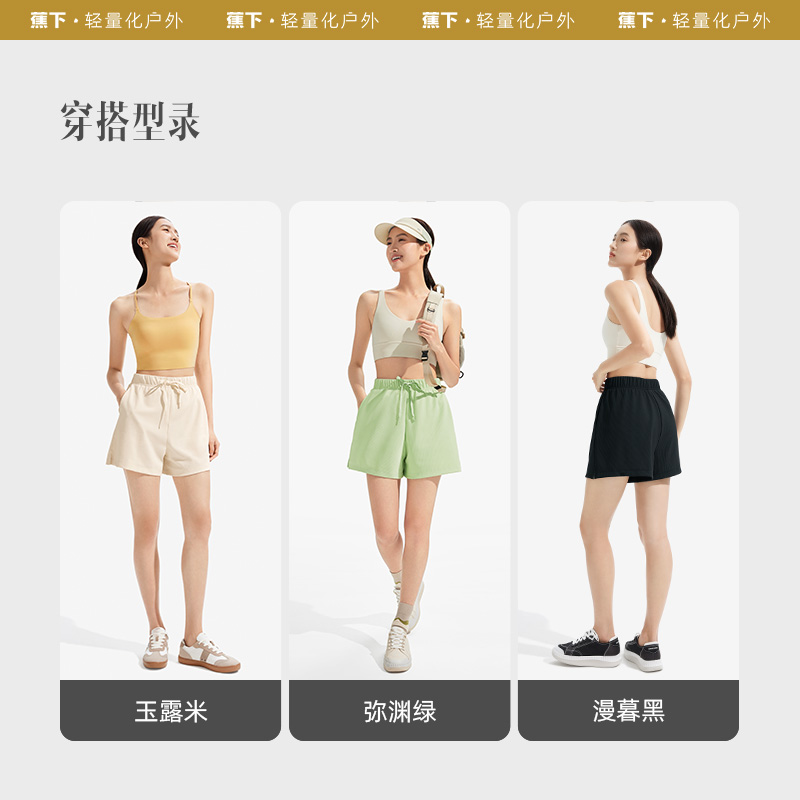 蕉下冰絲短褲女夏季舒適透氣休閒褲寬鬆抽繩顯瘦百搭運動速乾短褲