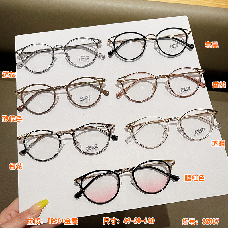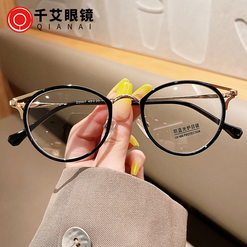 千艾新款防蓝光眼镜批发韩版个性学生近视眼镜架圆框复古平光镜