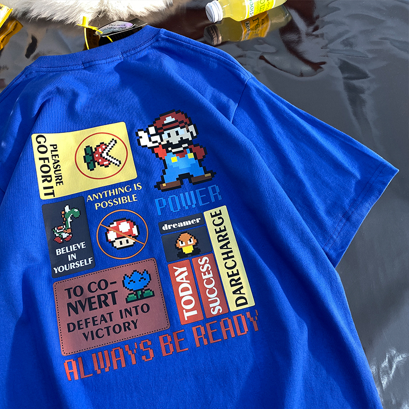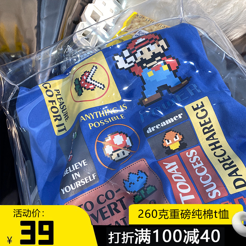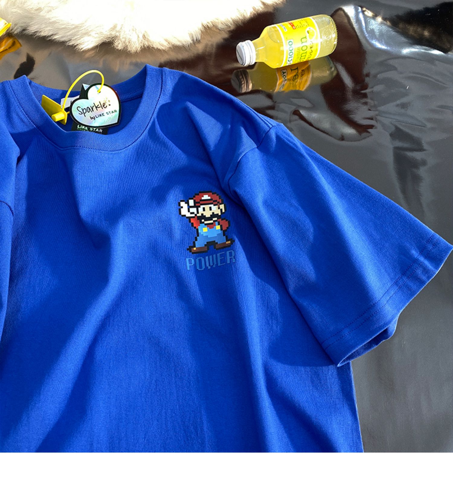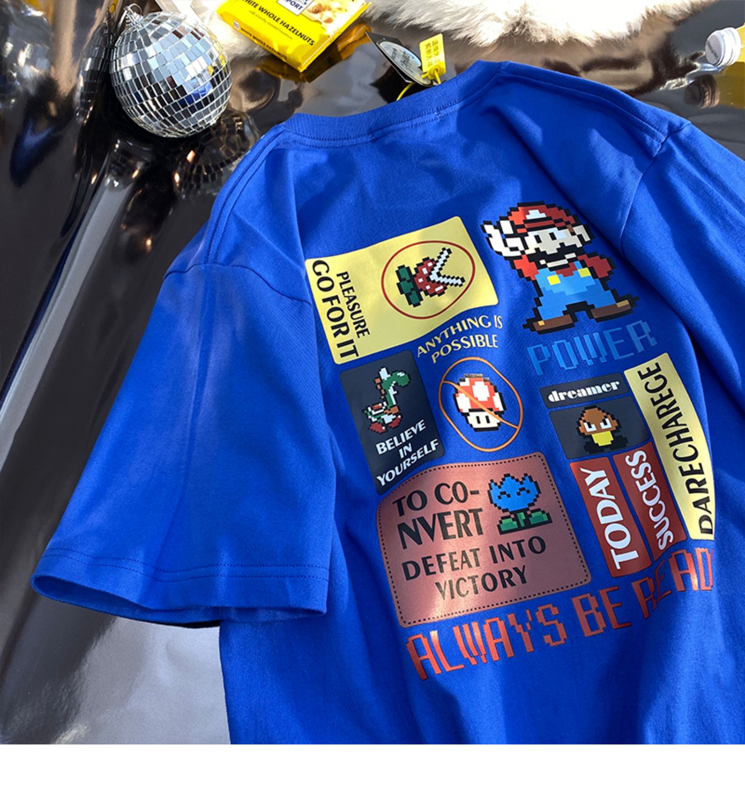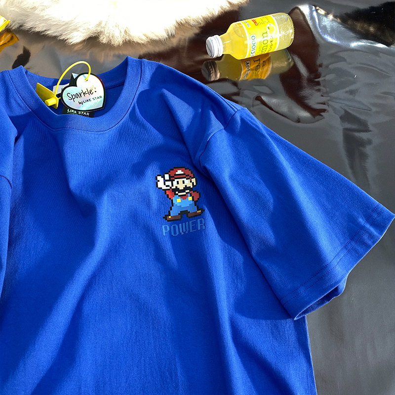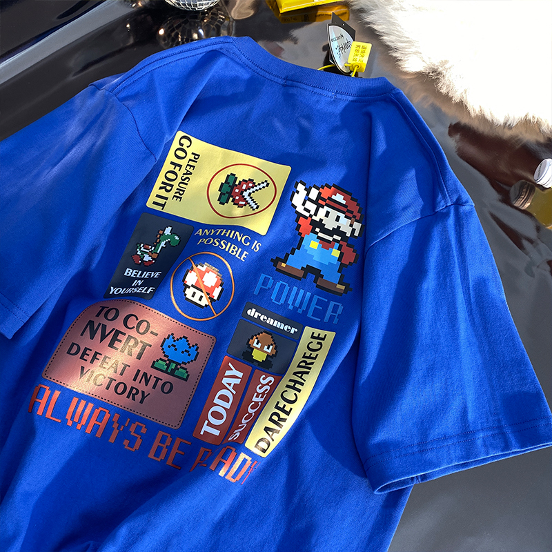 克萊因藍~後背款T恤~重磅純棉2023年新款卡通寬鬆短袖t恤女上衣