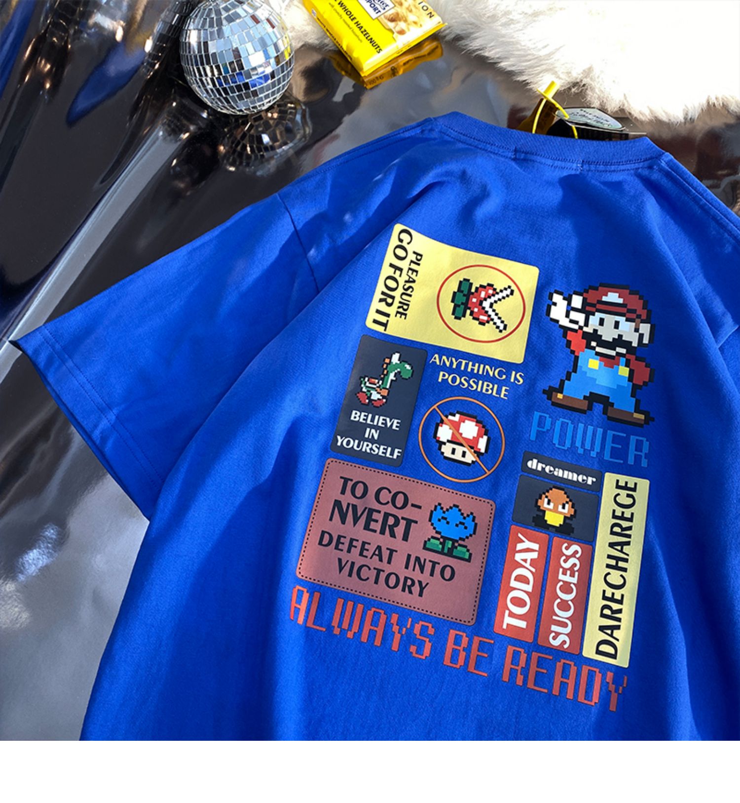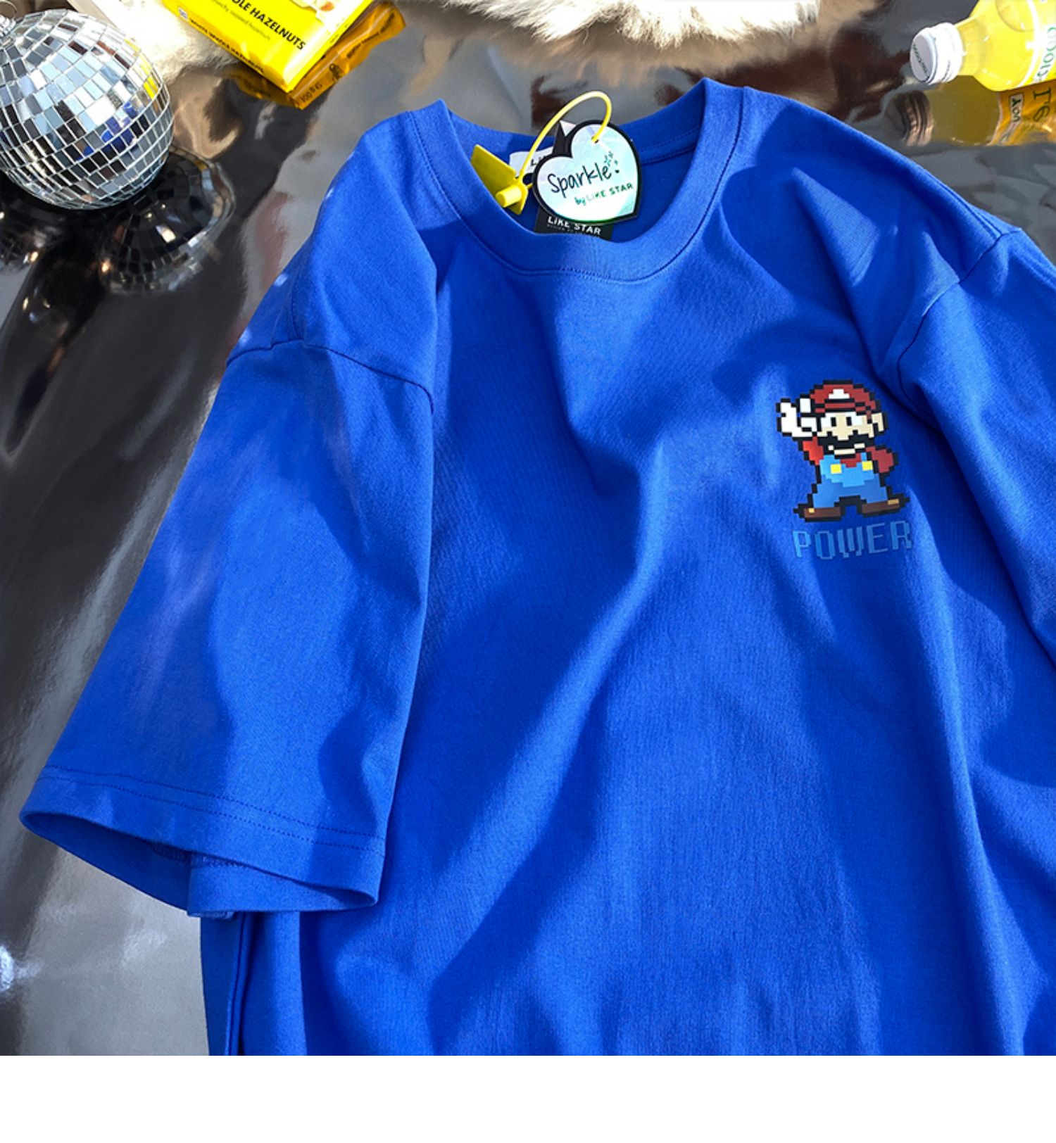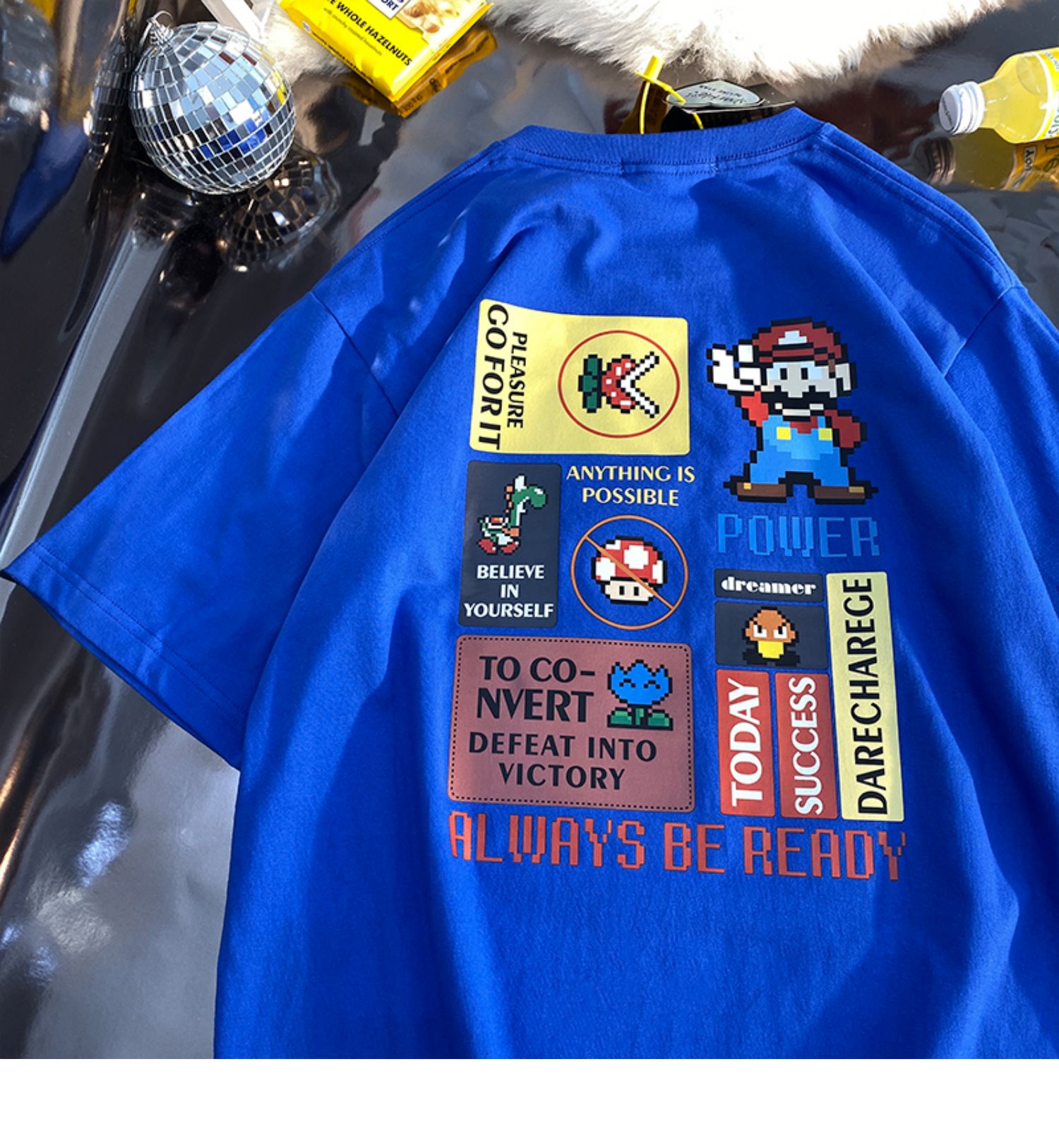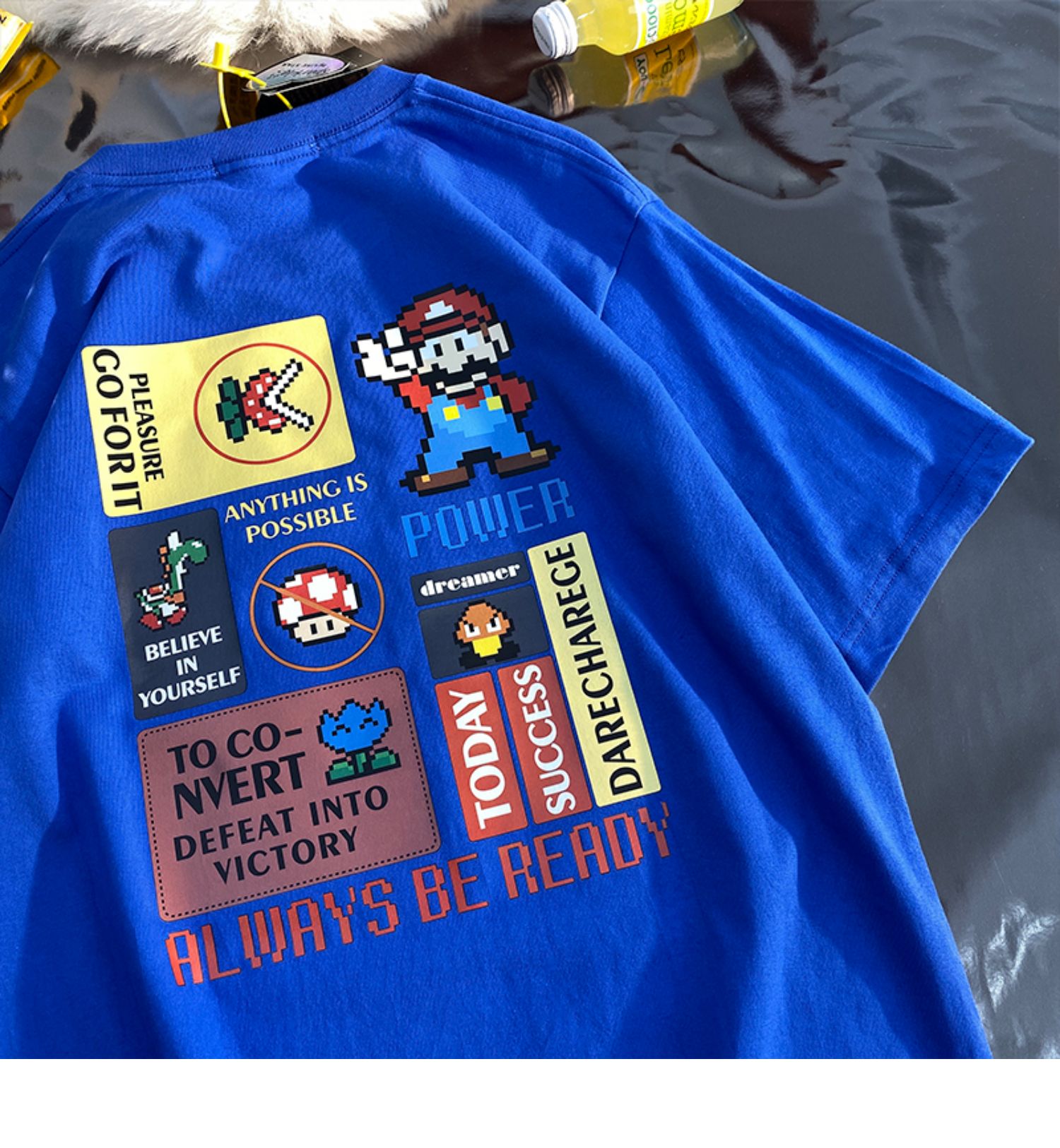 克萊因藍~後背款T恤~重磅純棉2023年新款卡通寬鬆短袖t恤女上衣