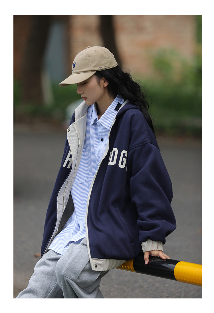 JDL MODE 2023春季雙面穿CityBoy日系復古連帽夾克女bf工裝外套