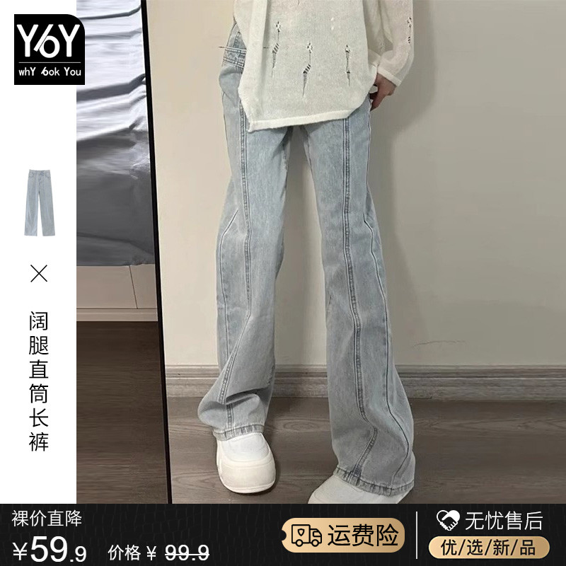 美式高街微喇叭牛仔褲女夏薄款2023新款復古寬鬆高腰闊腿直筒長褲